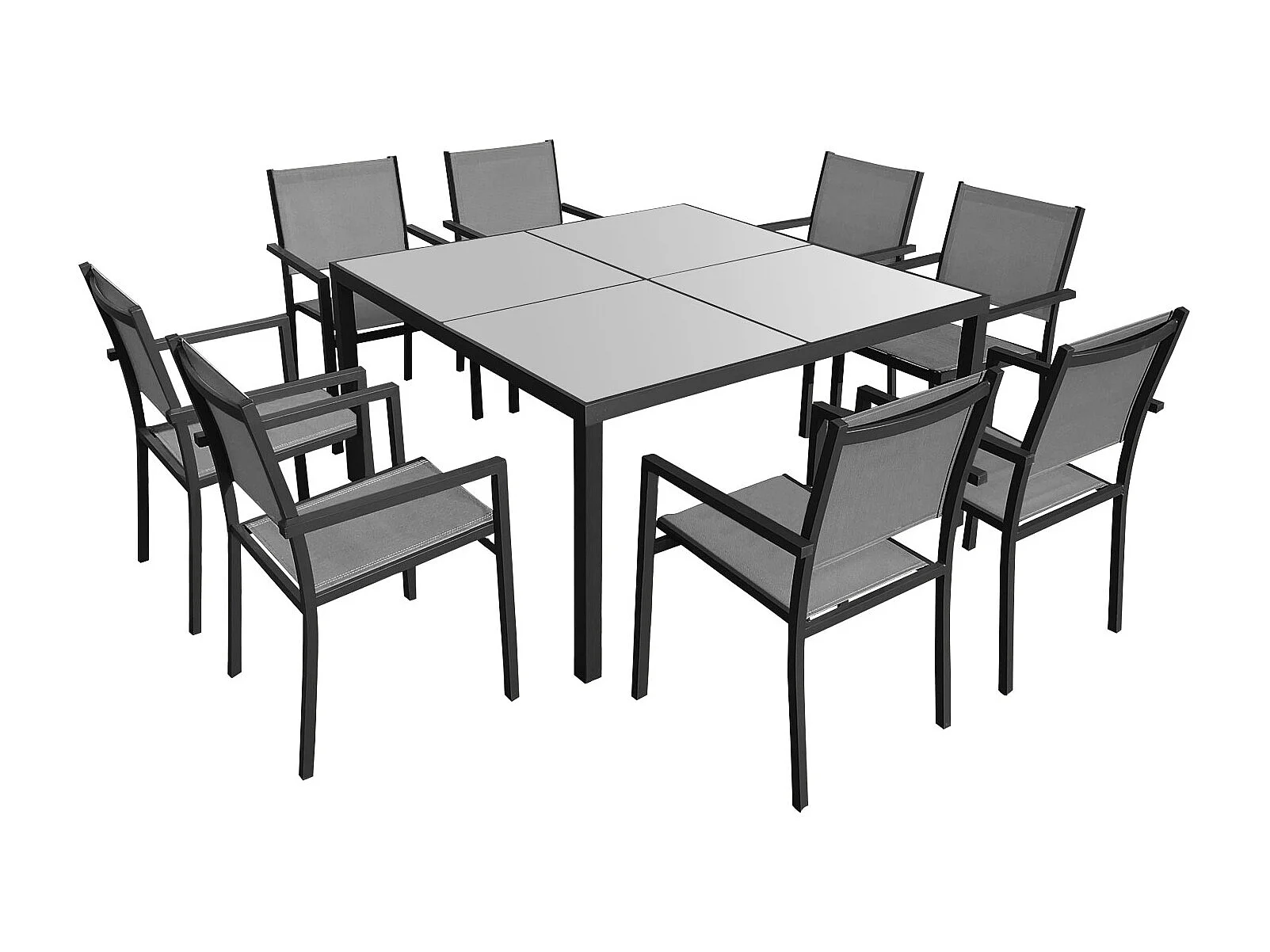 Salon de jardin CAGLIARI en textilène gris 8 places - aluminium anthracite - HAPPY GARDEN