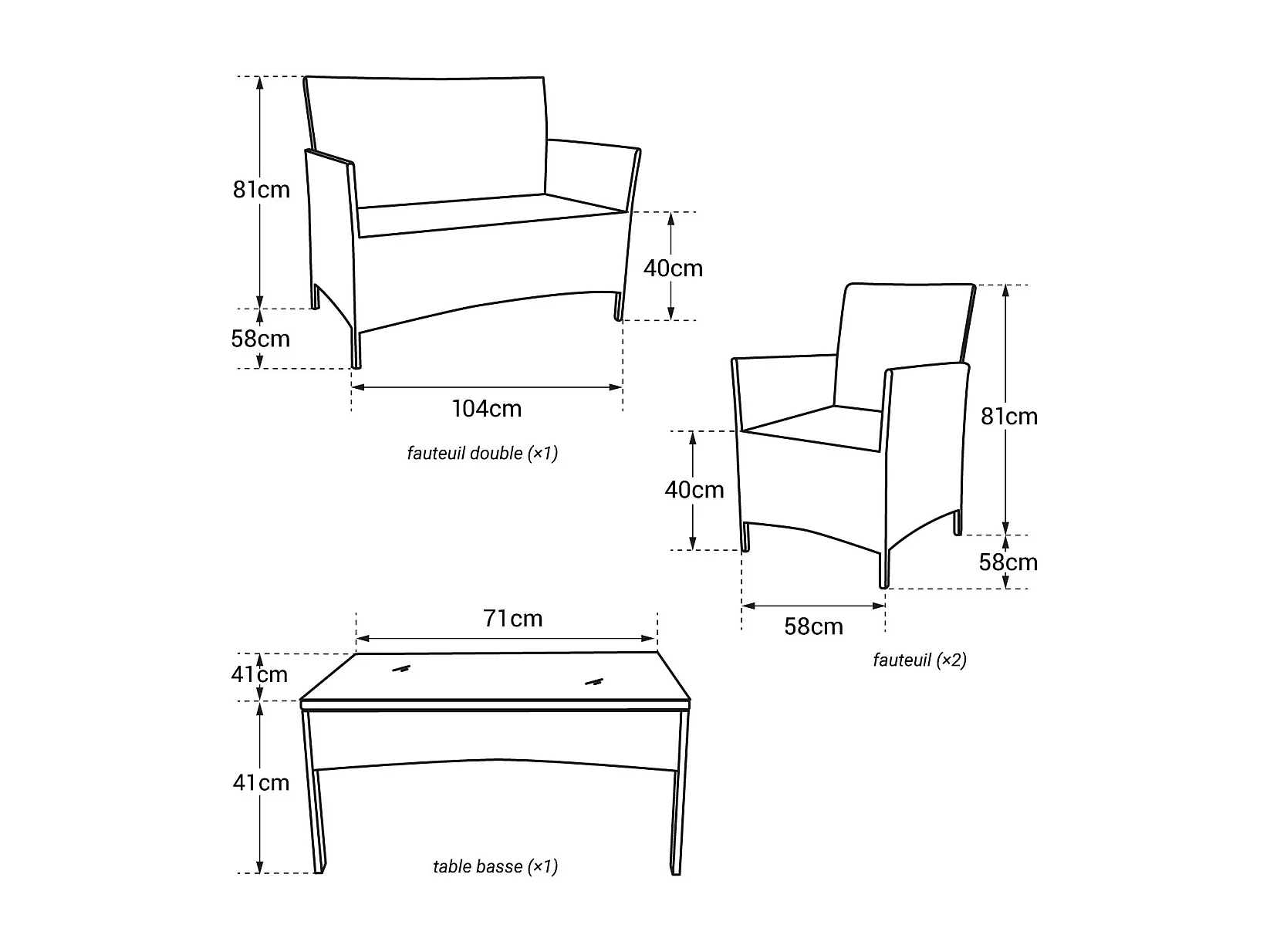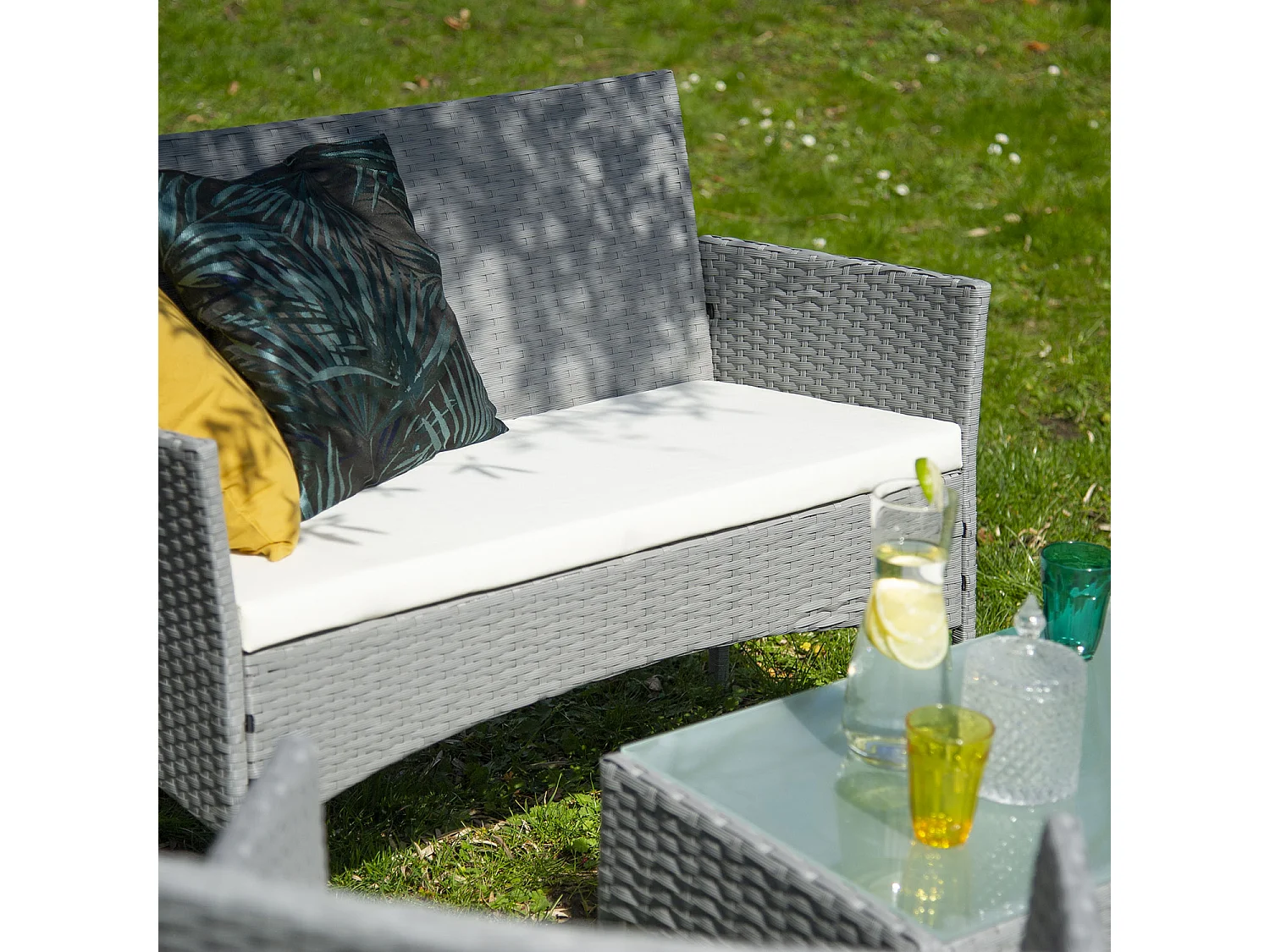 Salon de jardin CORDOUE en résine tressée gris 4 places - coussins ivoire - HAPPY GARDEN