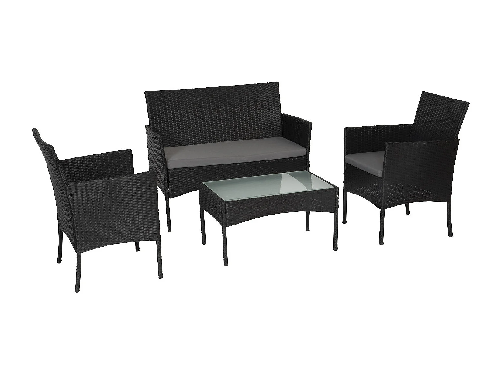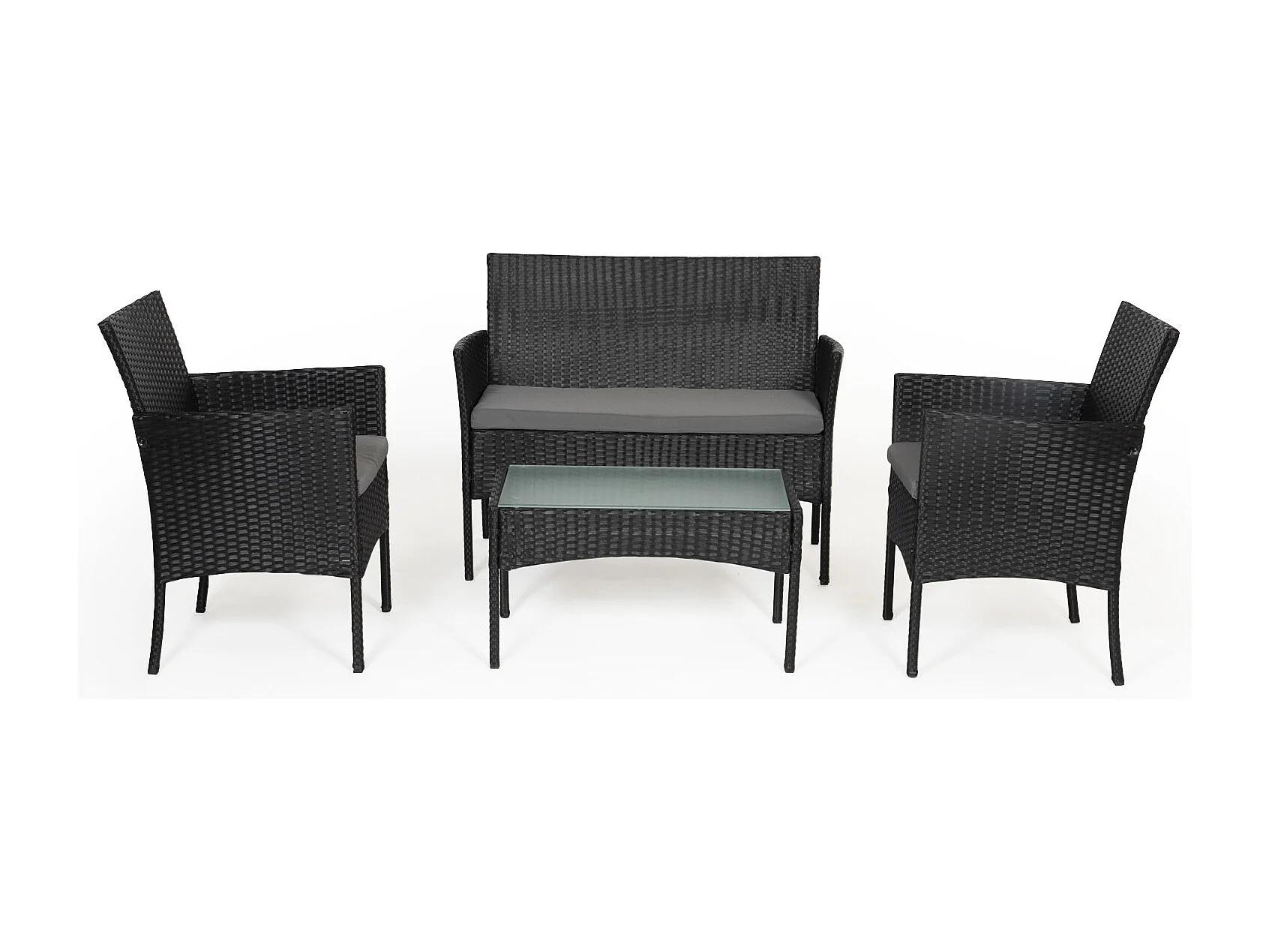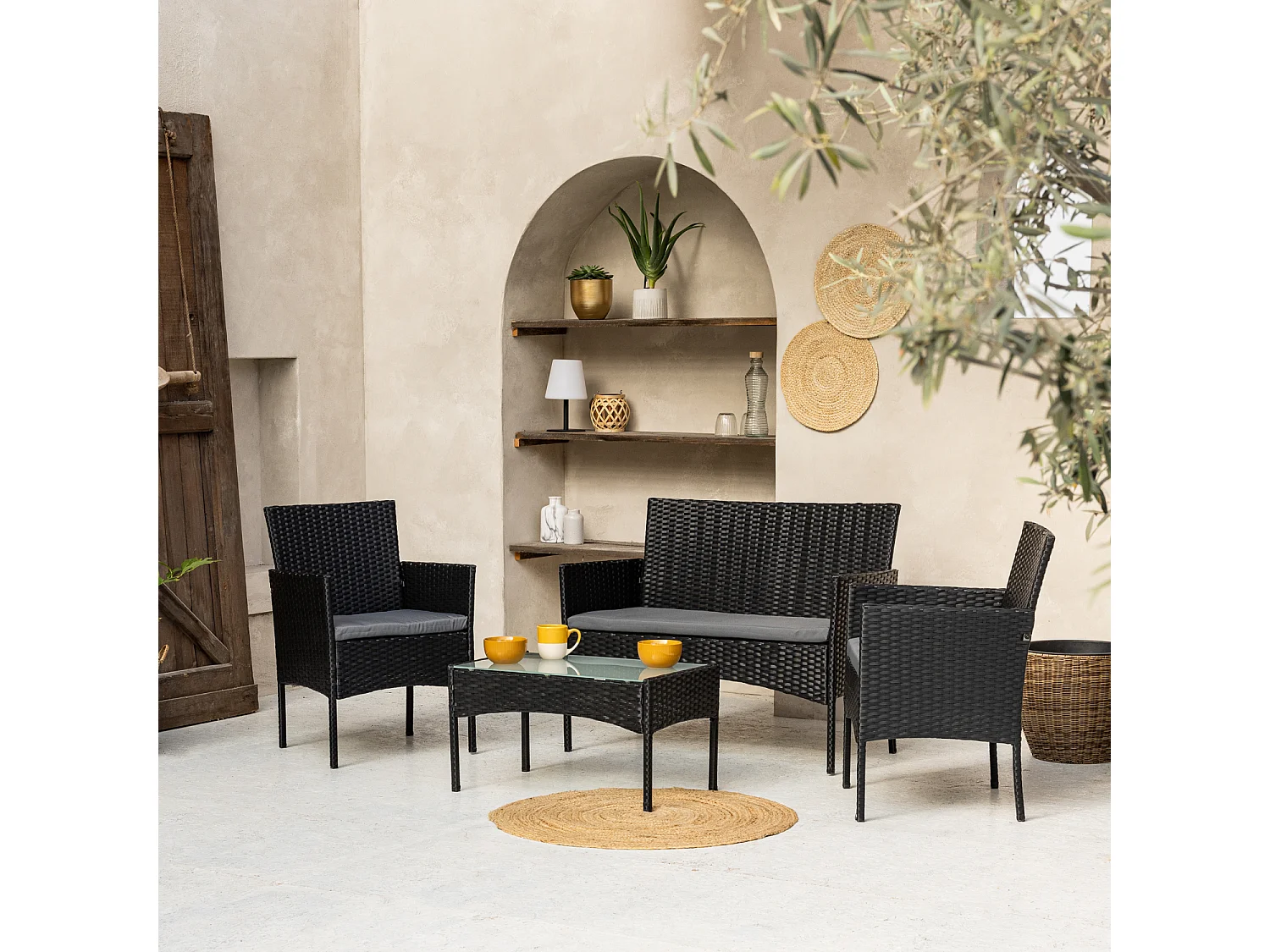 Salon de jardin CORDOUE en résine tressée noire 4 places - coussins gris - HAPPY GARDEN