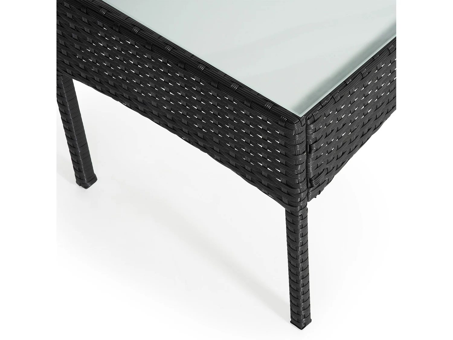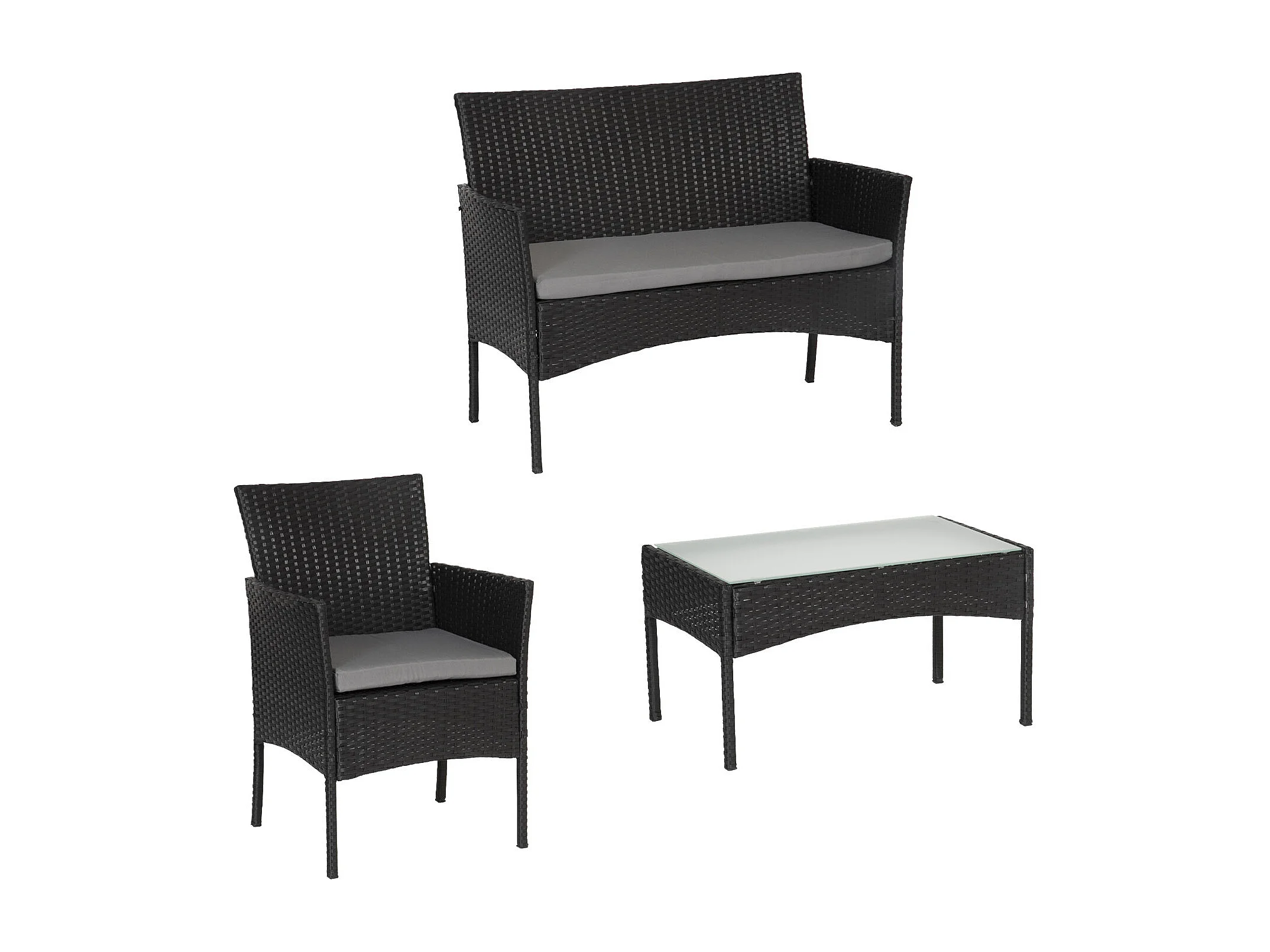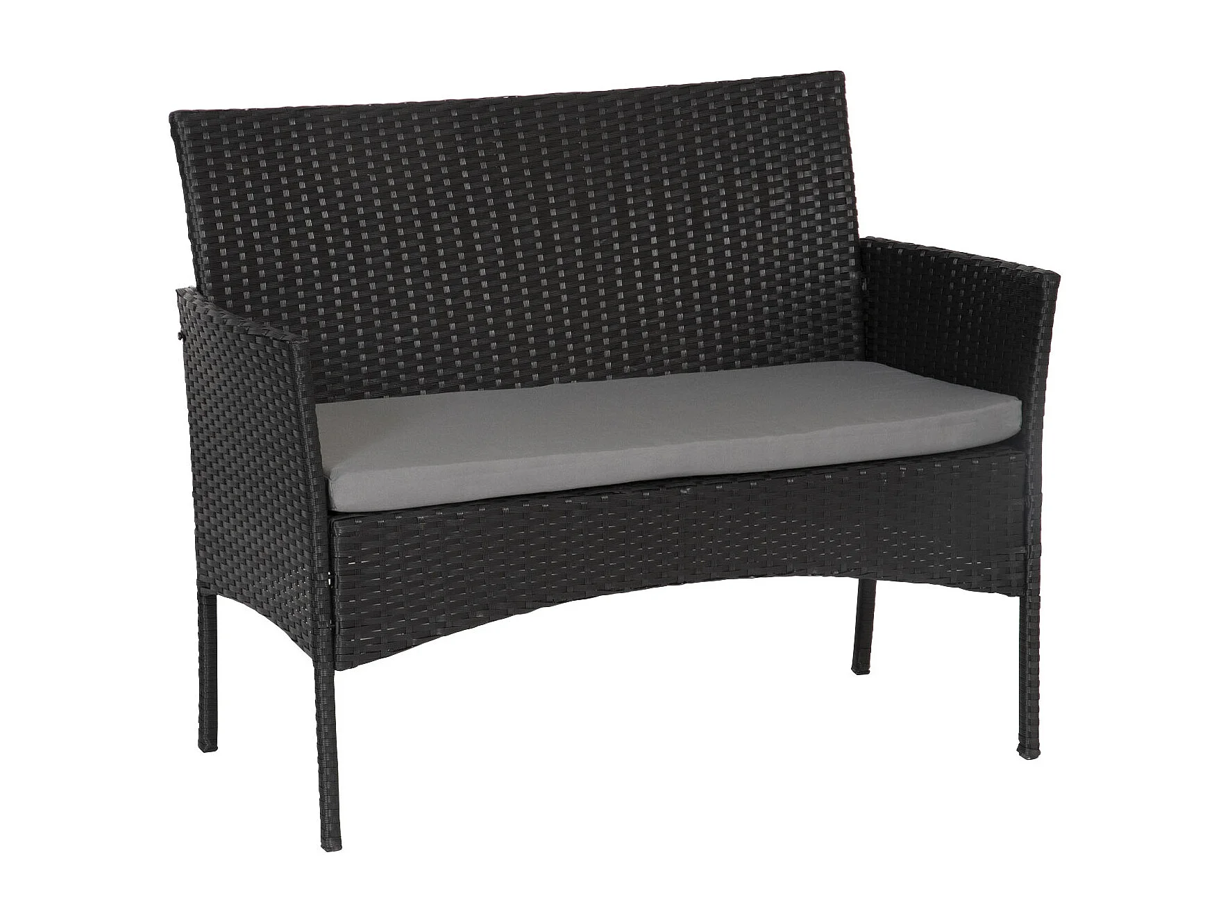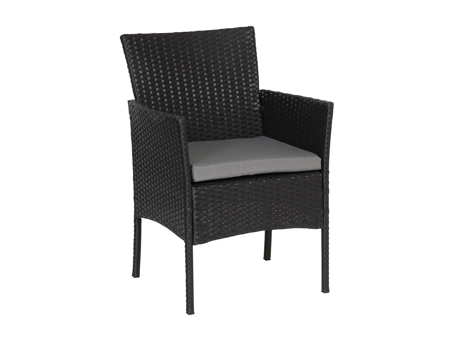 Salon de jardin CORDOUE en résine tressée noire 4 places - coussins gris - HAPPY GARDEN