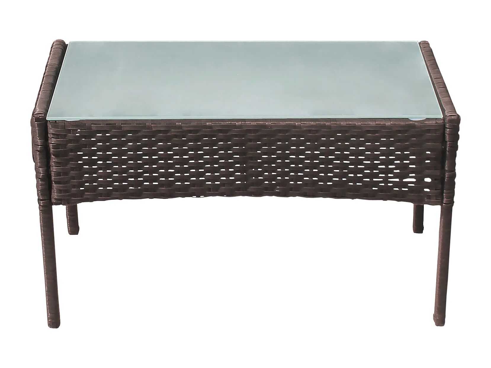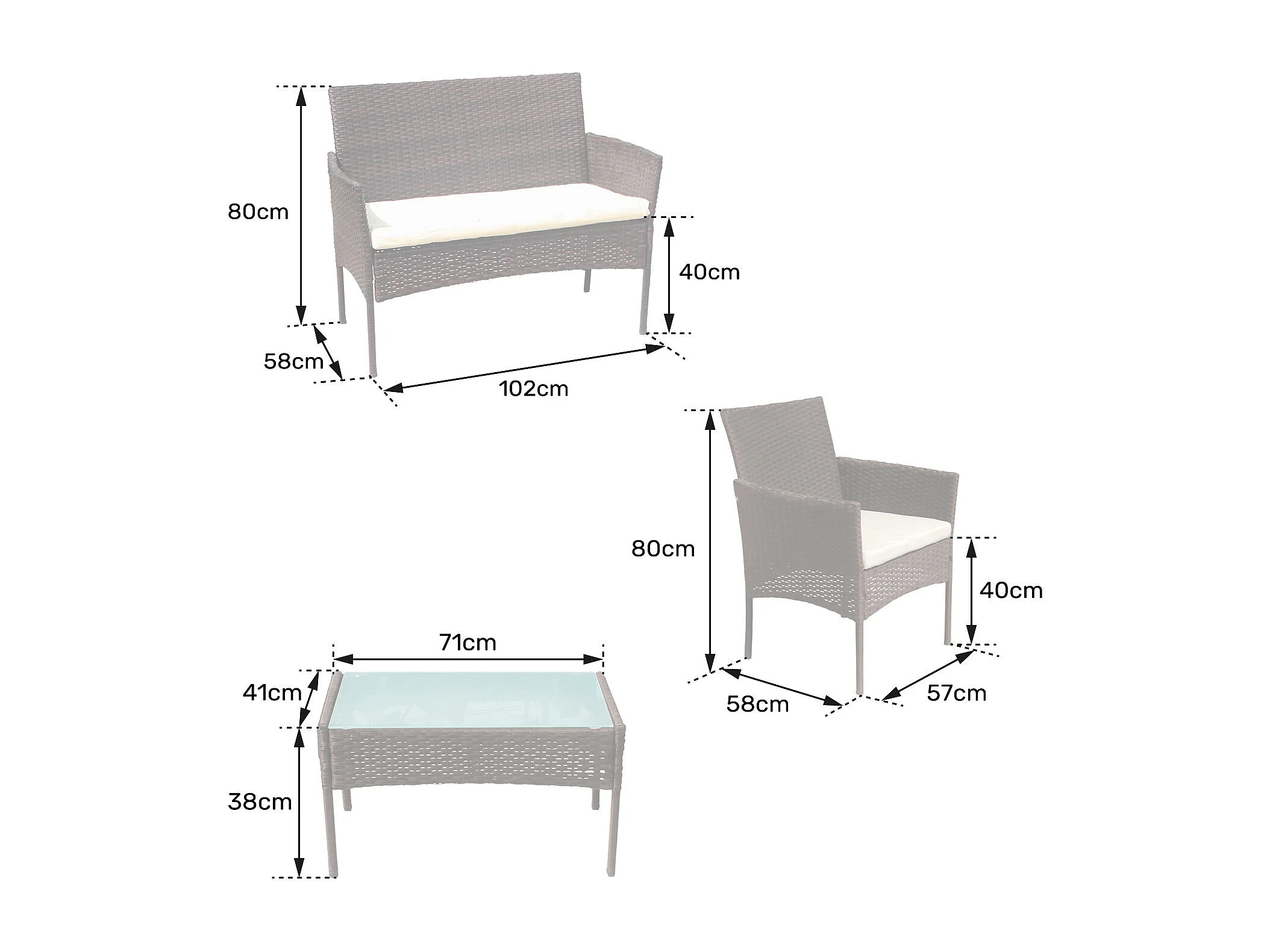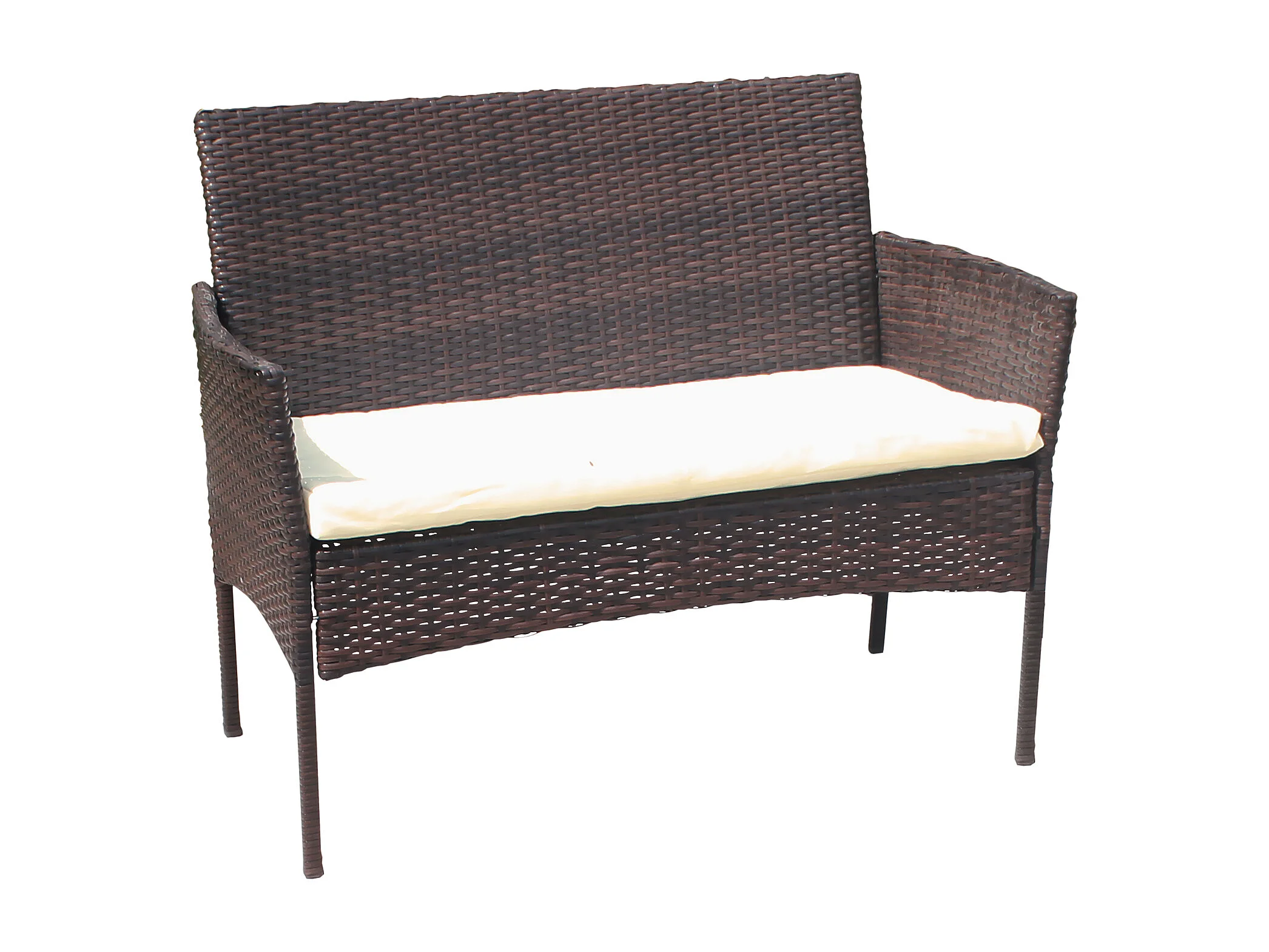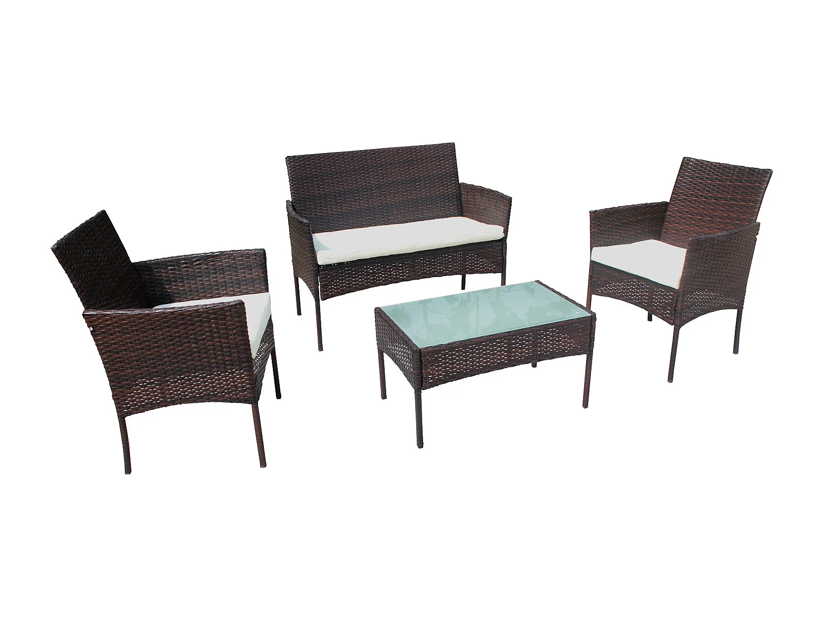 Salon de jardin CORFOU en résine tressée marron 4 places - coussins beige - HAPPY GARDEN