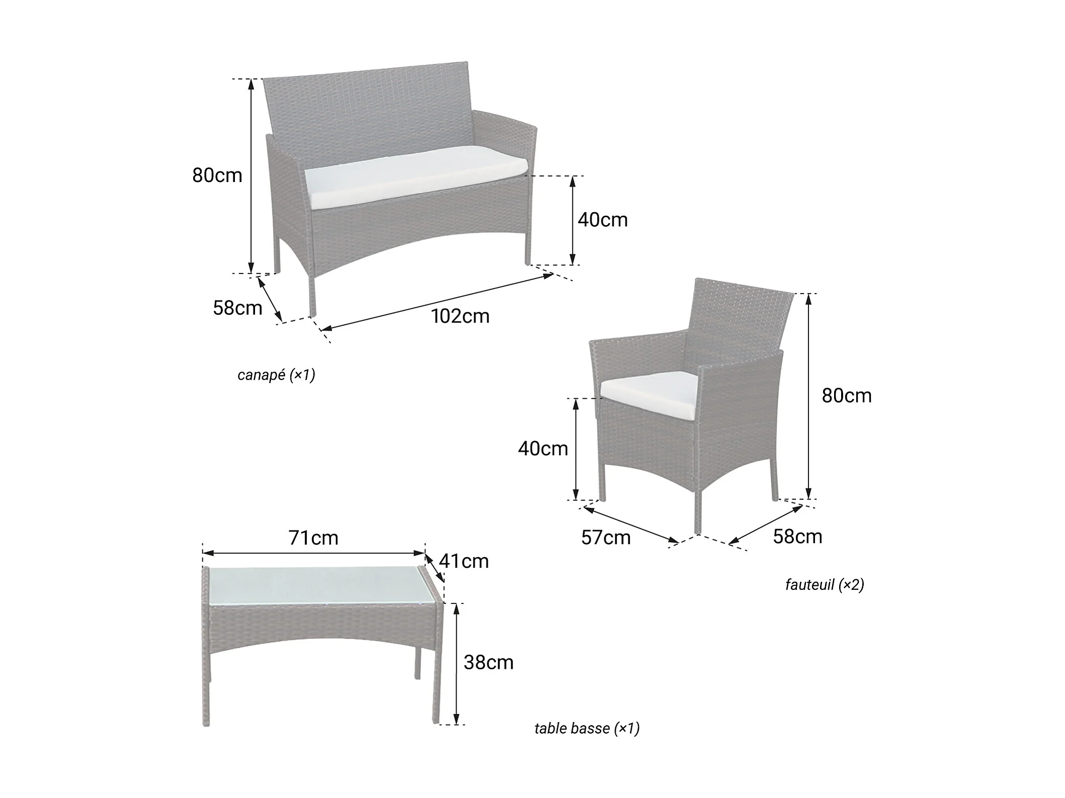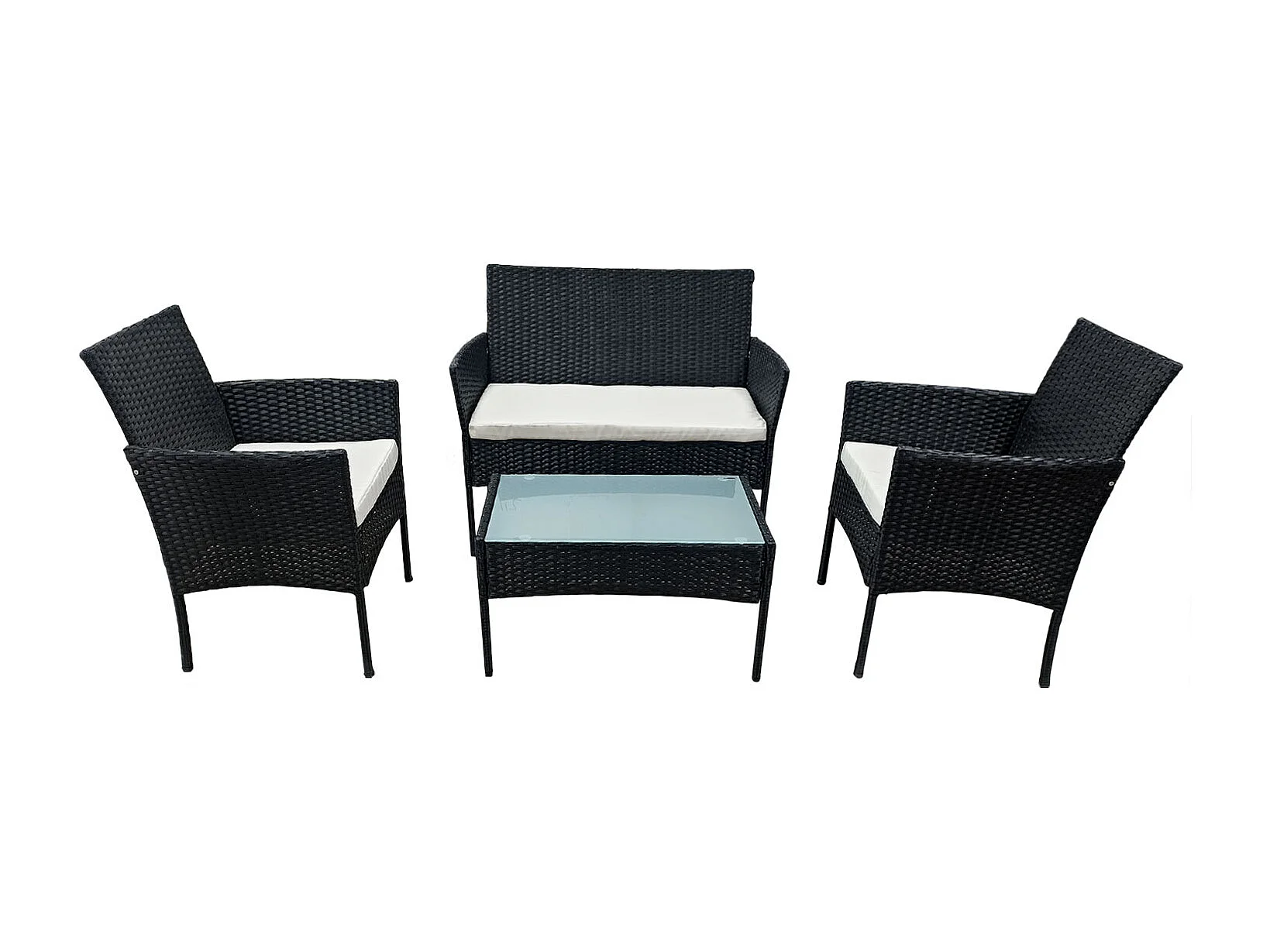 Salon de jardin CORFOU en résine tressée noire 4 places - coussins beige - HAPPY GARDEN