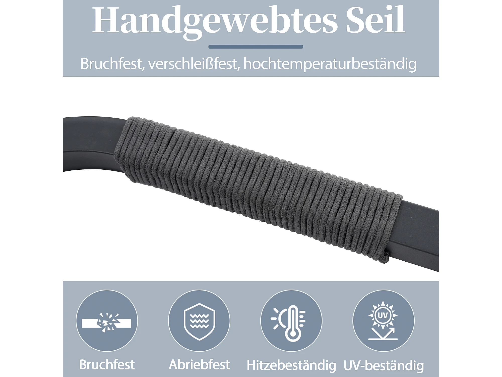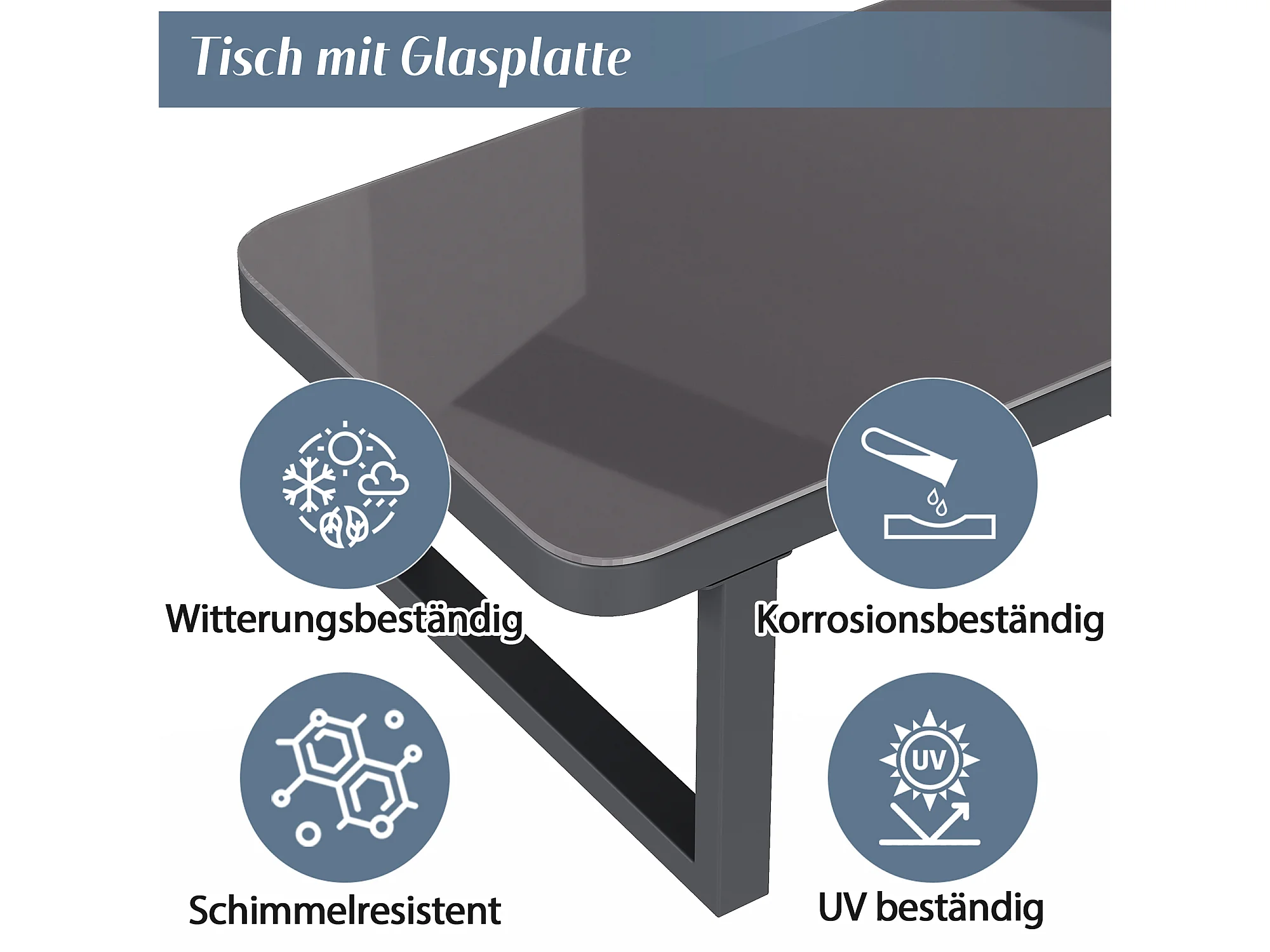 Salon de Jardin d'Angle 6 Places - Canapé en L avec Finition Corde Tressée - Table Basse en Verre Trempé - Acier Galvanisé Robuste - Gris