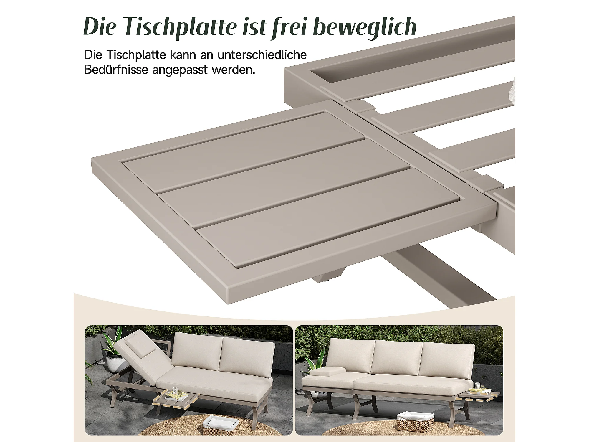 Salon de Jardin d'Angle en Acacia - Canapé avec Table Basse - Corde Tressée Artisanale - Coussins Déperlants - Beige