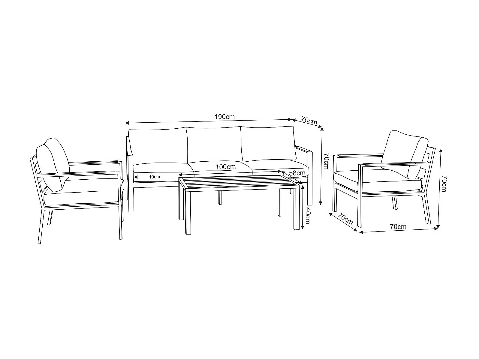 Salon de jardin design en aluminium 5 Places - Gris anthracite et naturel - MABILLON