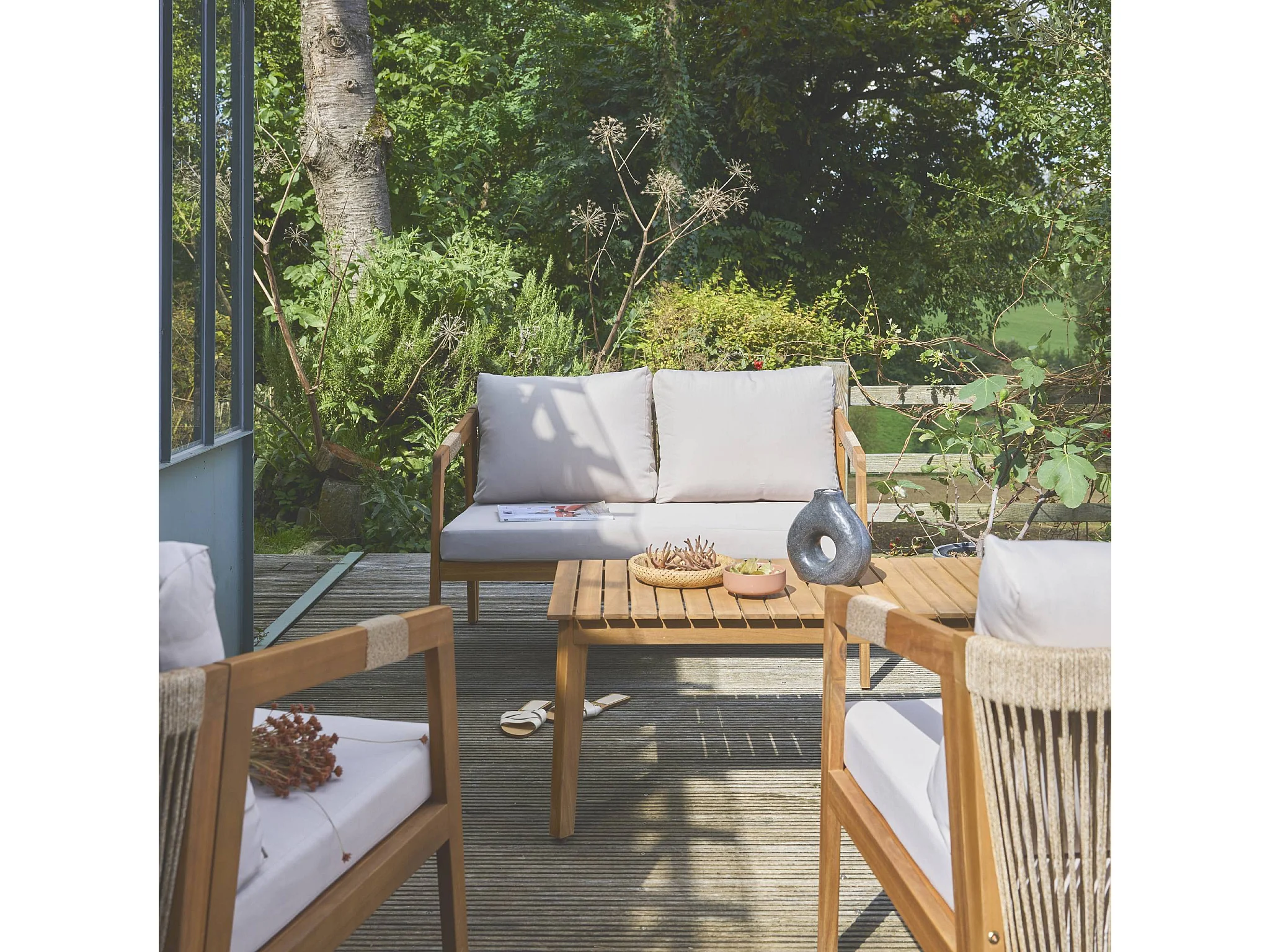 Salon de jardin en acacia 4 places beige avec cordes LOBERIA. table rectangulaire