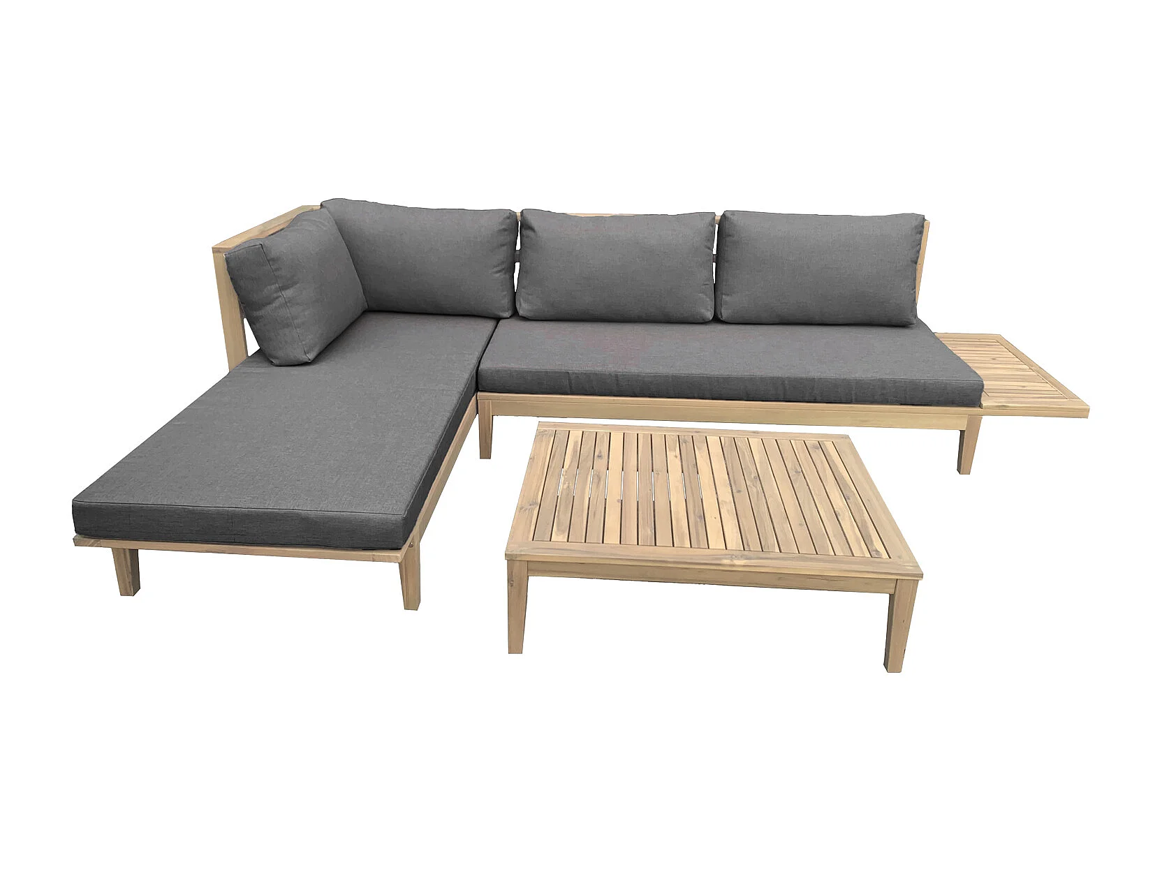 Salon de jardin en acacia 4 places PANGKOR - coussins gris - HAPPY GARDEN