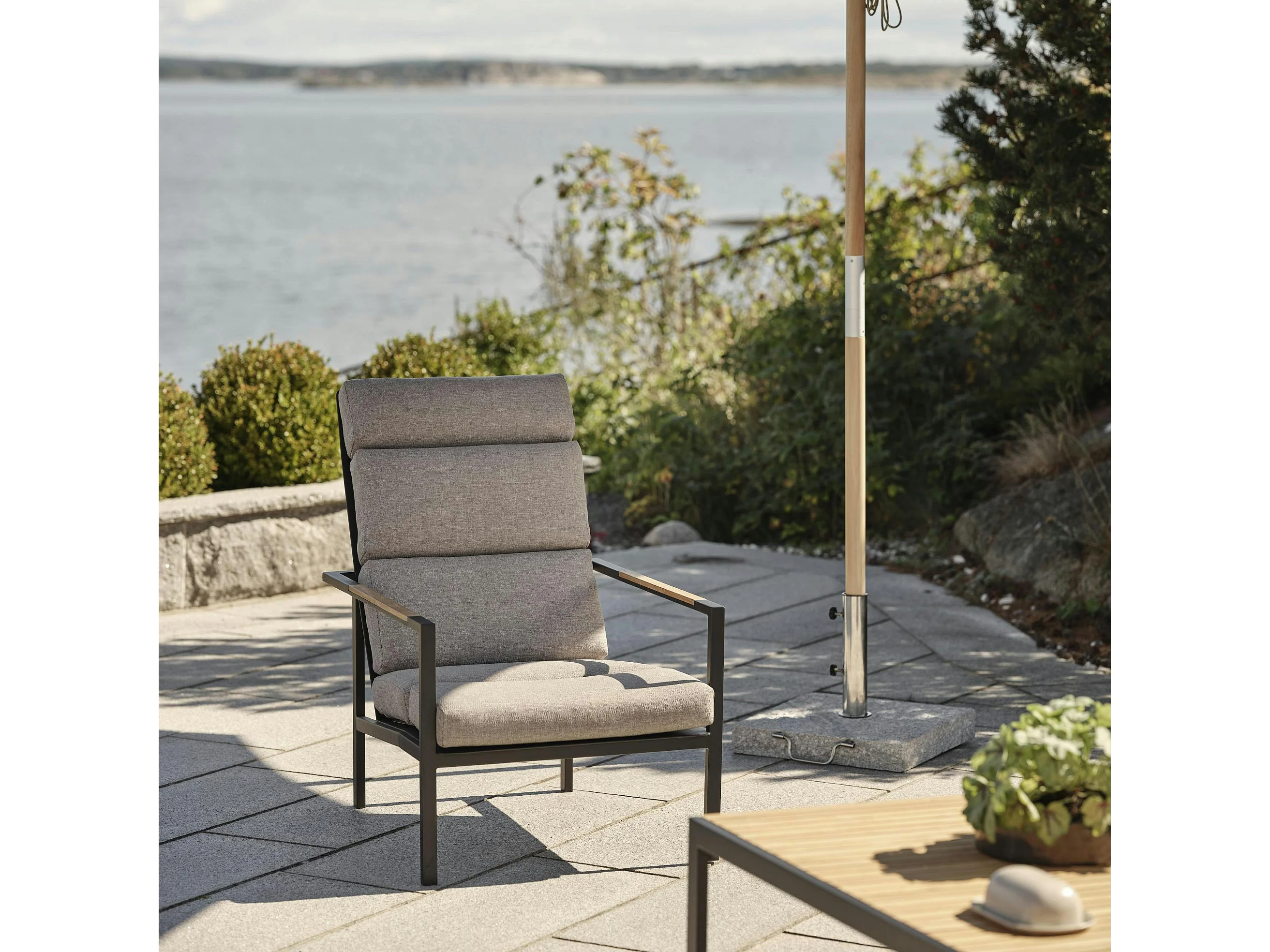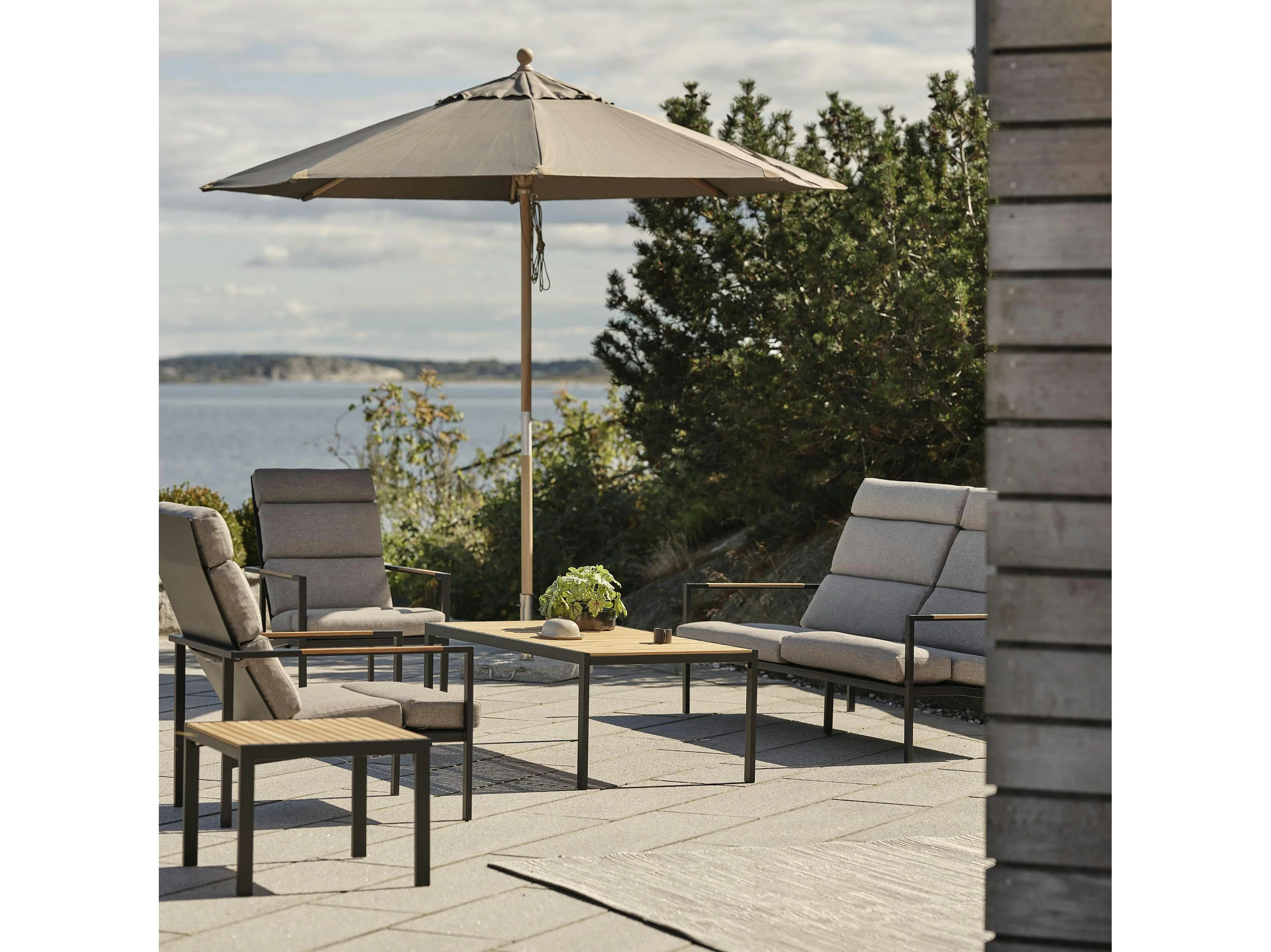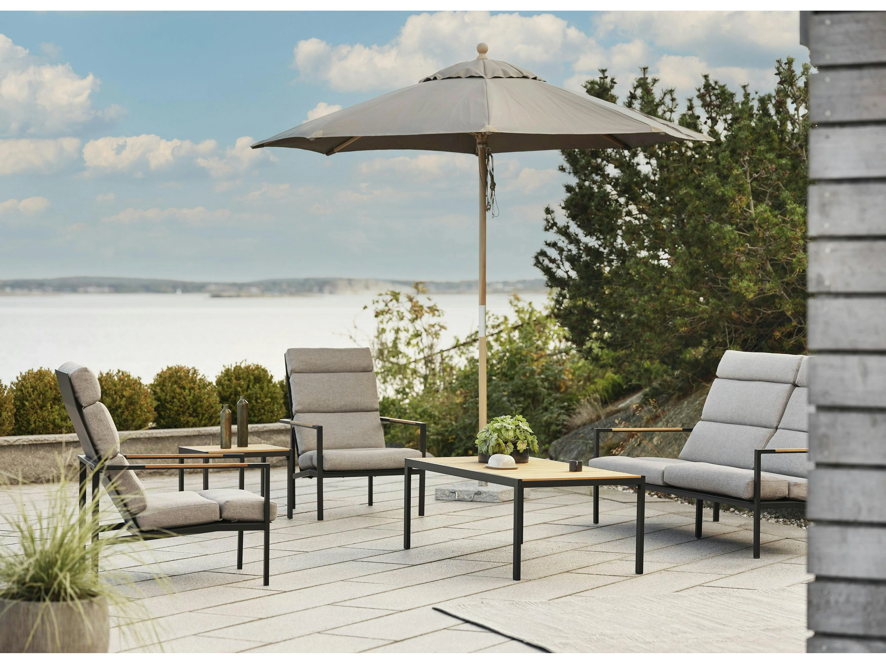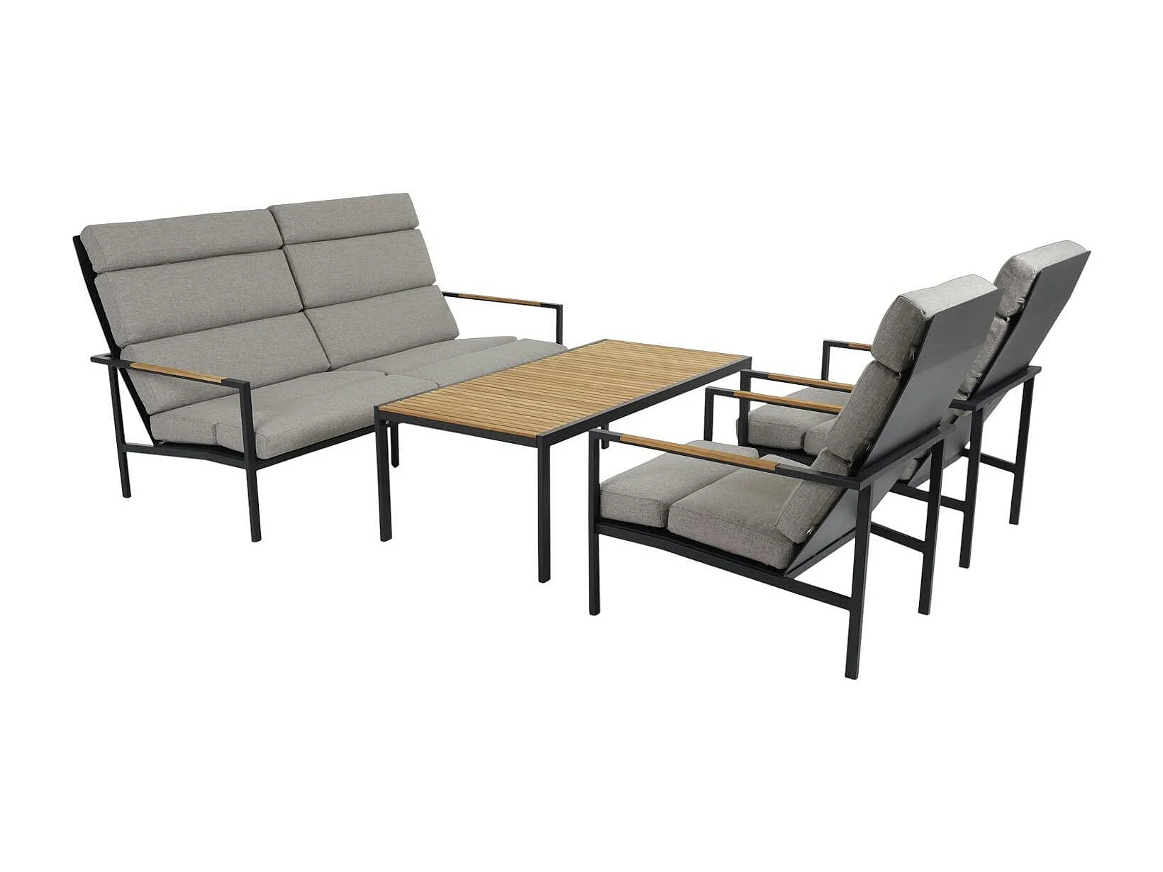 Salon de jardin en aluminium noir et teck (4 pièces) STOCKHOLM