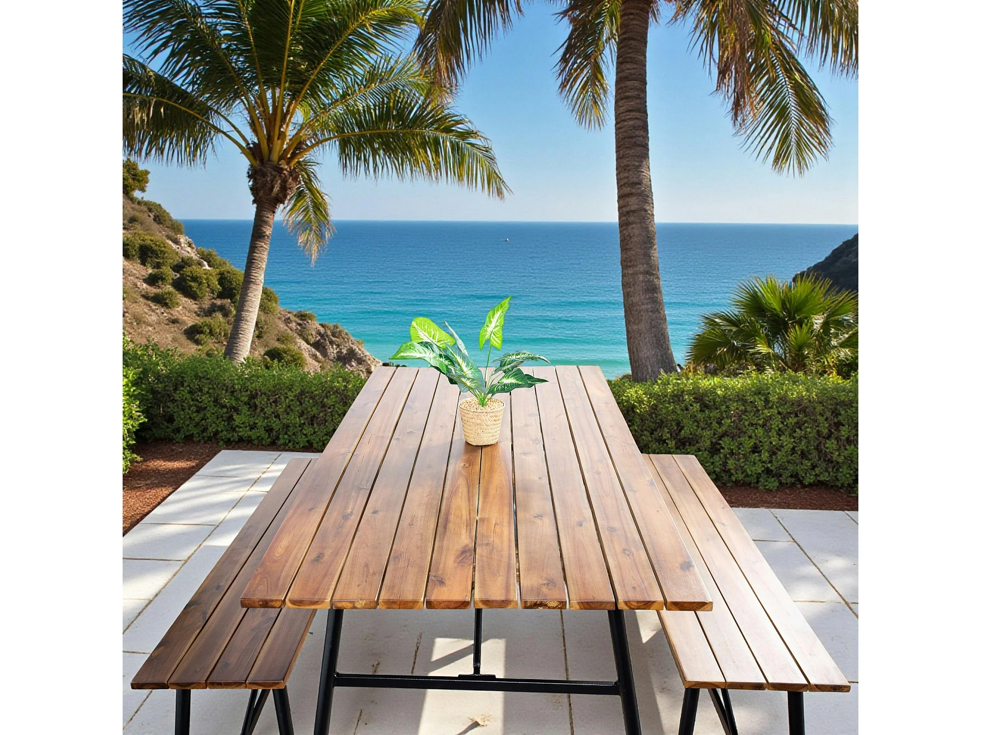 Salon de jardin en bois d'acacia (1 table à manger 160 cm + 2 bancs 130 cm) BAHIA