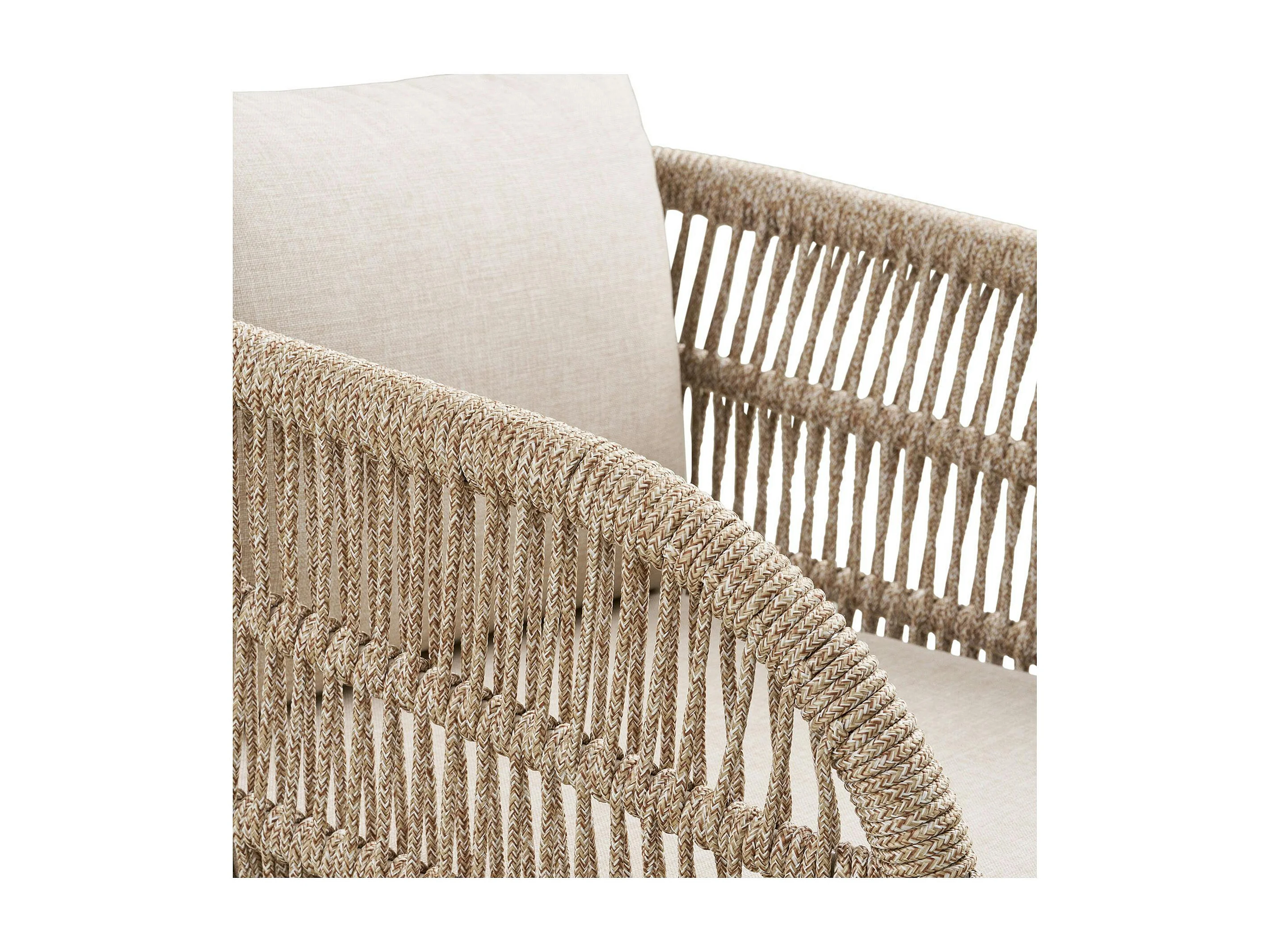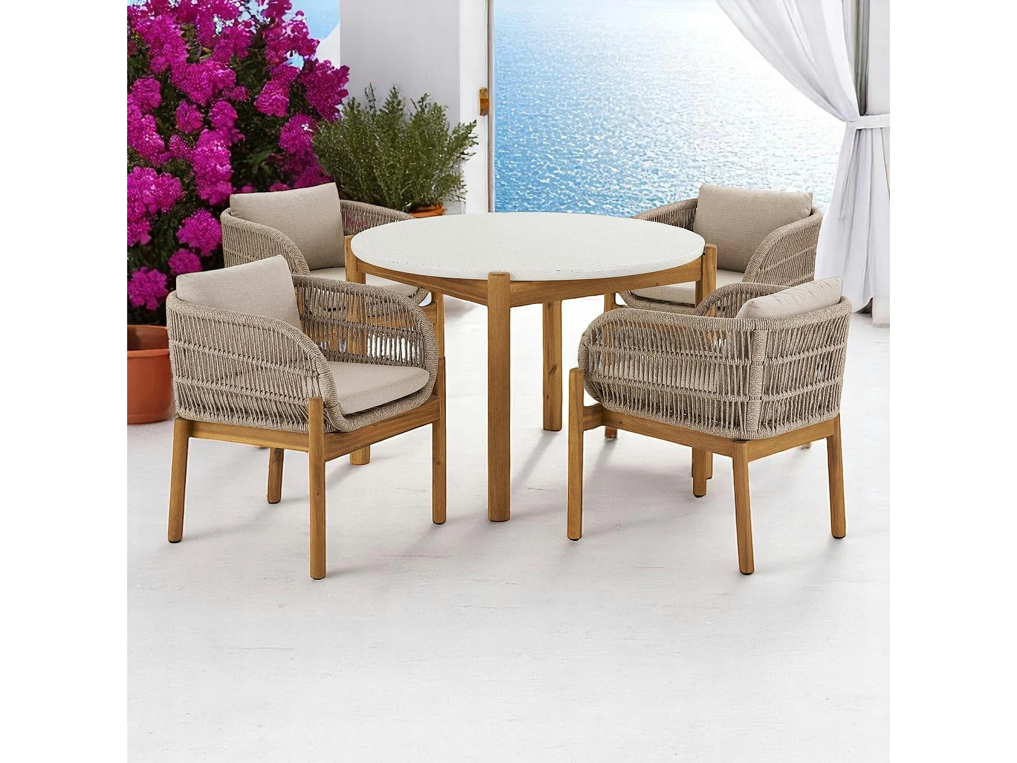 Salon de jardin en bois d'acacia et corde tressée (1 table de jardin ø120 cm et 4 sièges) MENDOZA