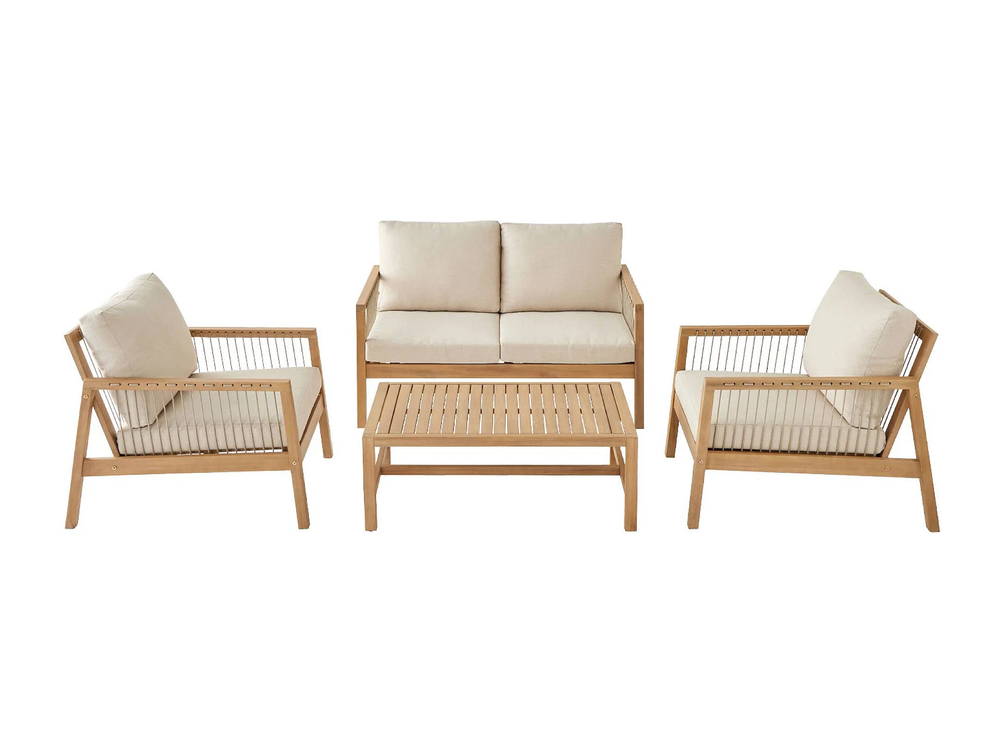 Salon de jardin en bois d'acacia et cordes beige. 4 personnes. ALISTE