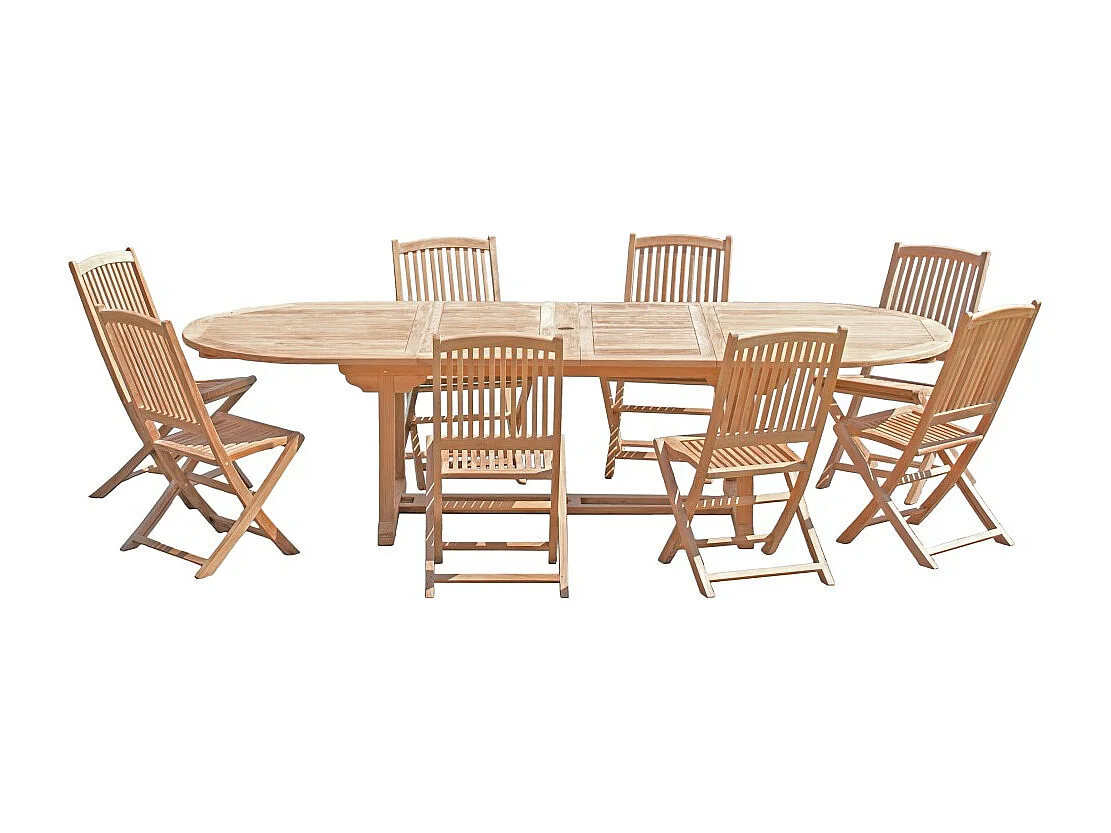 FUN - Ensemble de jardin 10/12 pers. table / 8 chaises bois teck