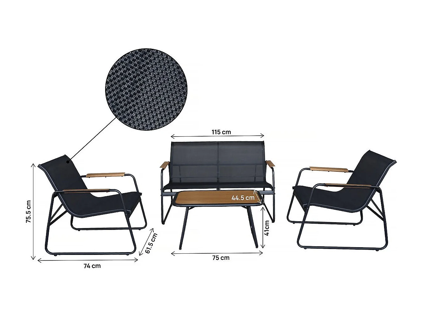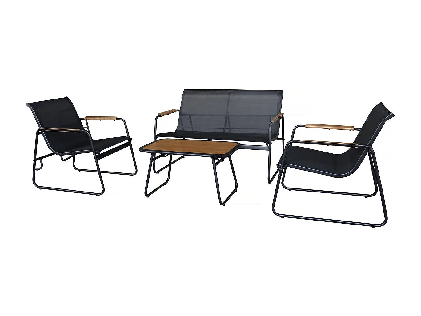 Salon de jardin en métal avec décor imitation bois "Sparta" - 4 places - Noir