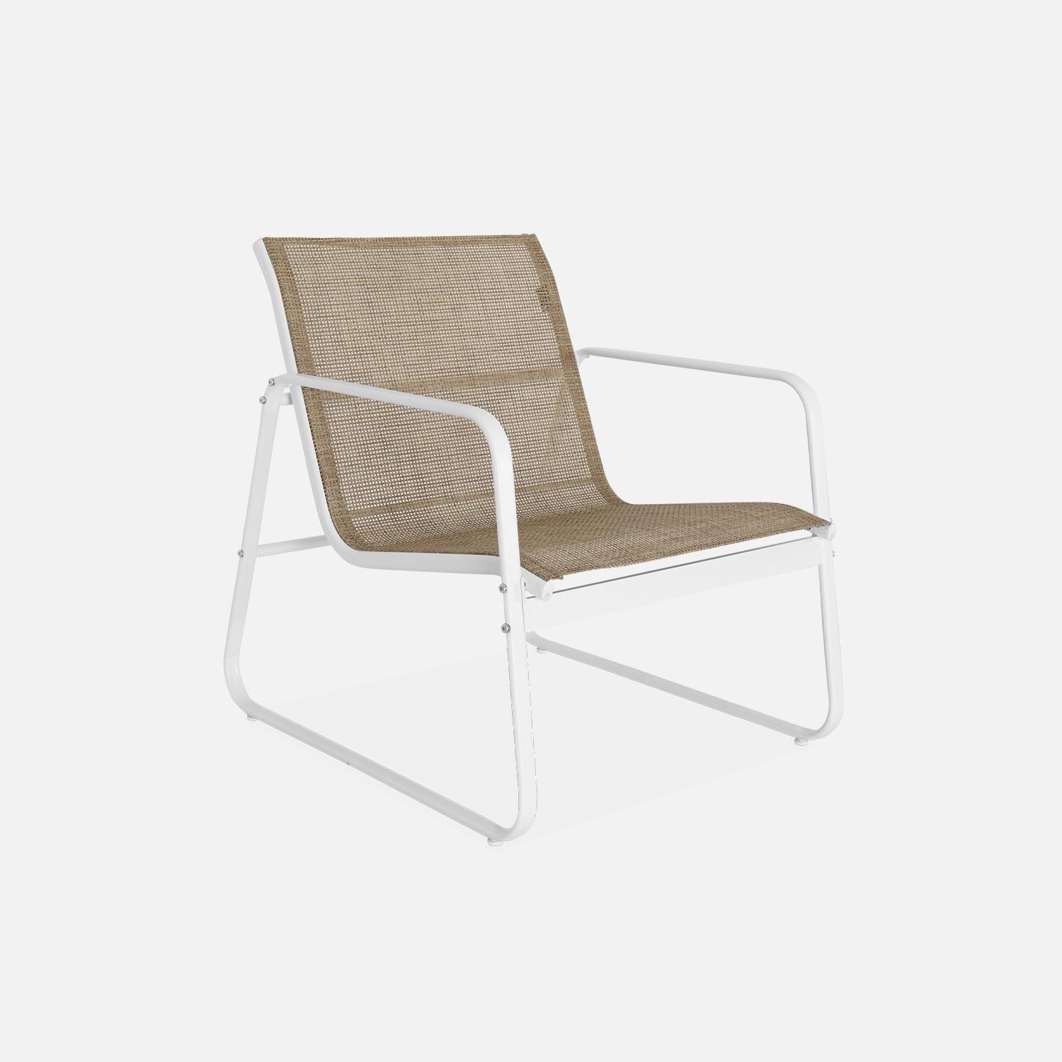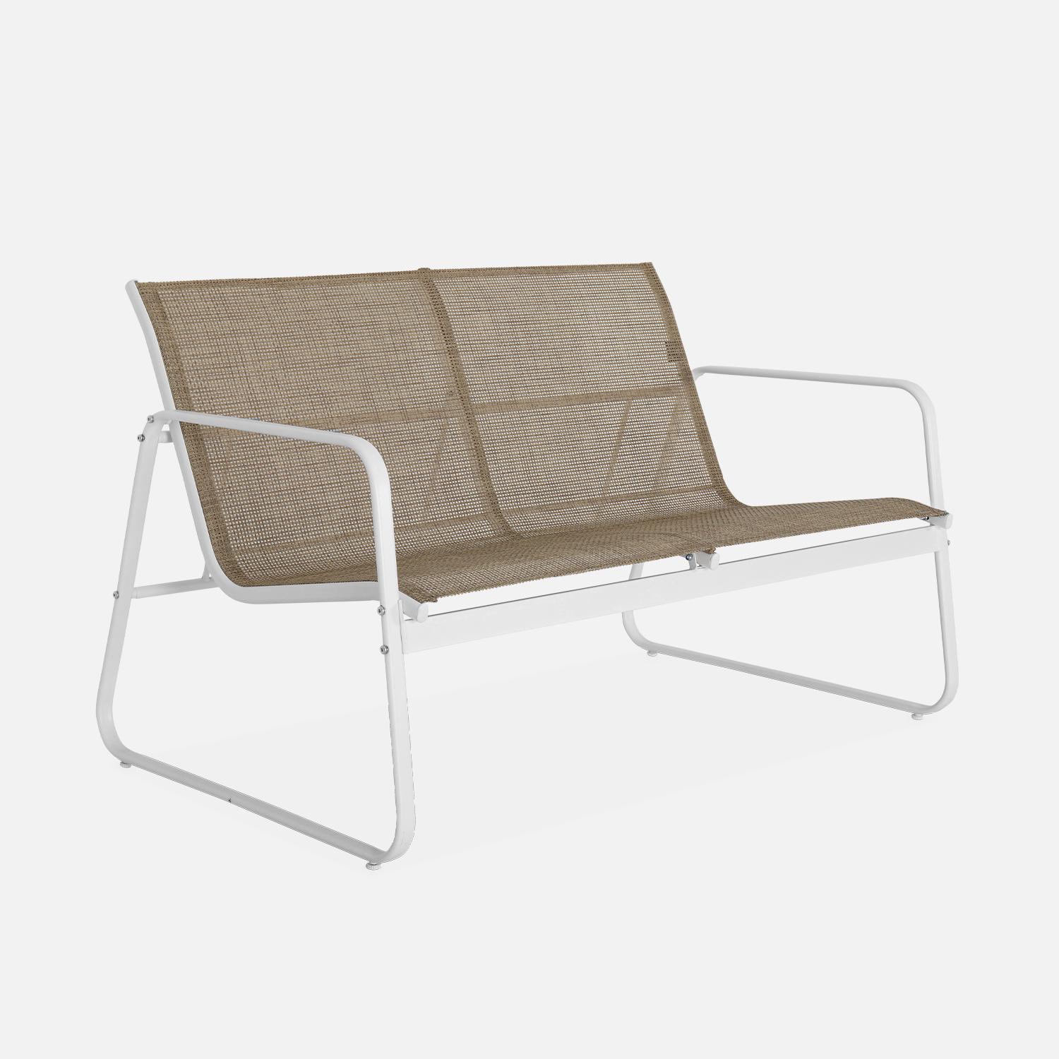 Salon de jardin en métal et textilène pour 4 personnes. blanc et naturel. design