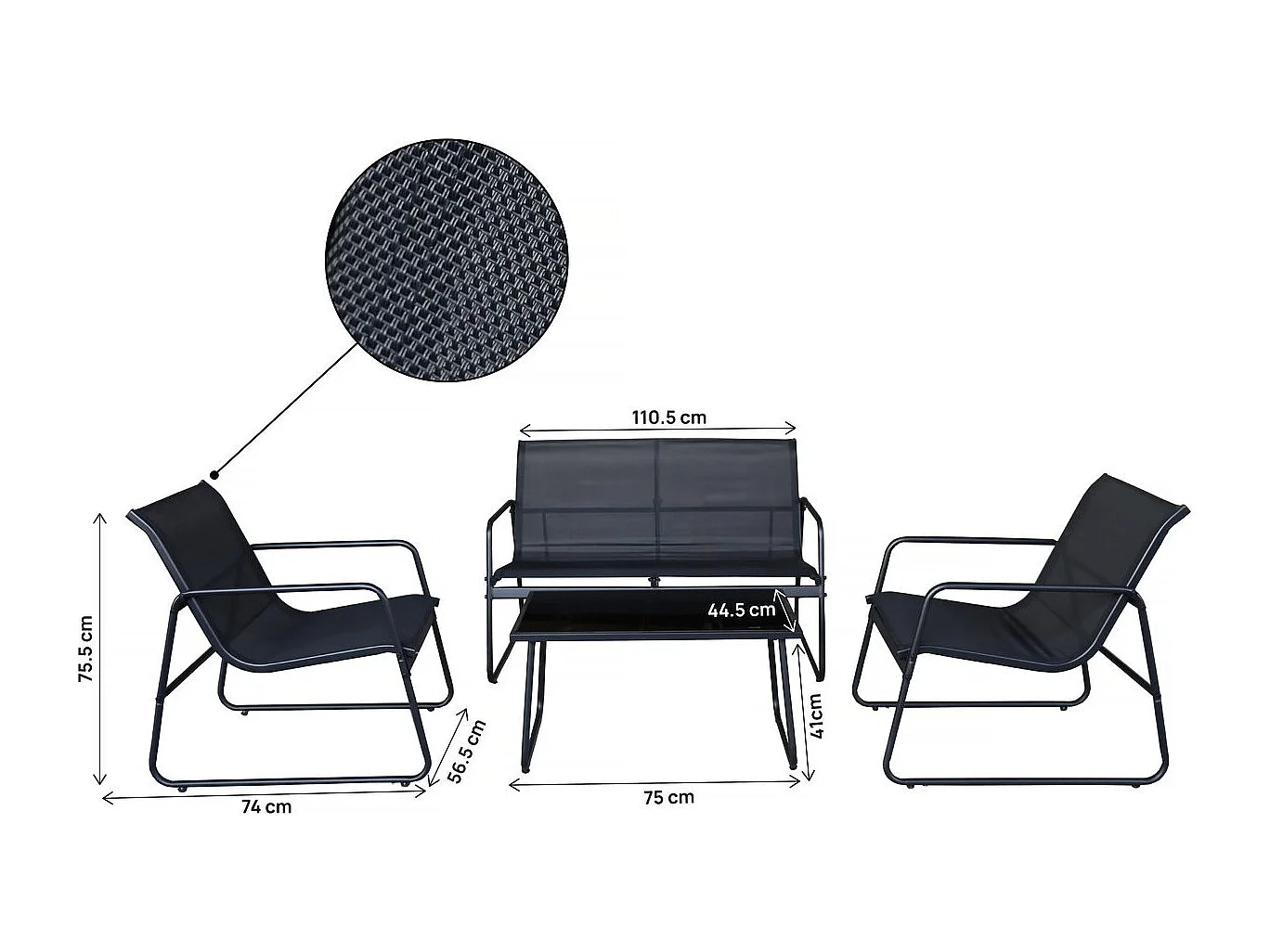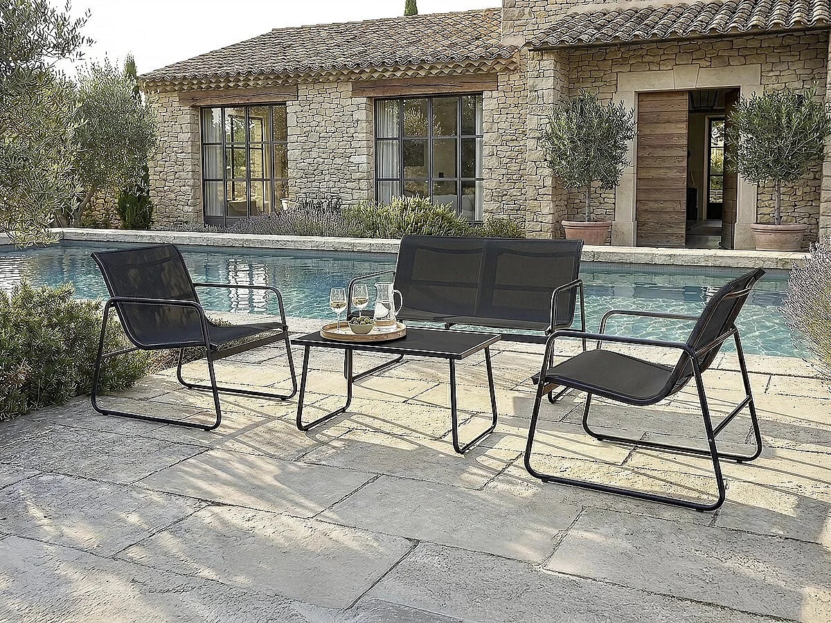 Salon de Jardin 4 Places "Scopello" 110cm Noir
