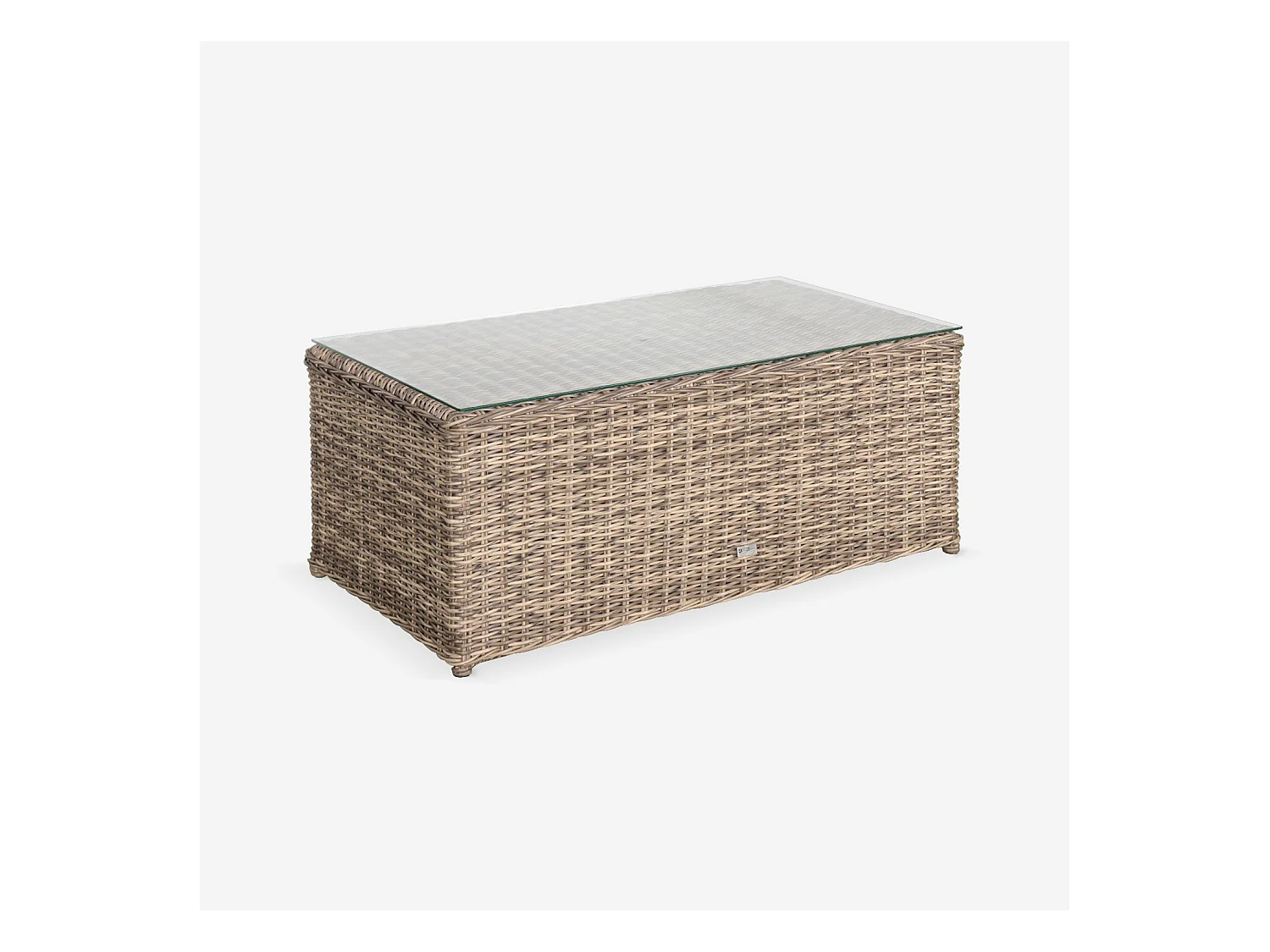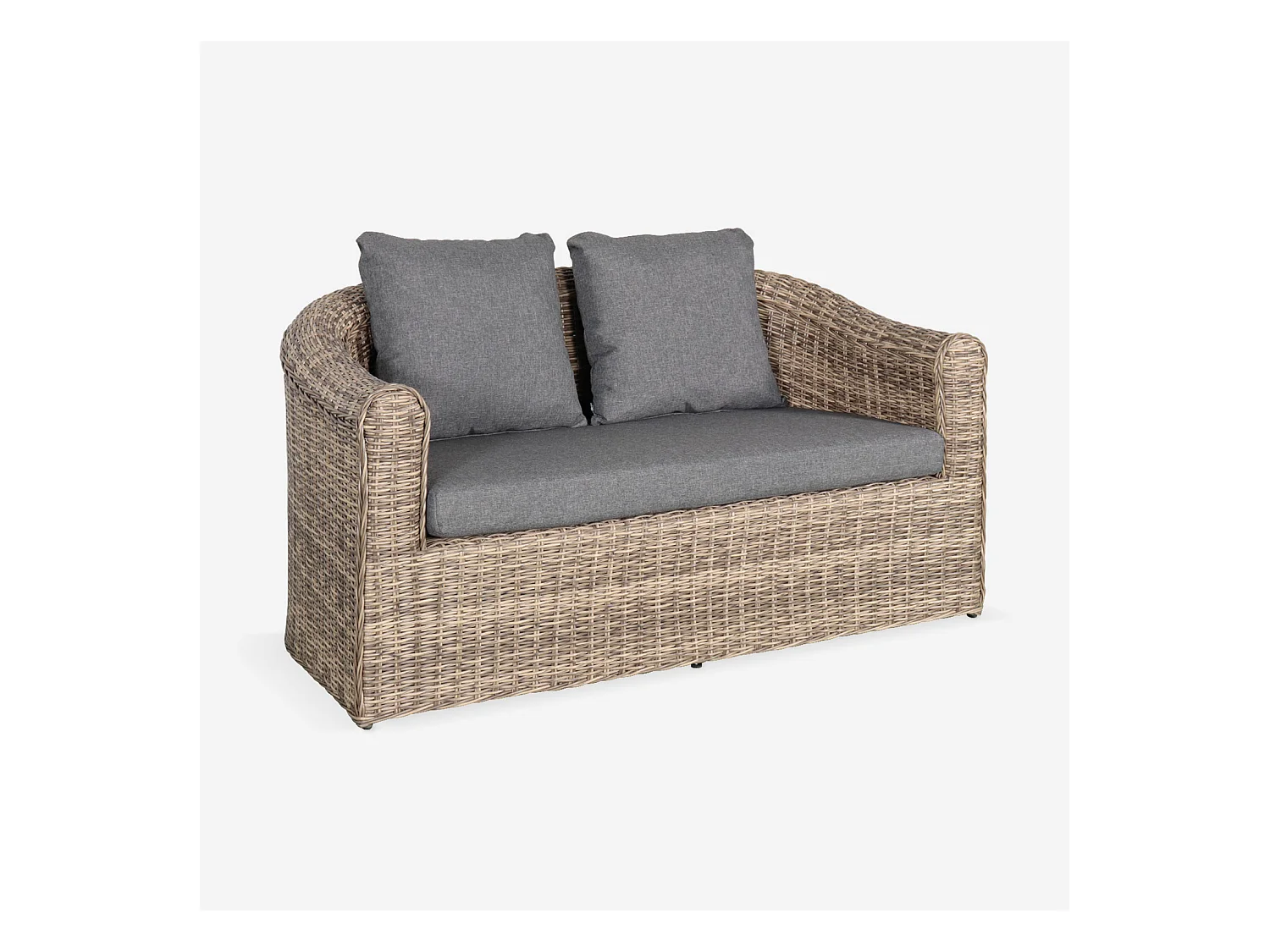 Salon de jardin en résine tressée arrondie 4 places - Valentino Naturel - Coussins anthracite. canapé fauteuils table basse