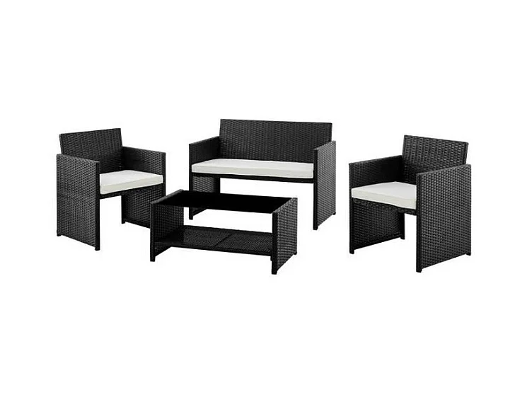 Salon de jardin en résine tressée avec coussins - 4 personnes - Hilpea