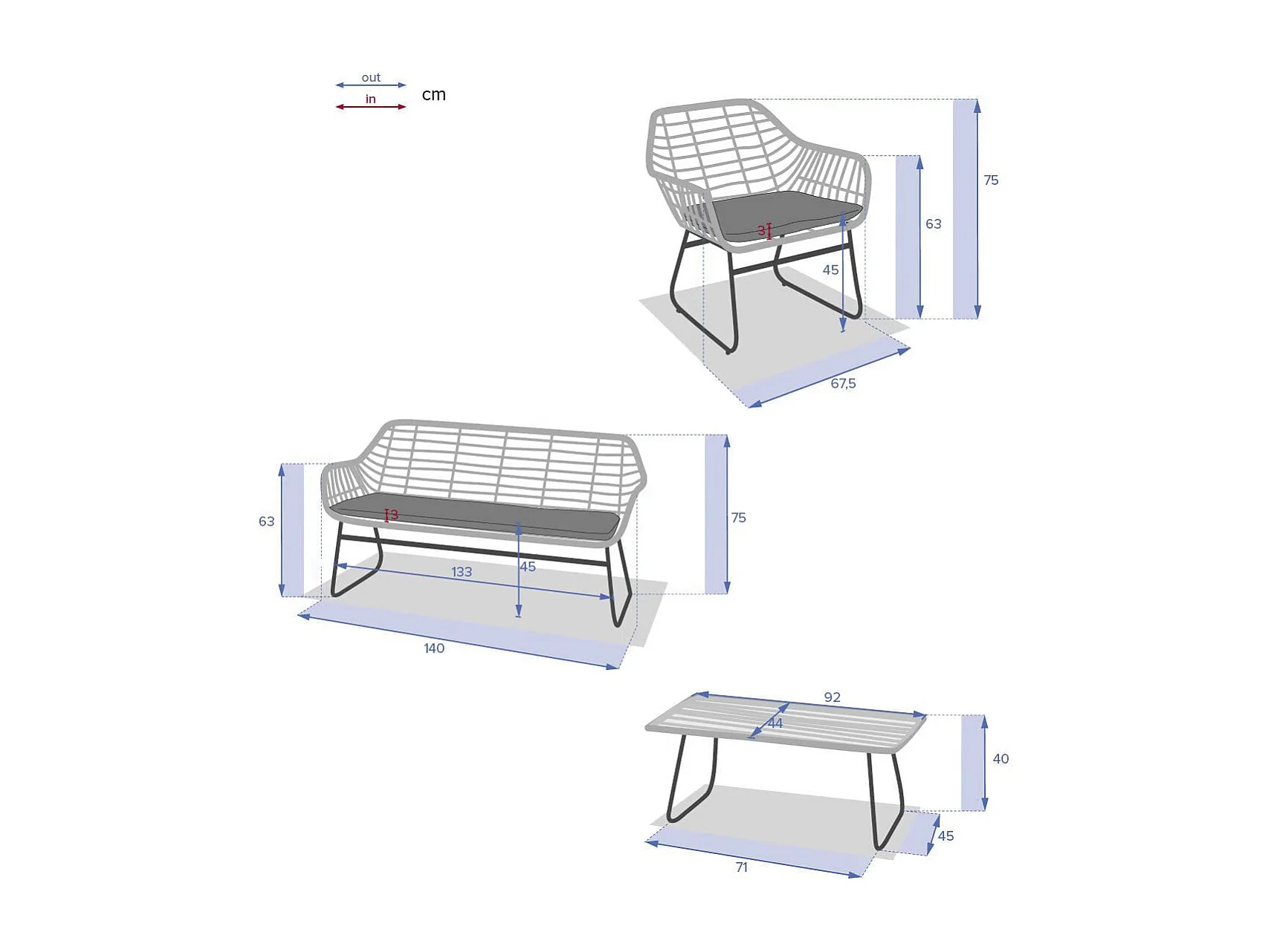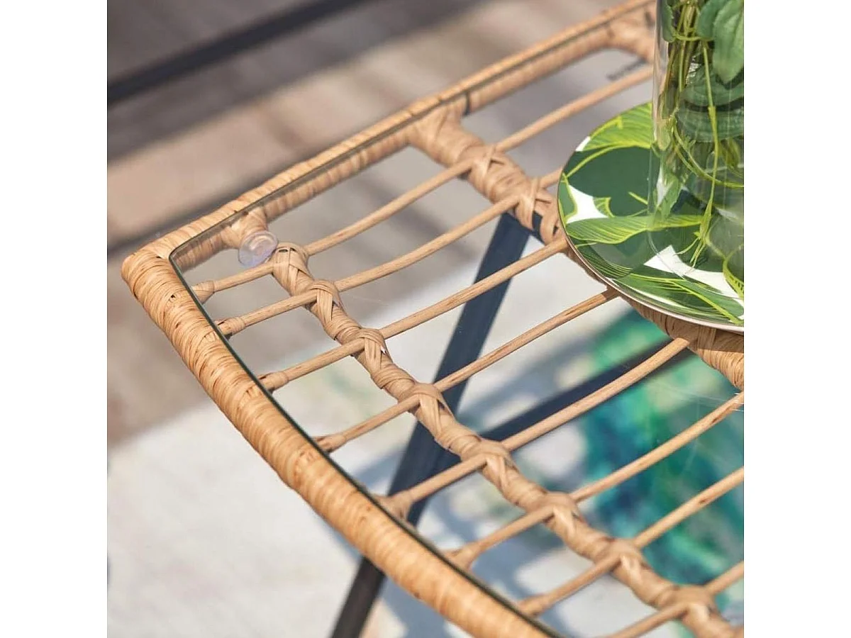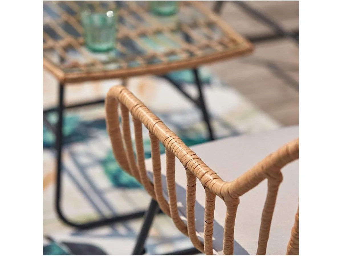 Salon de jardin en résine tressée Lambada Sésame avec table basse rectangulaire - 4 places - Hespéride