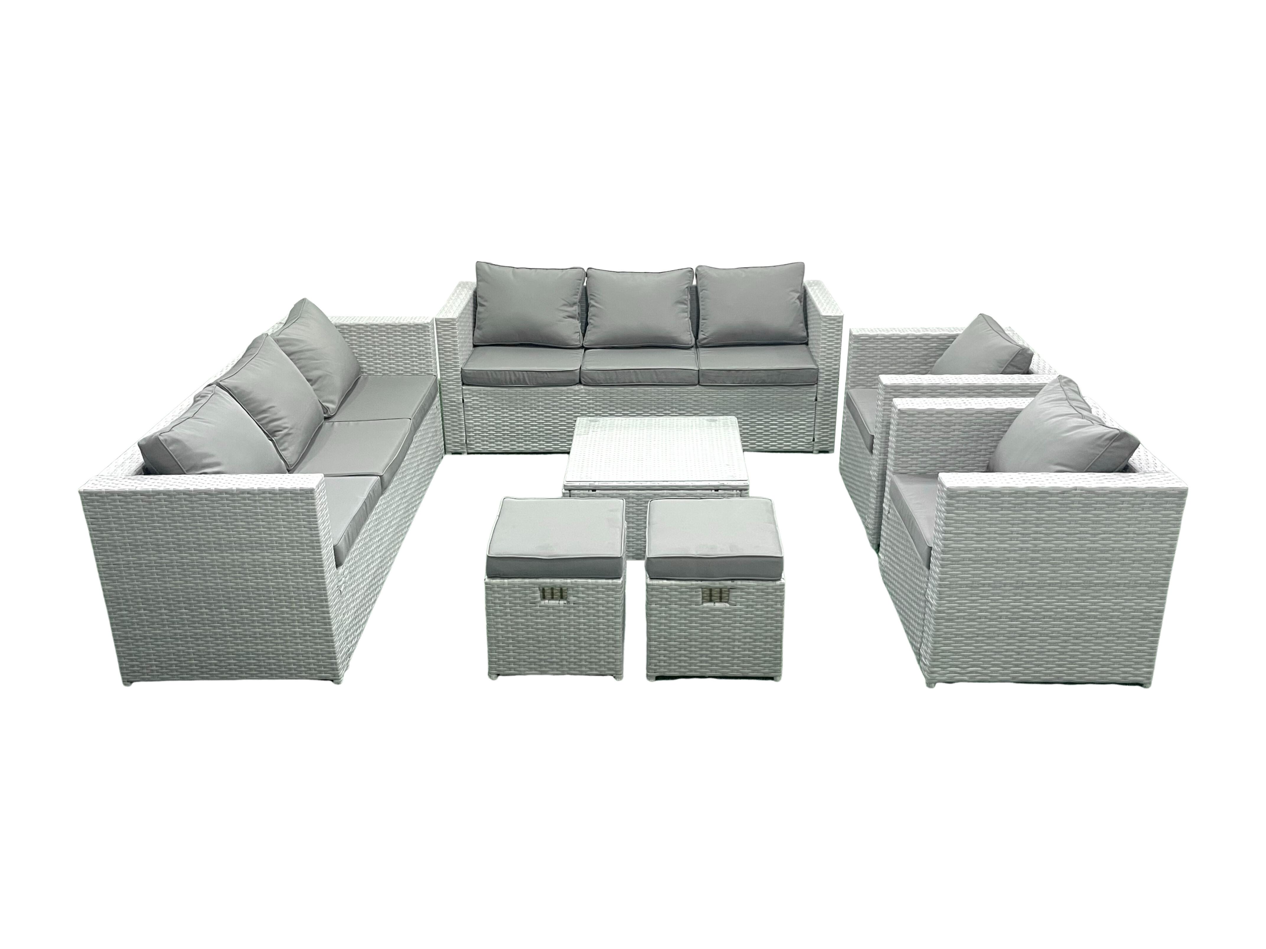 Salon de Jardin en rotin avec 2 Fauteuil Table basse carrée 2 Petits tabourets Gris clair mixte