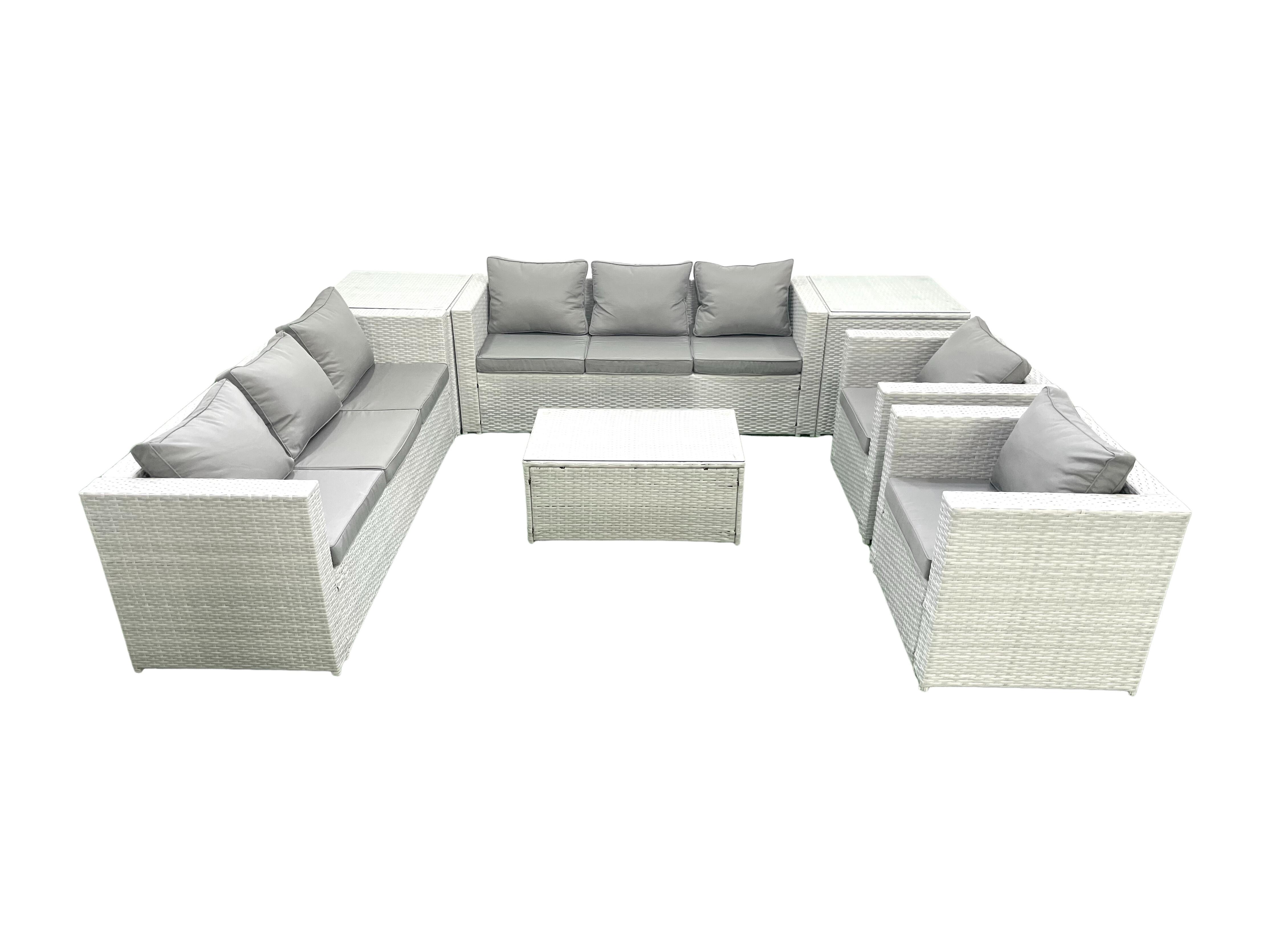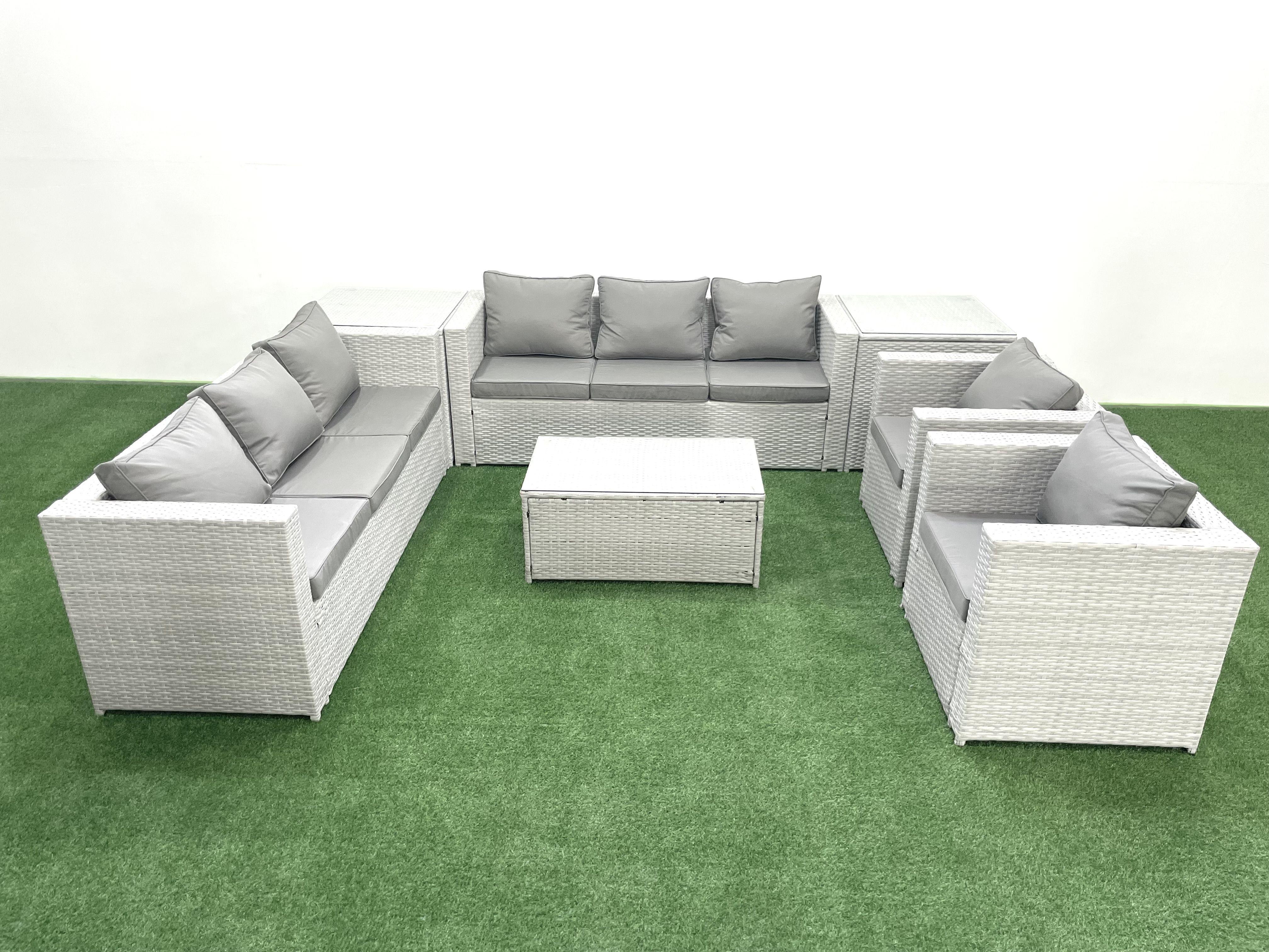 Salon de Jardin en rotin avec 2 Fauteuil Table basse oblongue 2 Tables d'appoint Gris clair mixte