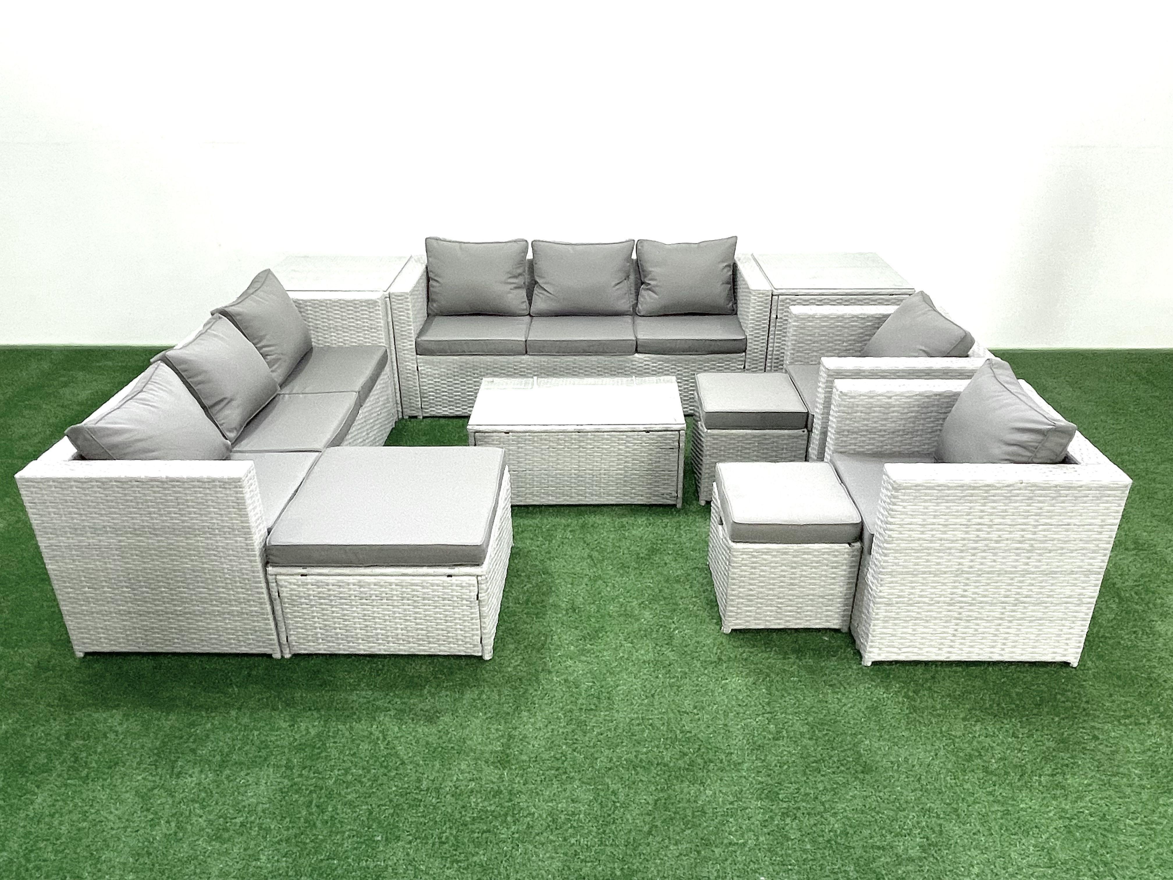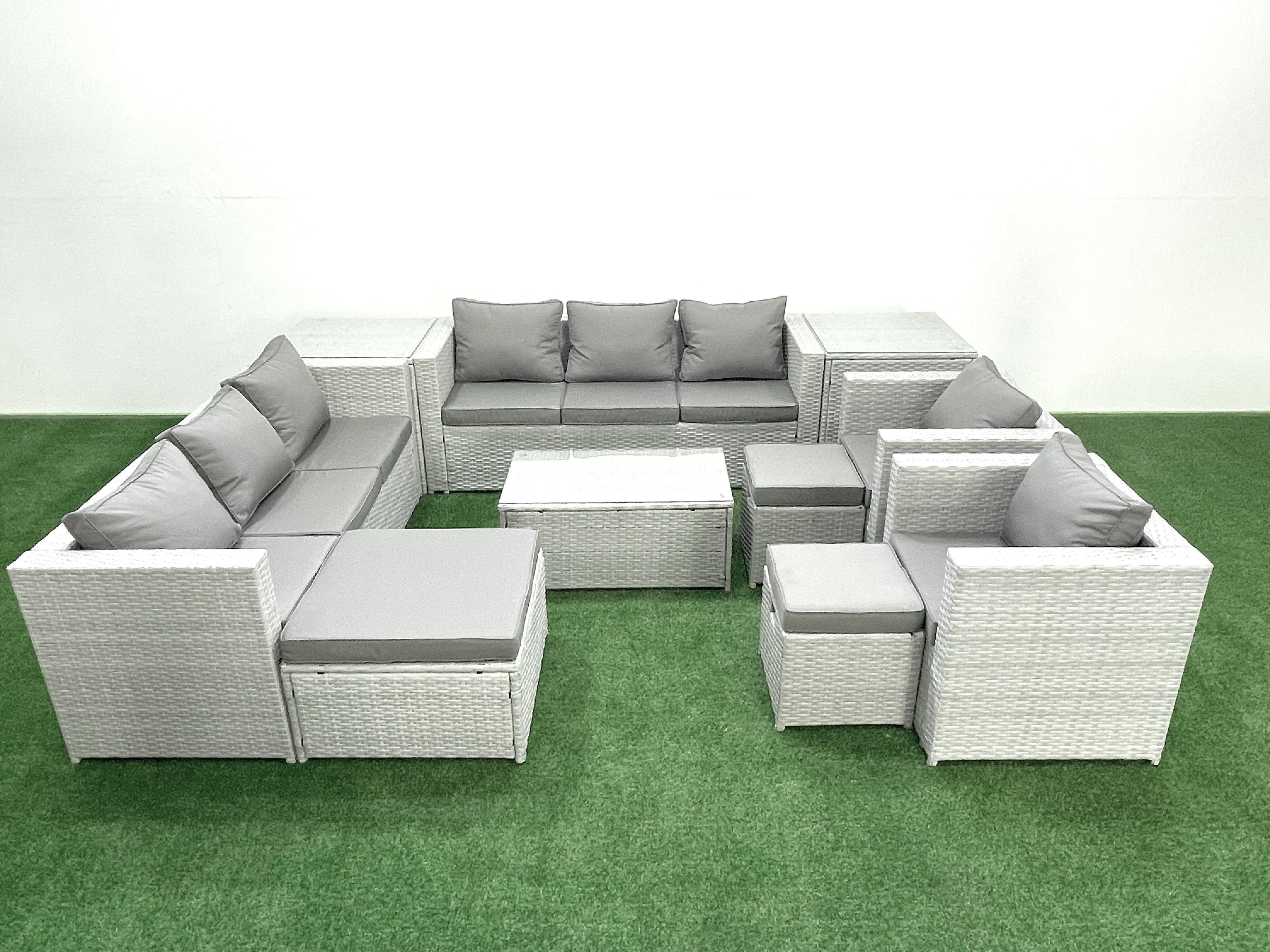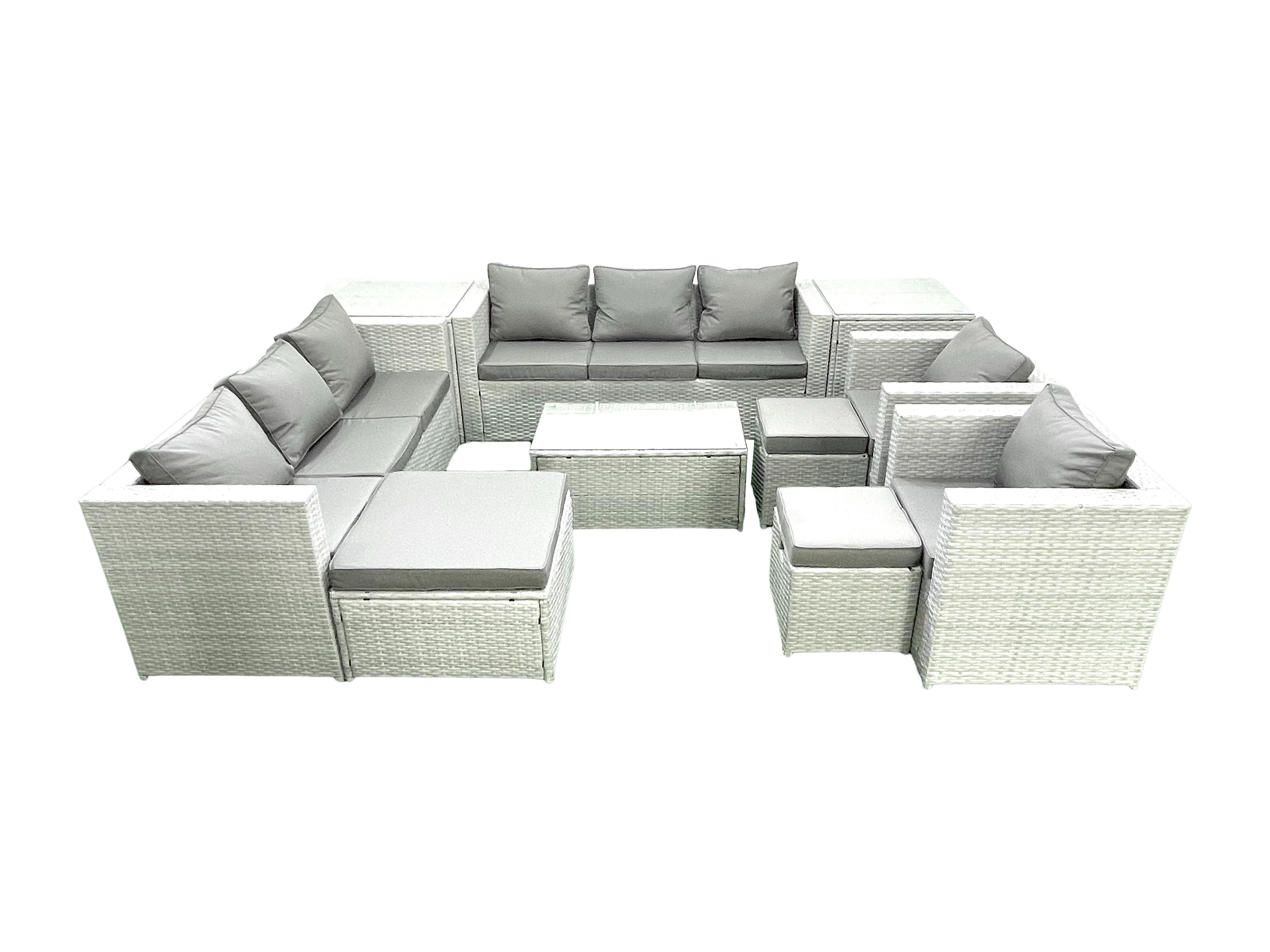 Salon de Jardin en rotin avec 2 Fauteuil Table basse oblongue 3 Tabourets 2 Tables d'appoint Gris clair mixte