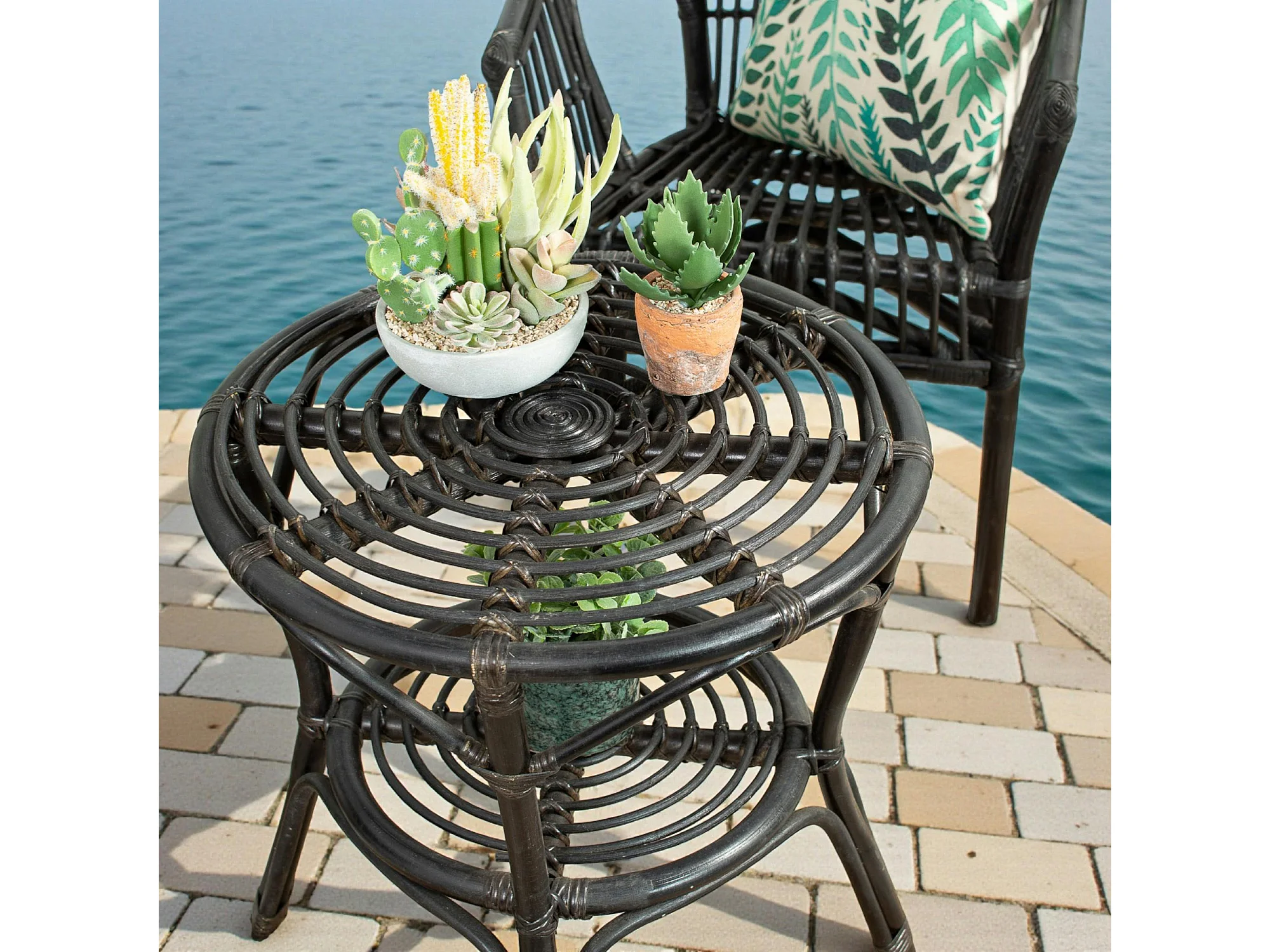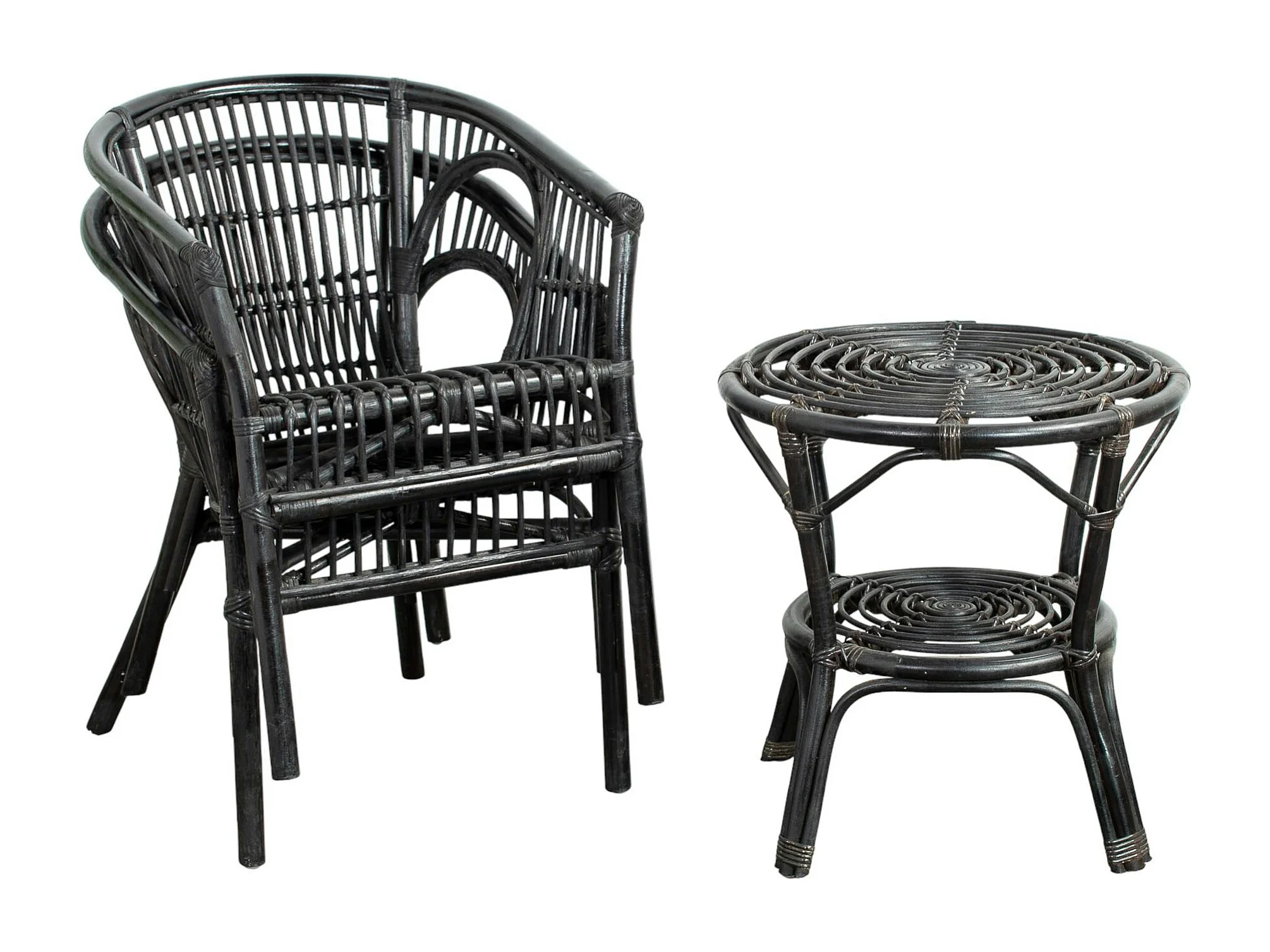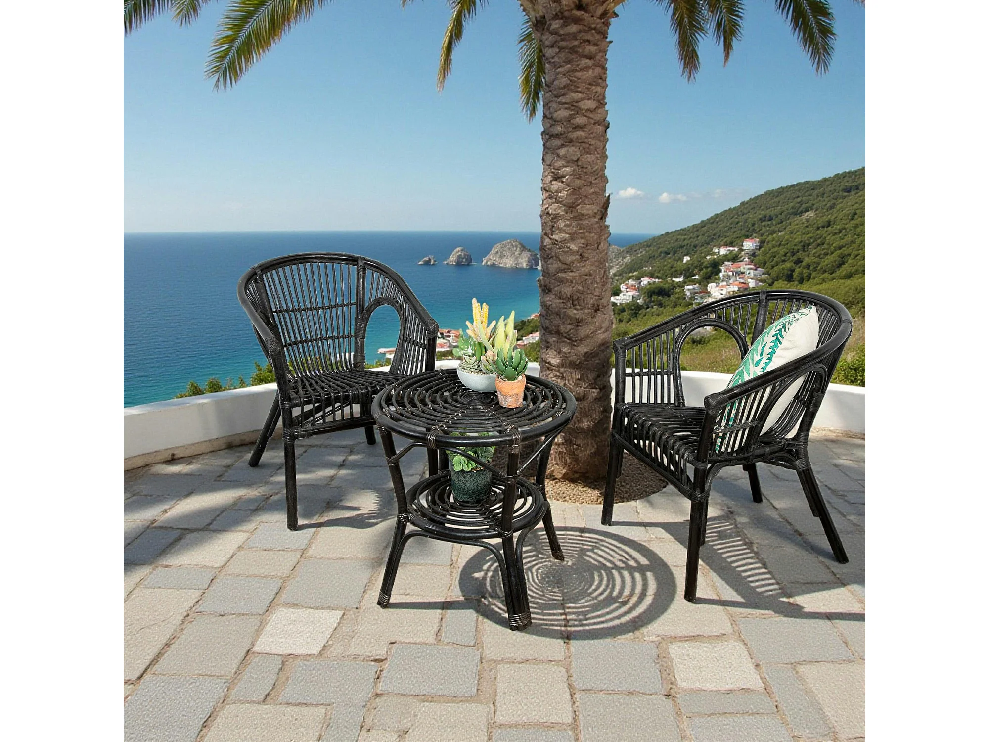 Salon de jardin en rotin noir (2 fauteuils, 1 table basse) COPENHAGUE
