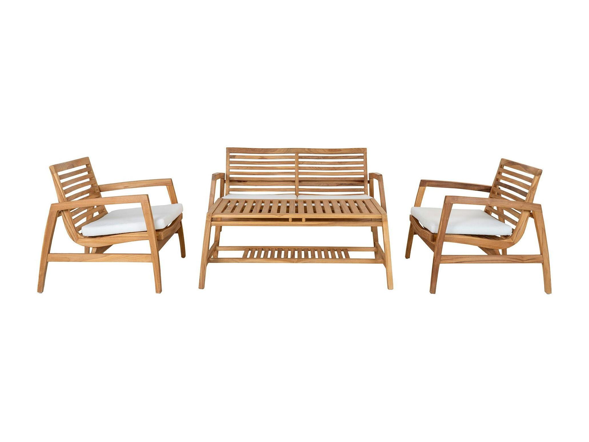 Salon de jardin en teck (1 canapé, 2 fauteuils, 1 table basse) MENDOZA