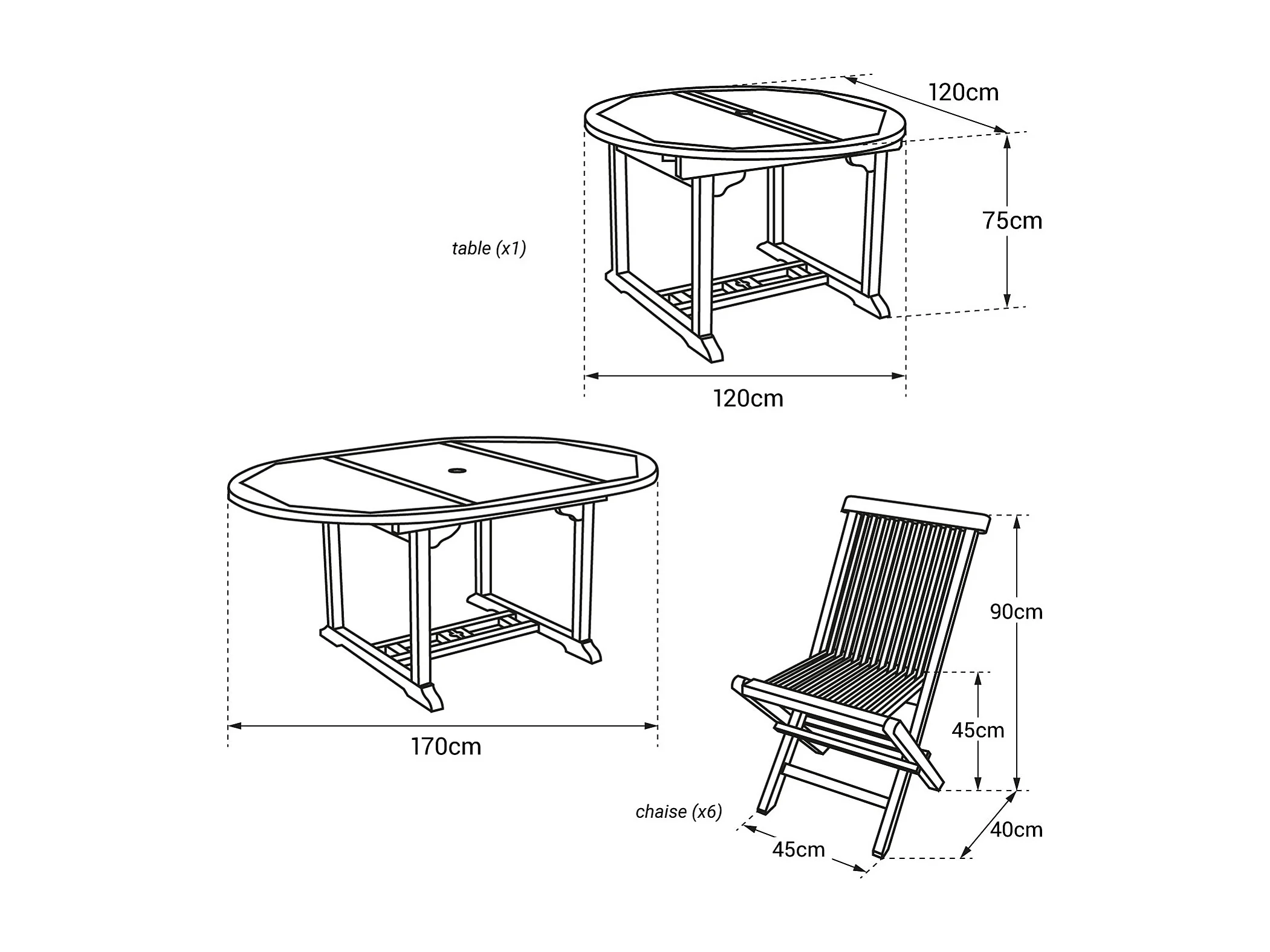 Salon de jardin en teck LOMBOK - table ronde extensible - 6 places - HAPPY GARDEN