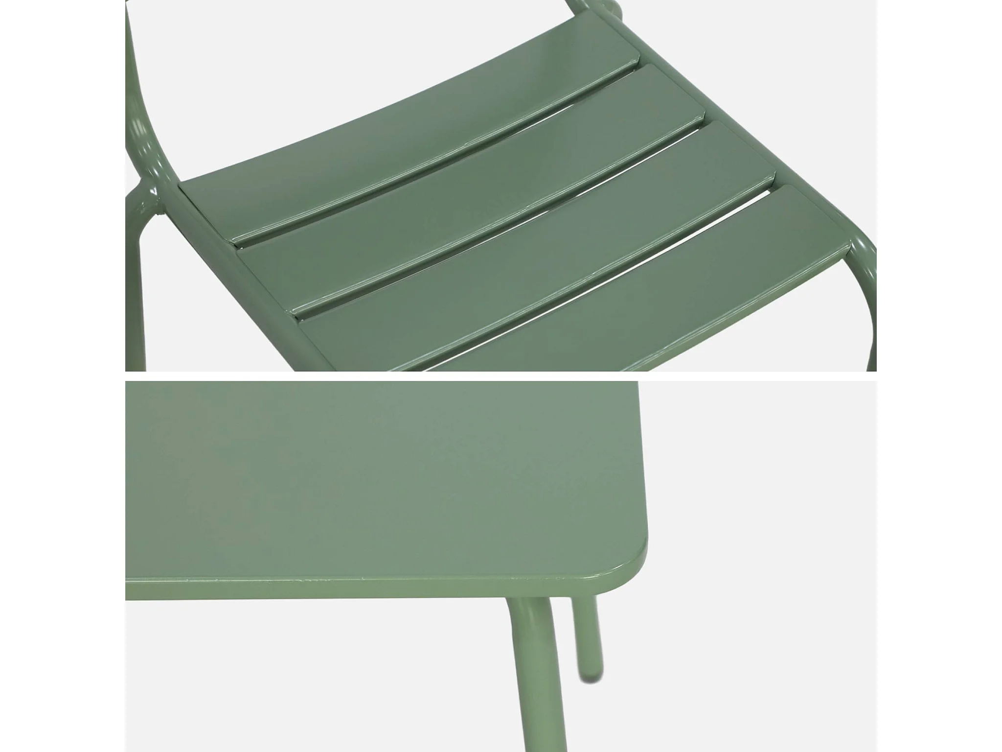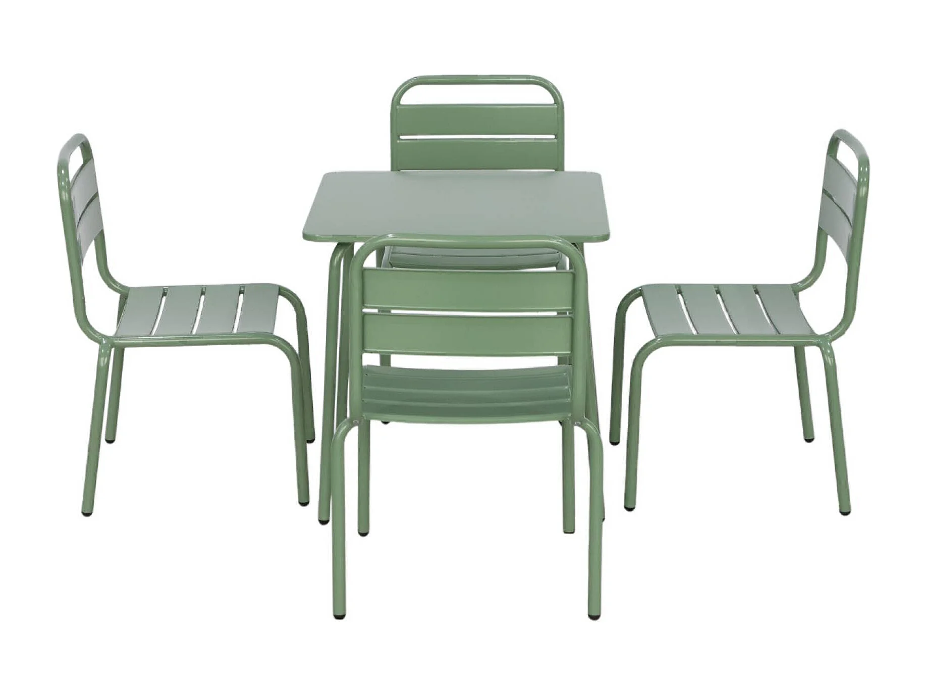 Salon de jardin enfant. table et chaises métal + 4 assises Anna vert de gris 48x48cm