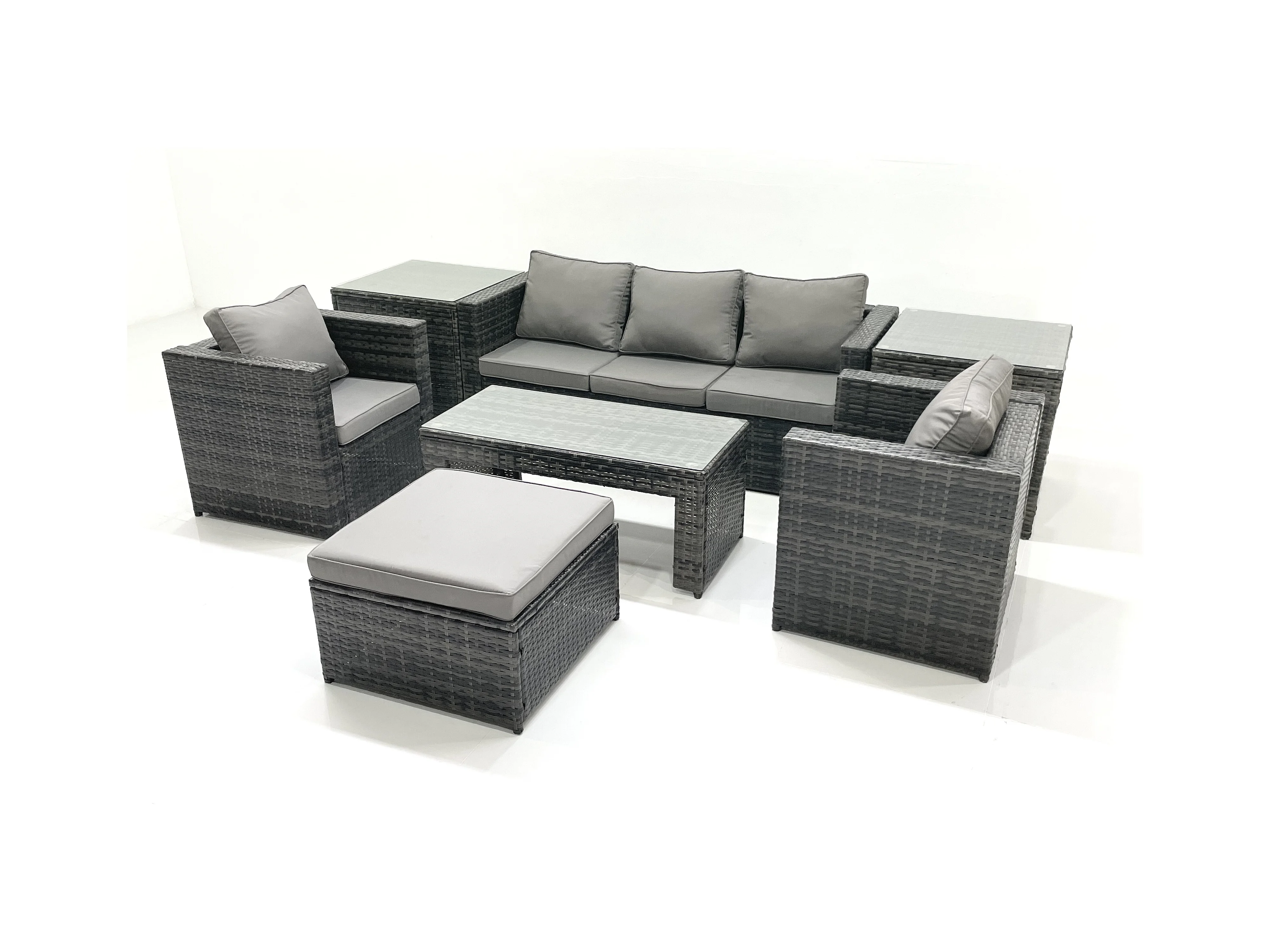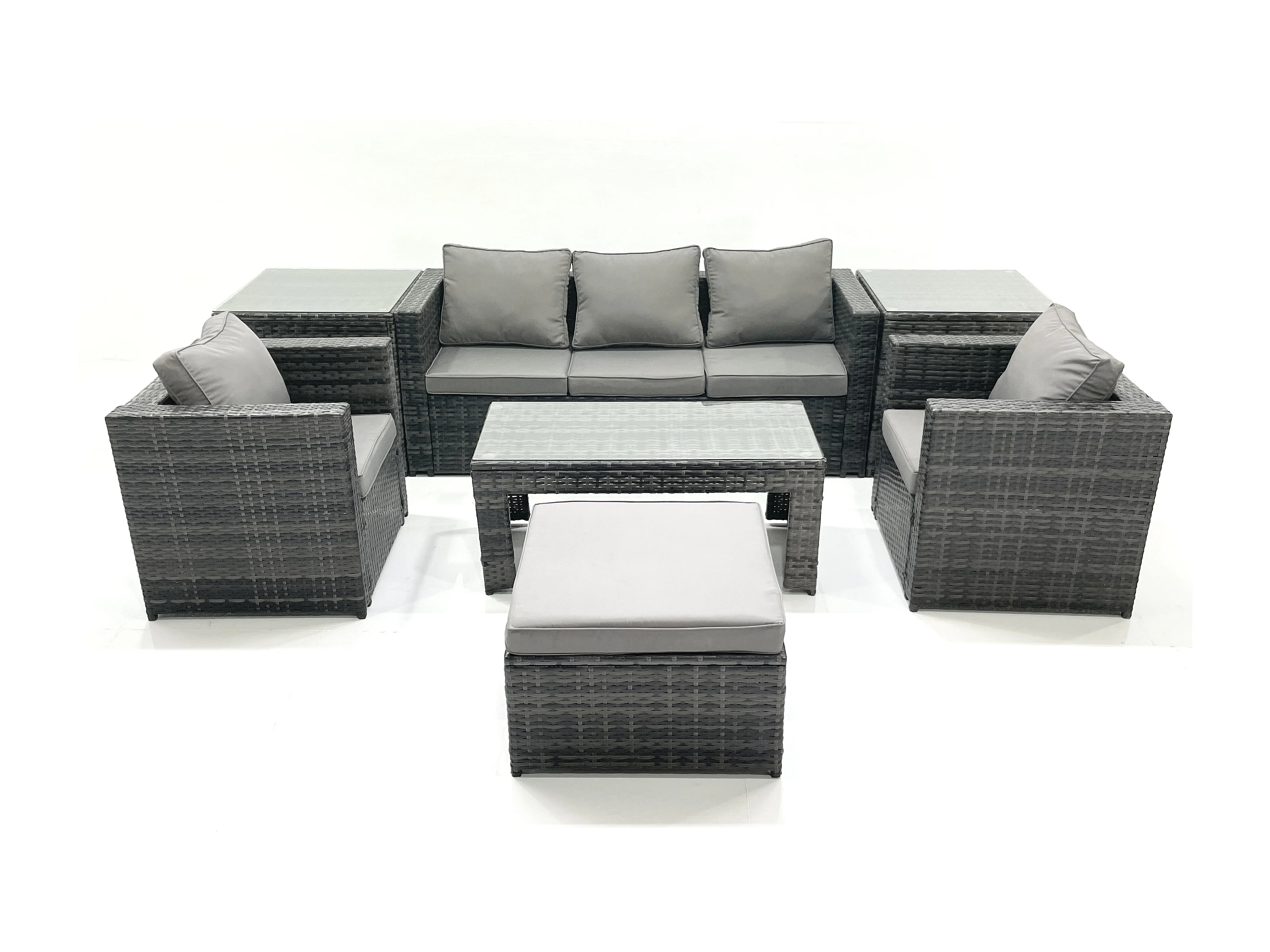 Salon de jardin Ensemble de canapés en rotin avec Table basse 2 Fauteuil Grand tabouret 2 Tables d'appoint Gris foncé mixte