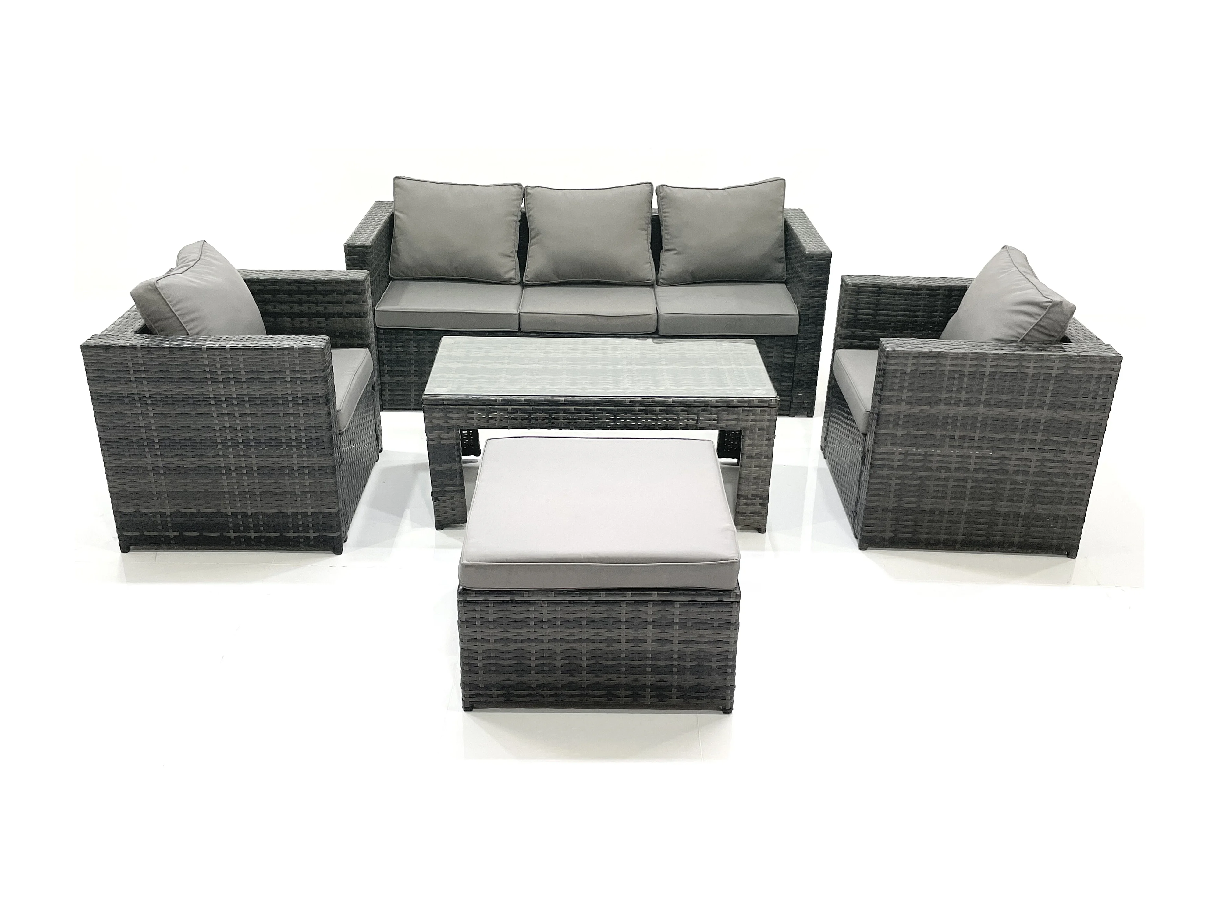 Salon de jardin Ensemble de canapés en rotin avec Table basse 2 Fauteuil Grand tabouret Gris foncé mixte