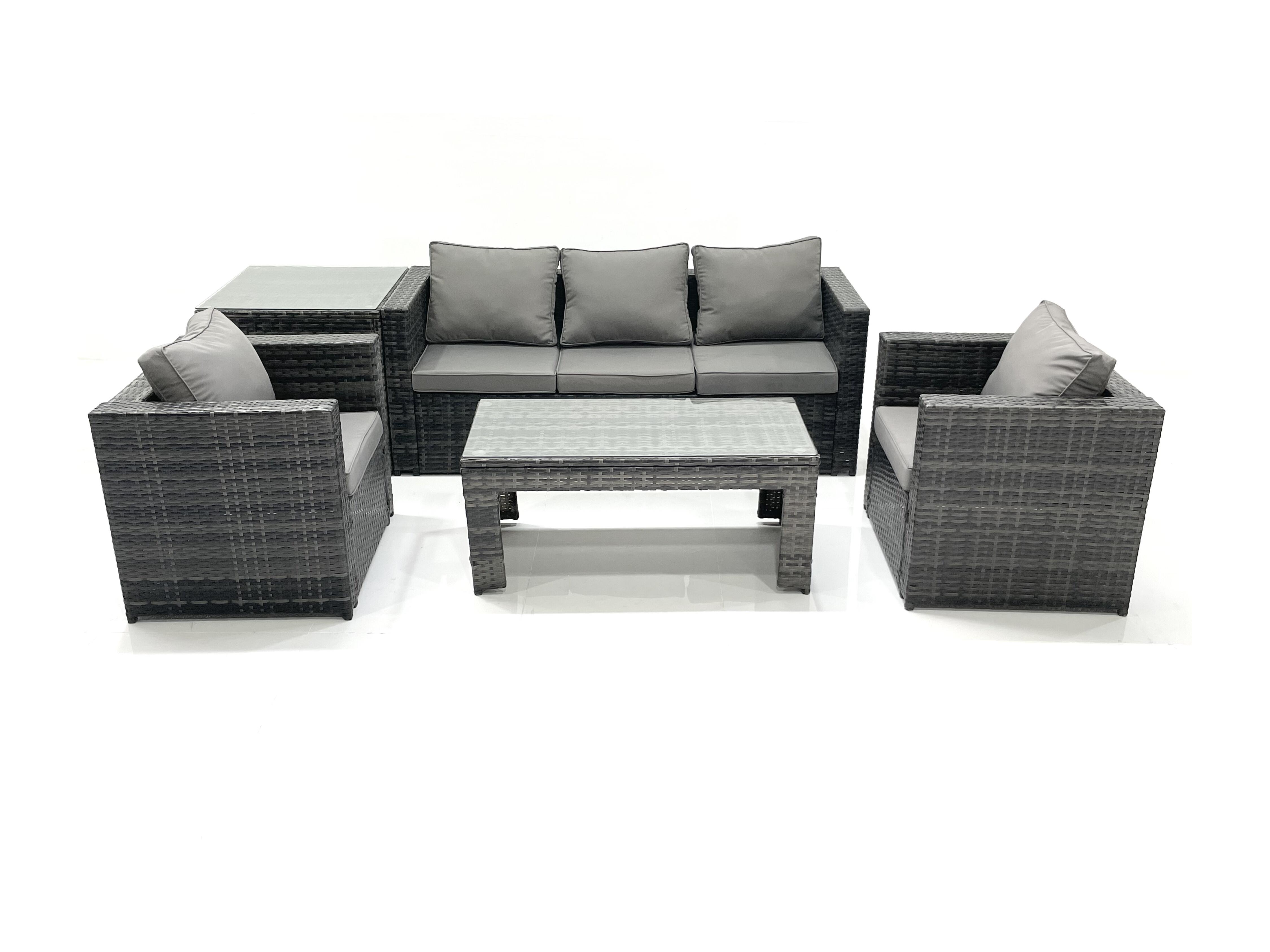 Salon de jardin Ensemble de canapés en rotin avec Table basse 2 Fauteuil Table d'appoint Gris foncé mixte