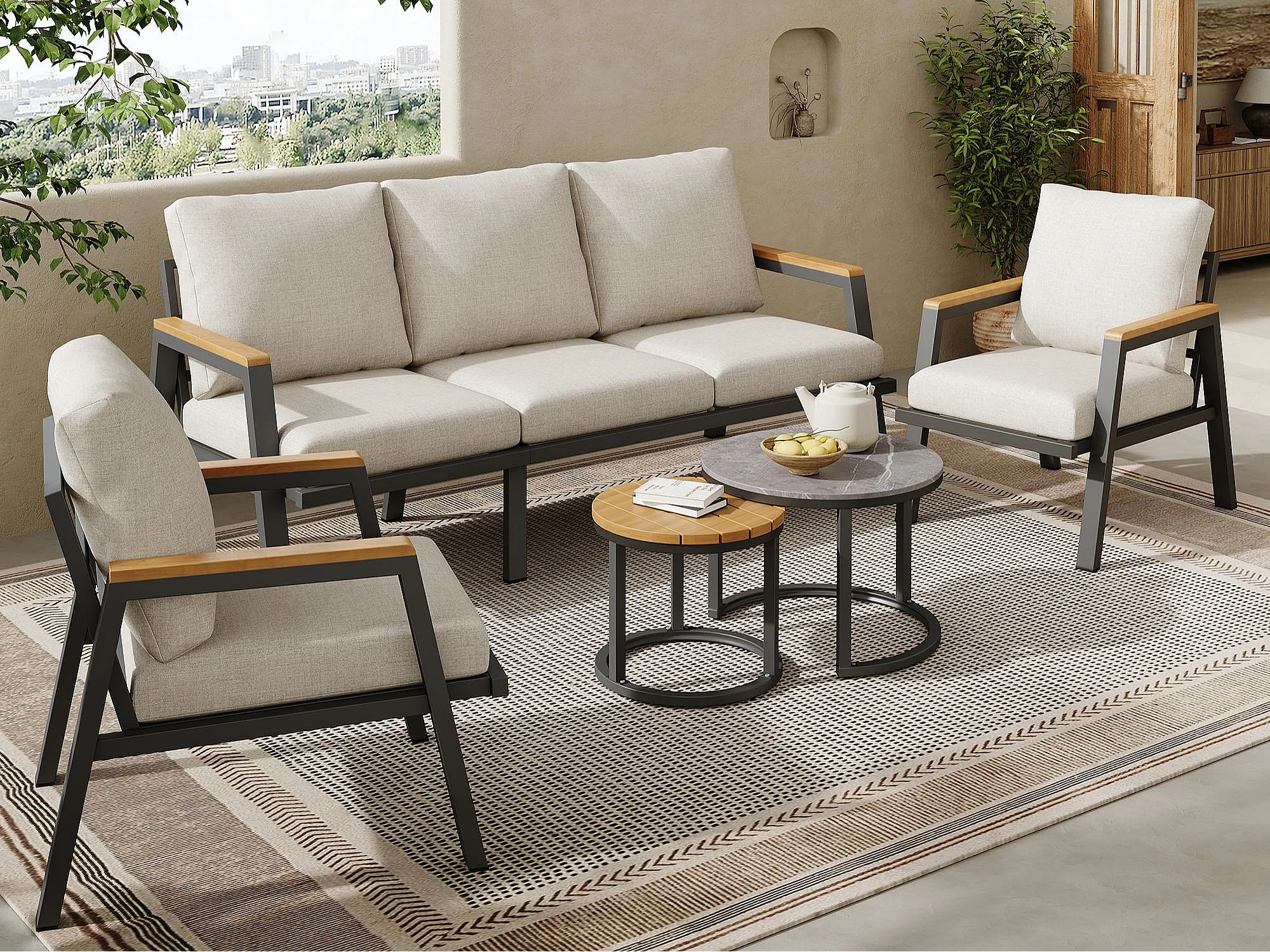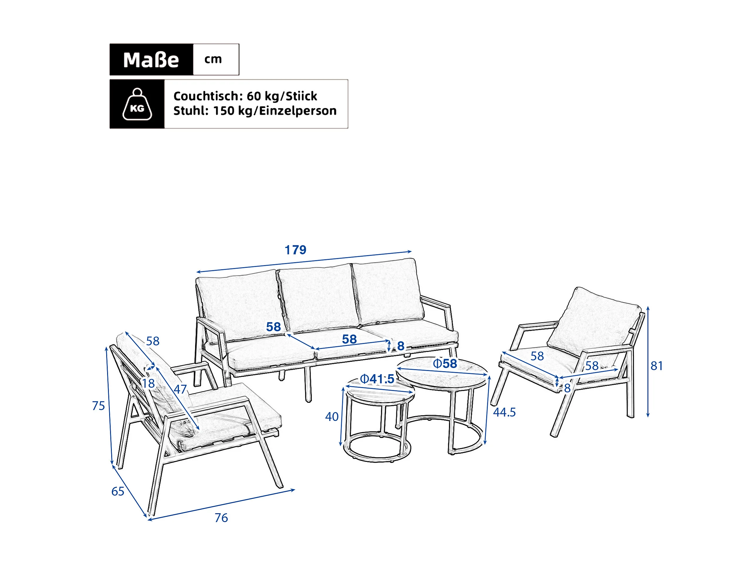 Salon de jardin, ensemble de meubles de jardin, 5 places, canapé 3 places, 2 fauteuils et 2 tables basses, extérieur, acier galvanisé, gris