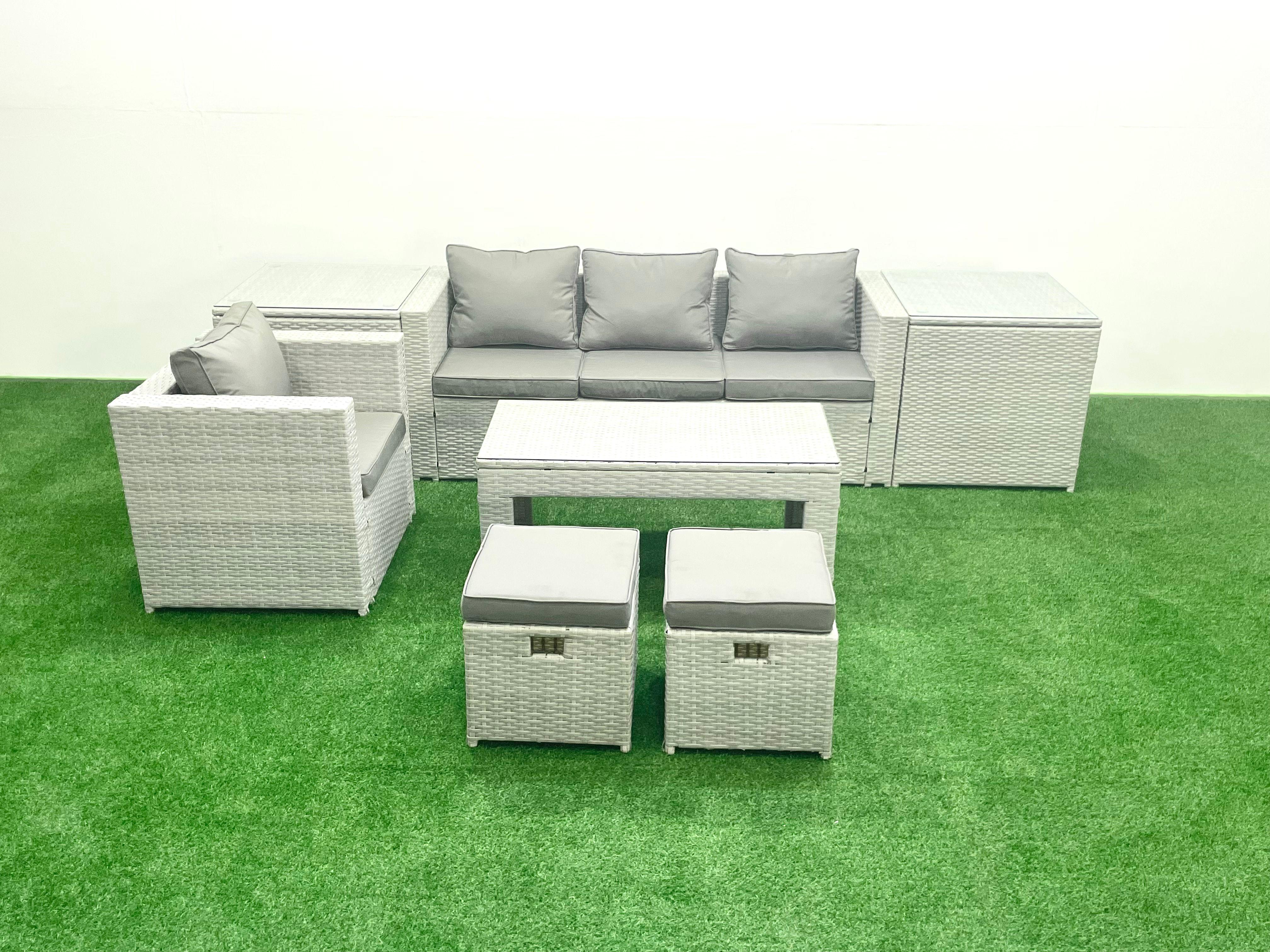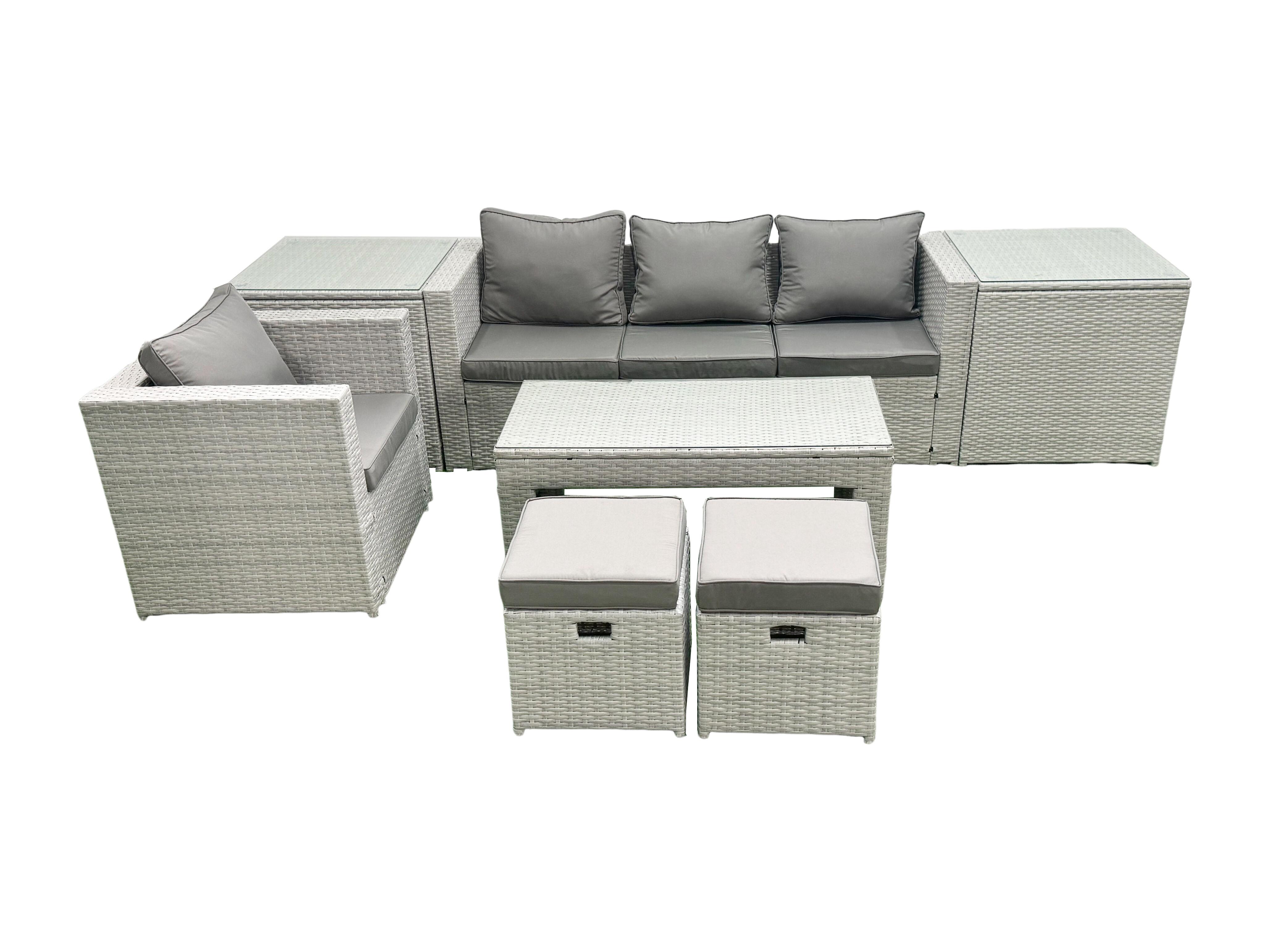 Salon de Jardin Ensemble Ensemble de canapés en rotin avec Table basse 2 Petits tabourets 2 Tables d'appoint Gris clair mixte