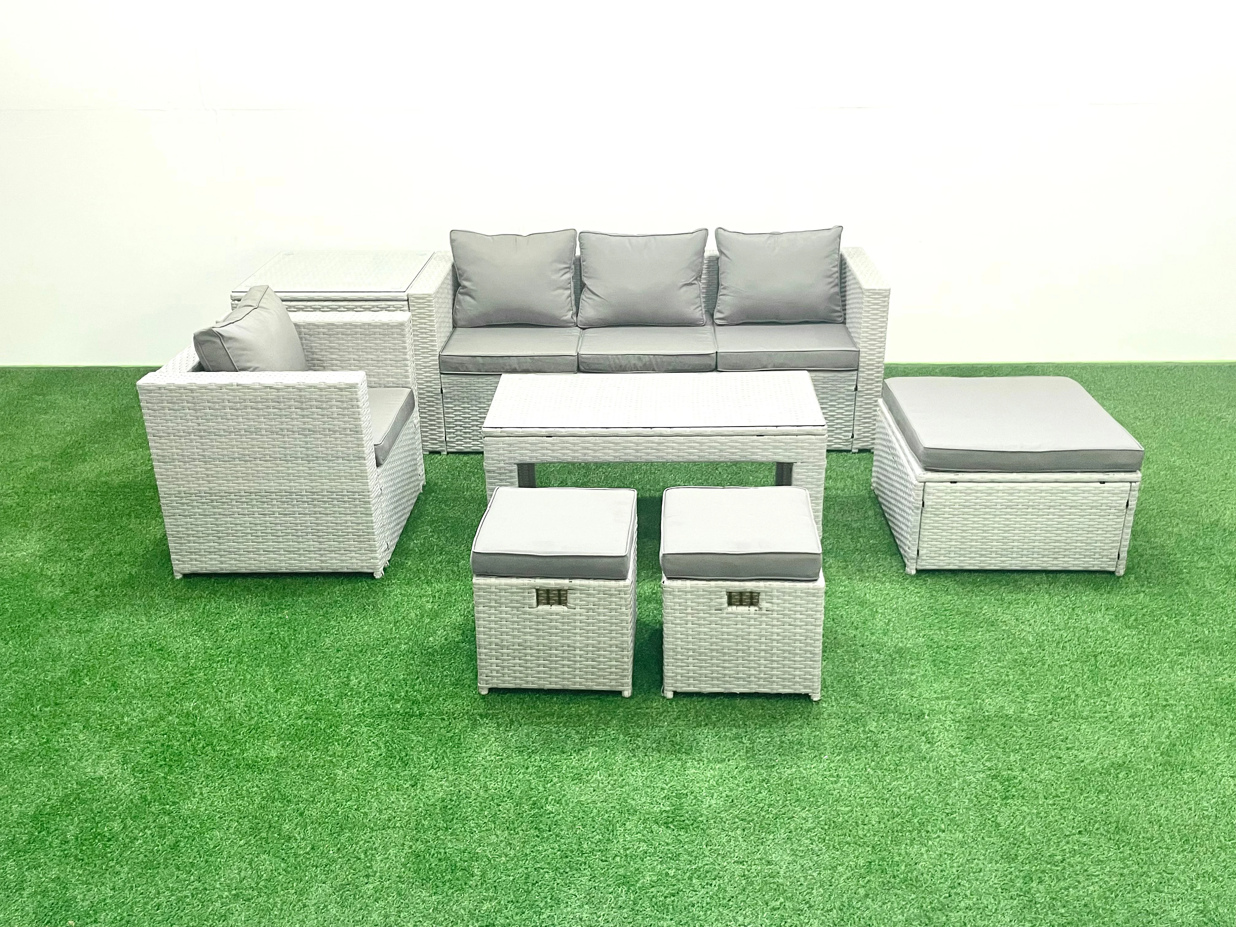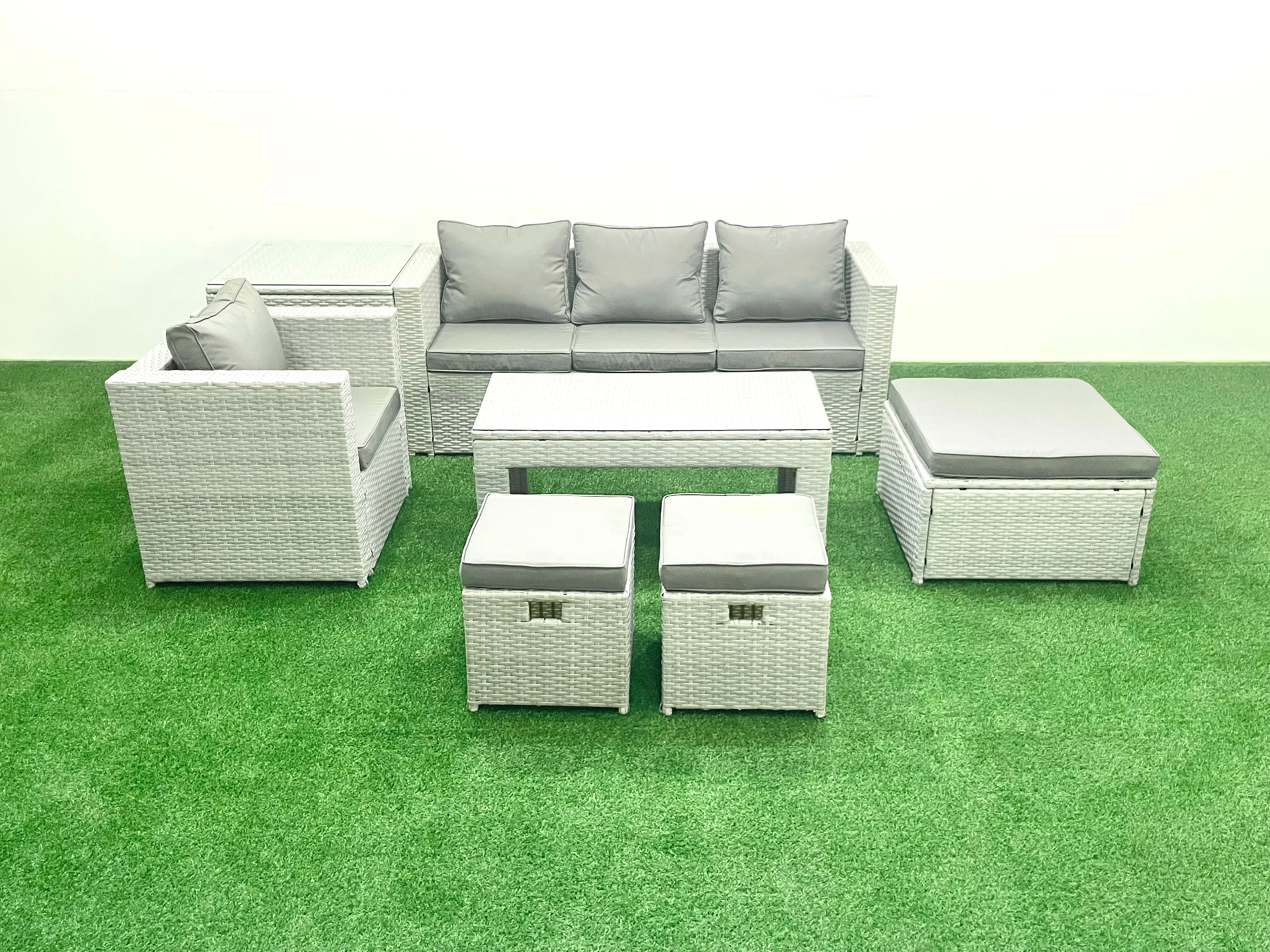 Salon de Jardin Ensemble Ensemble de canapés en rotin avec Table basse 3 Tabourets Table d'appoint Gris clair mixte