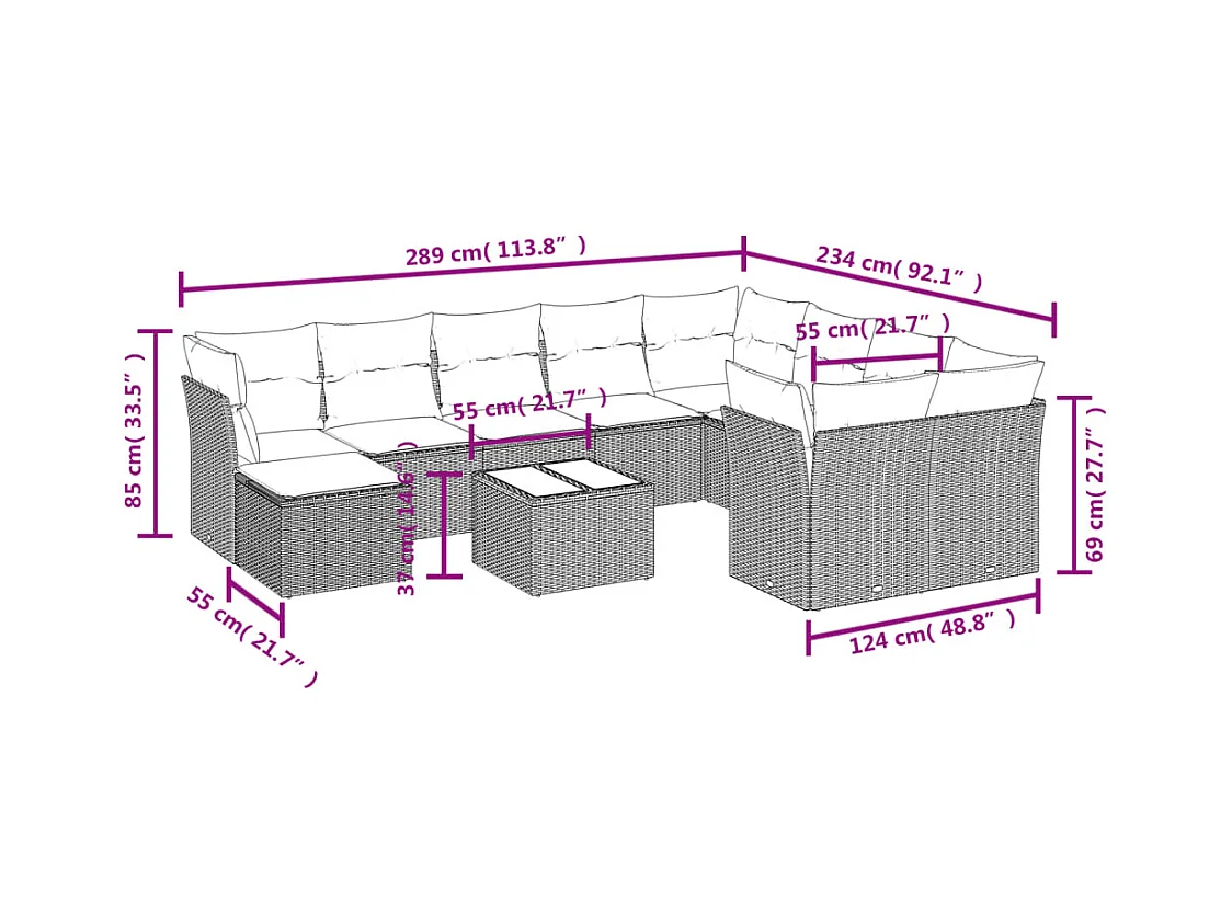 Salon de jardin et coussins 11 pcs marron résine tressée