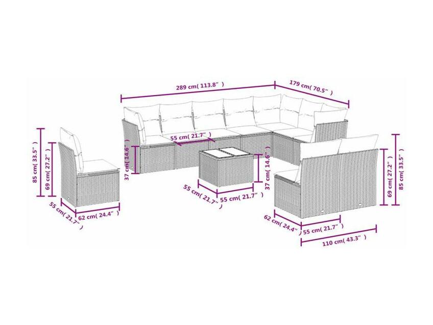 Salon de jardin et coussins 11 pcs marron résine tressée