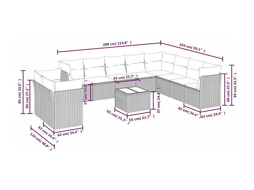 Salon de jardin et coussins 11 pcs marron résine tressée