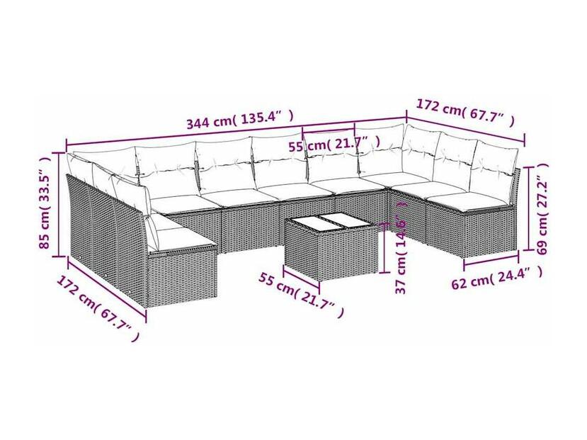 Salon de jardin et coussins 11 pcs marron résine tressée