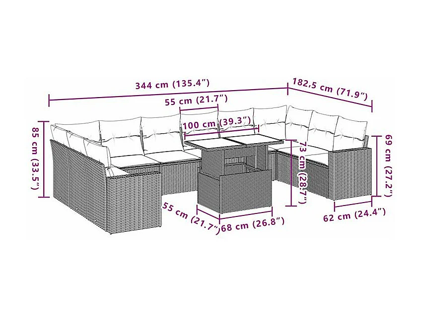 Salon de jardin et coussins 11 pcs marron résine tressée