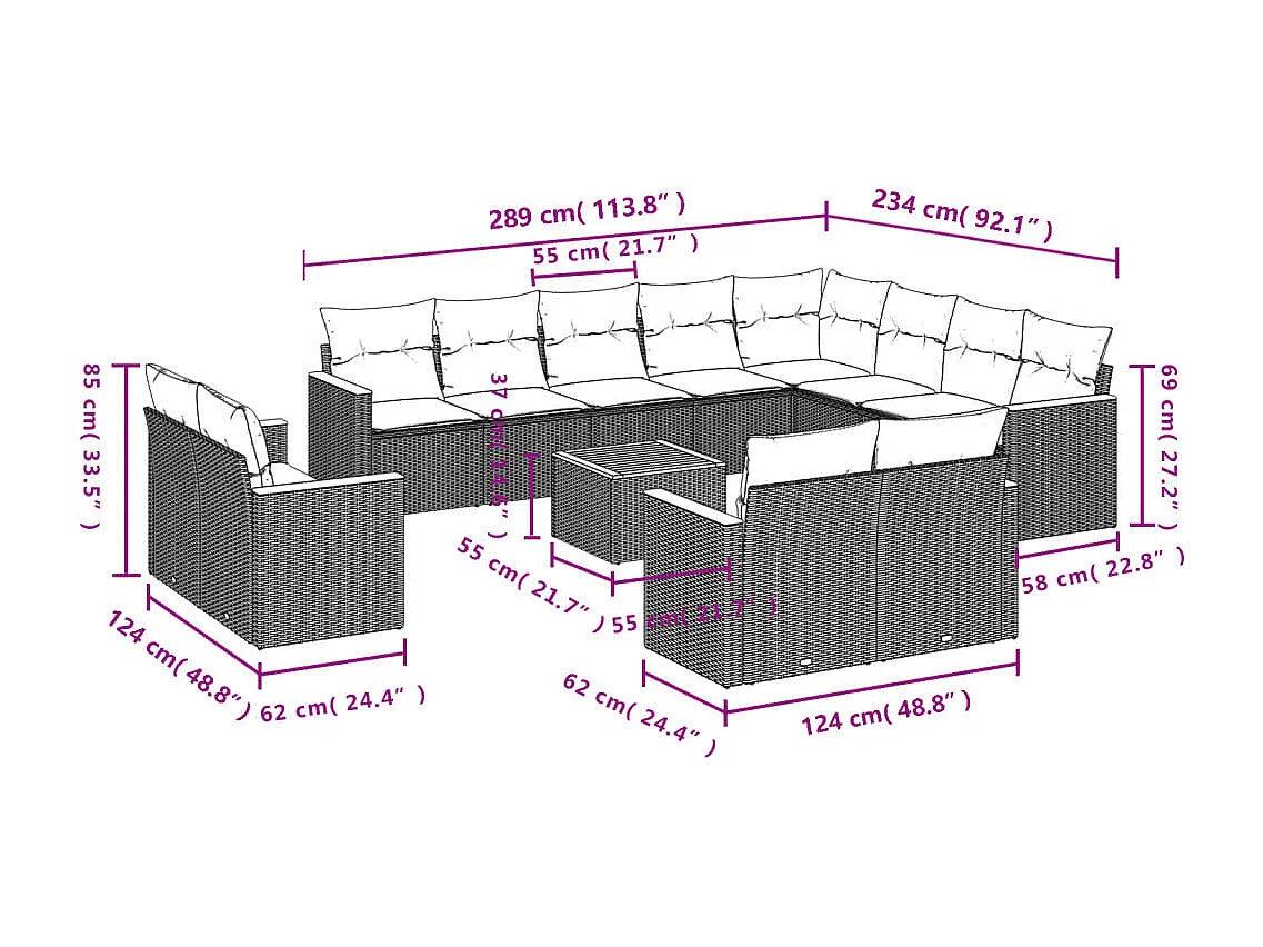 Salon de jardin et coussins 13 pcs mélange beige résine tressée