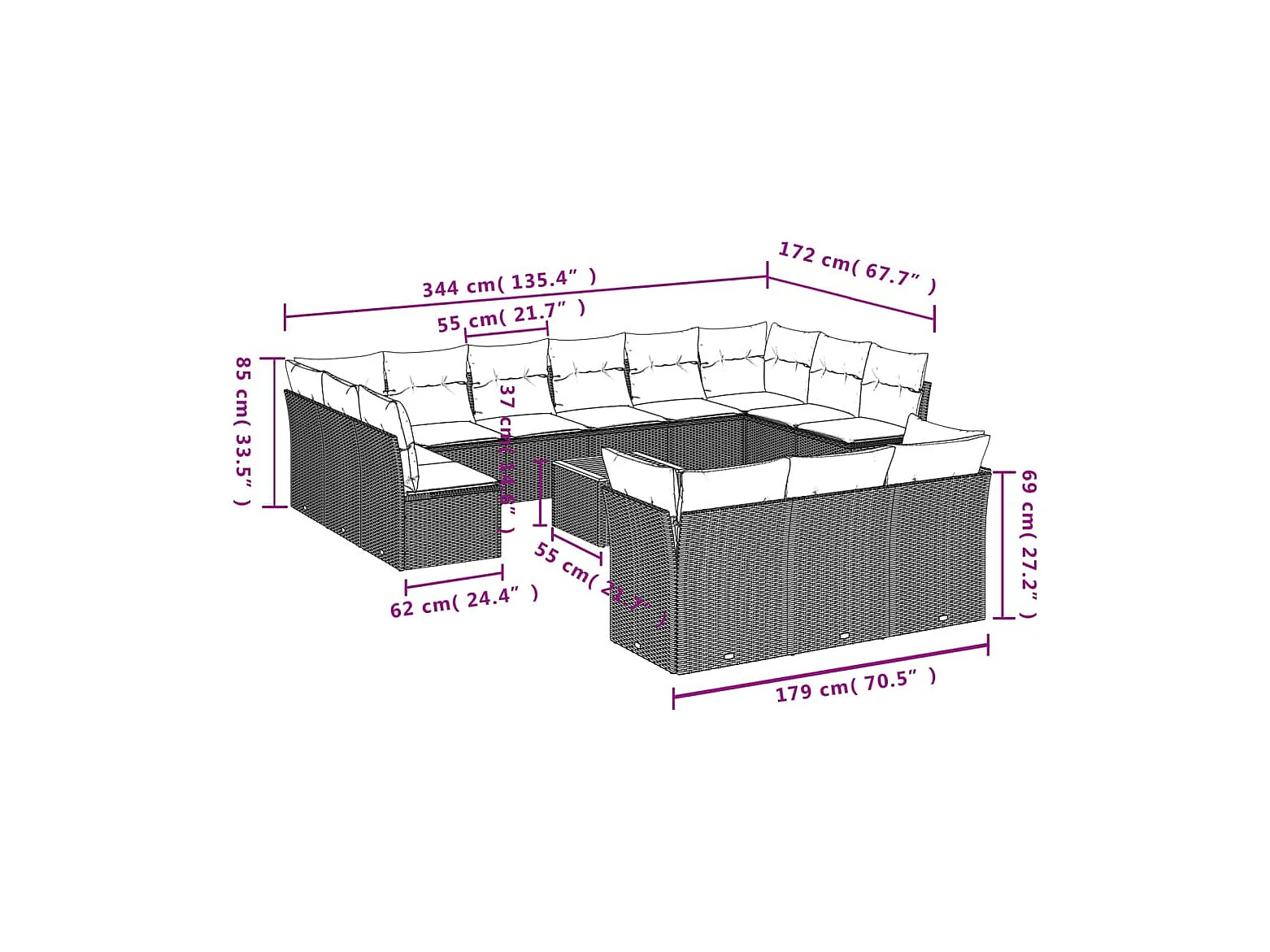 Salon de jardin et coussins 14 pcs mélange beige résine tressée