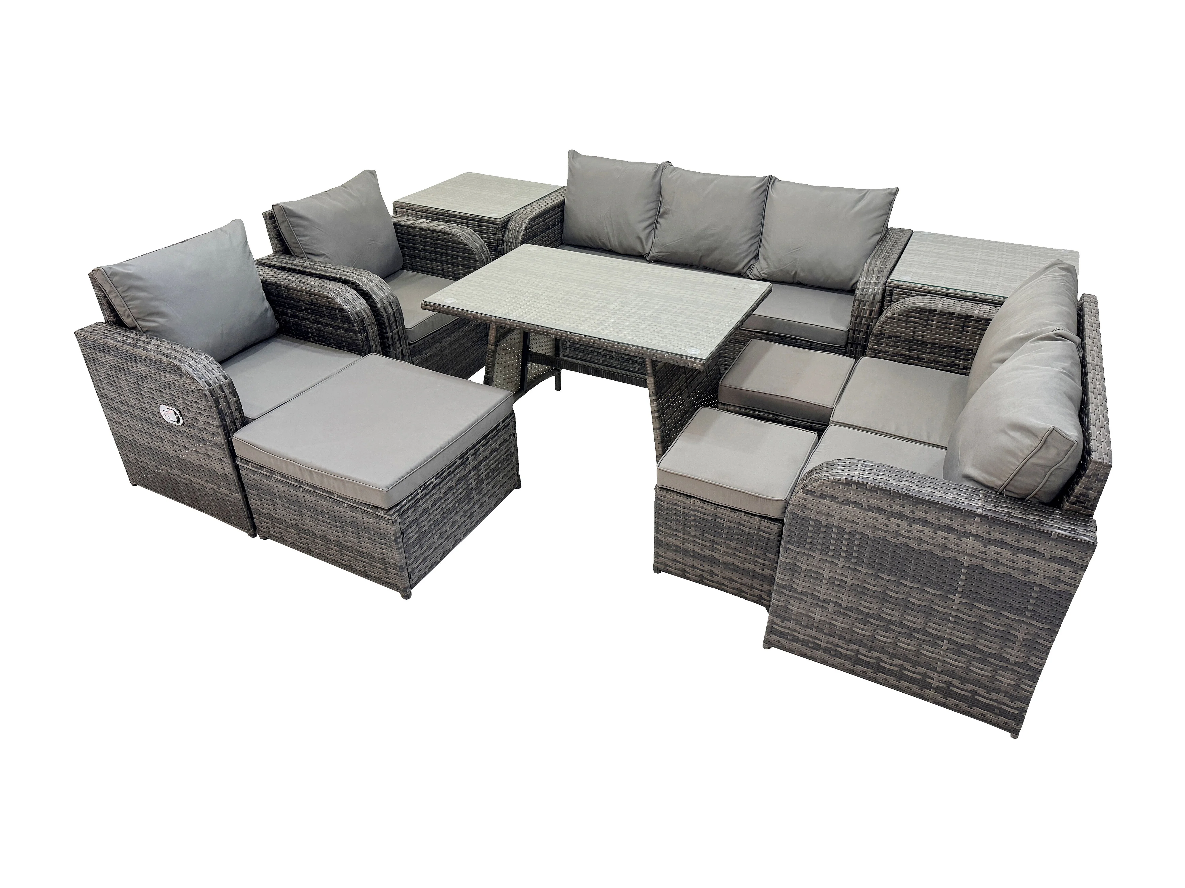 Salon de jardin exterieur 10 places Ensemble de canapés en rotin avec Table à manger 3 Tabourets 2 Tables d'appoint Gris foncé mixte