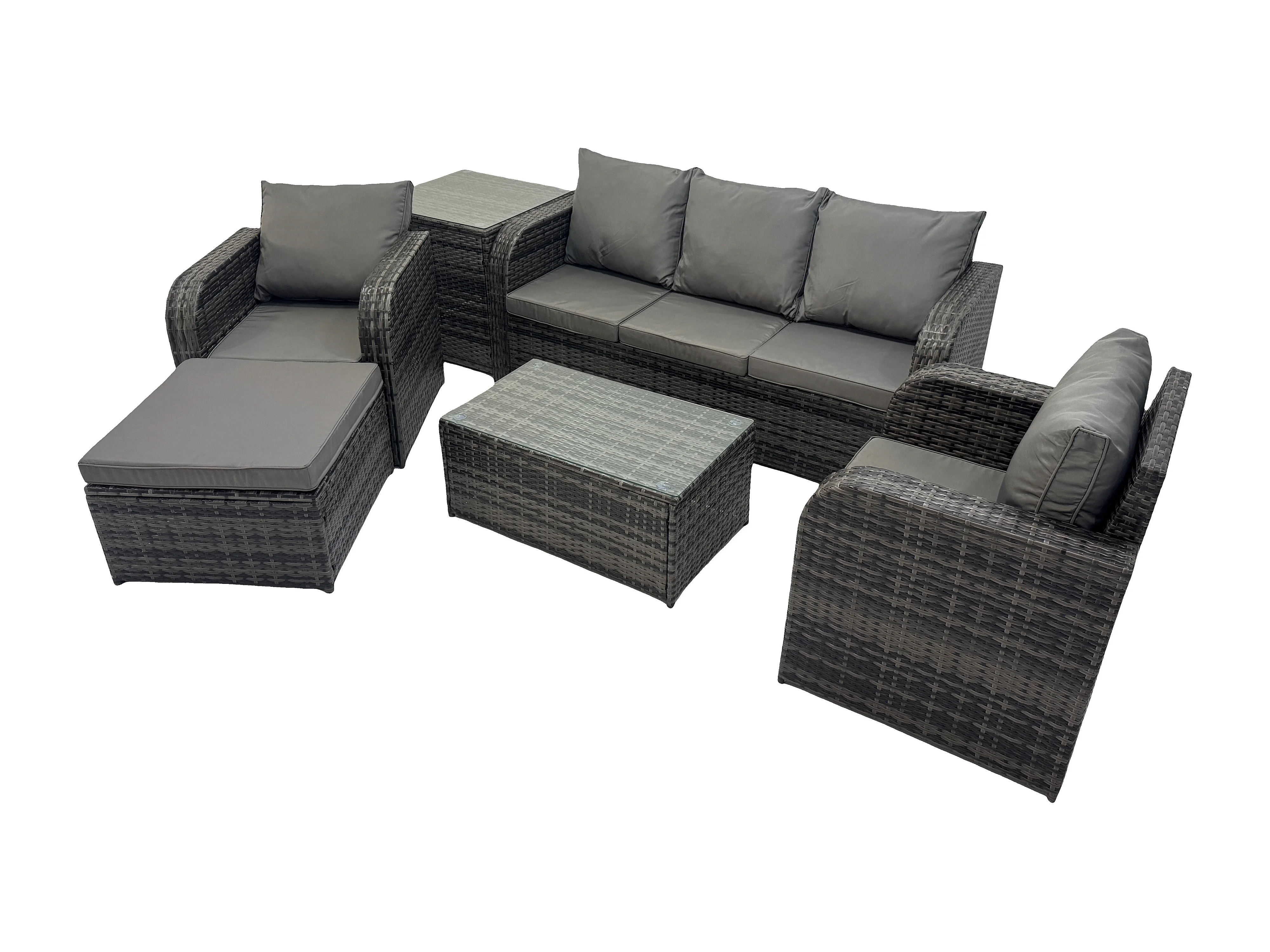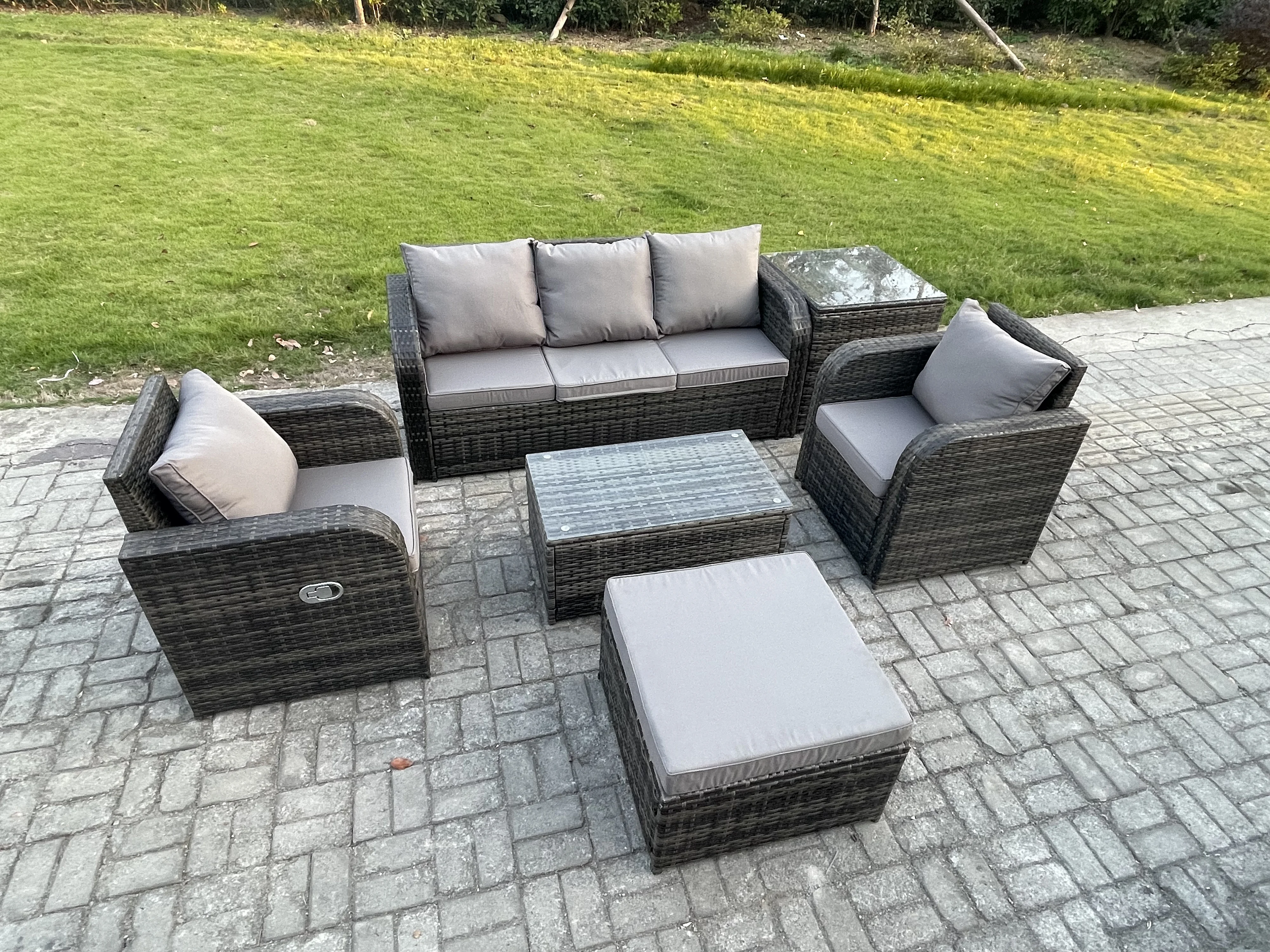 Salon de jardin exterieur 6 places Ensemble de canapés en rotin avec Chaise inclinable Table basse rectangulaire Grand tabouret Table d'appoint Gris foncé mixte