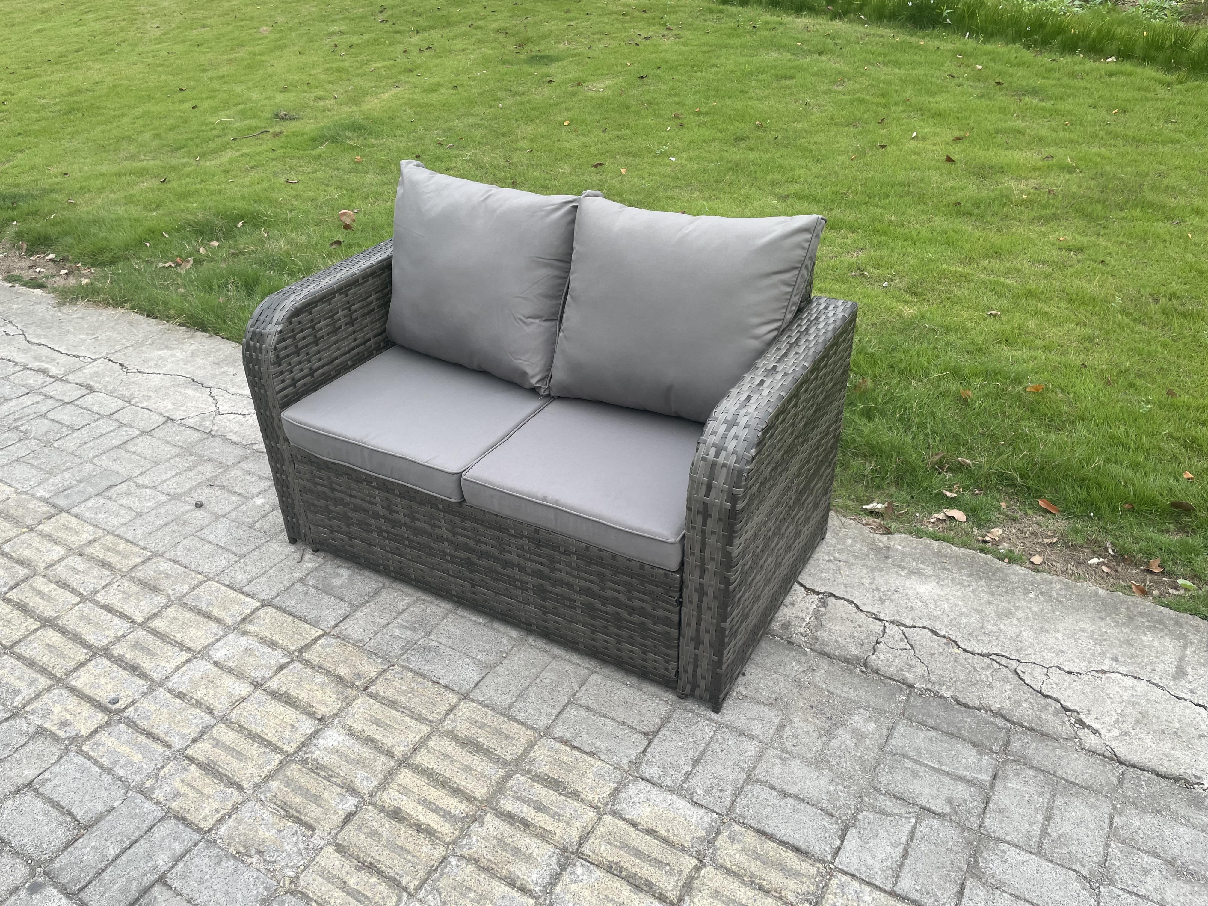 Salon de jardin exterieur 8 places avec Canapé d'amour Table à manger rectangulaire 2 Petit pouf Gris foncé mixte
