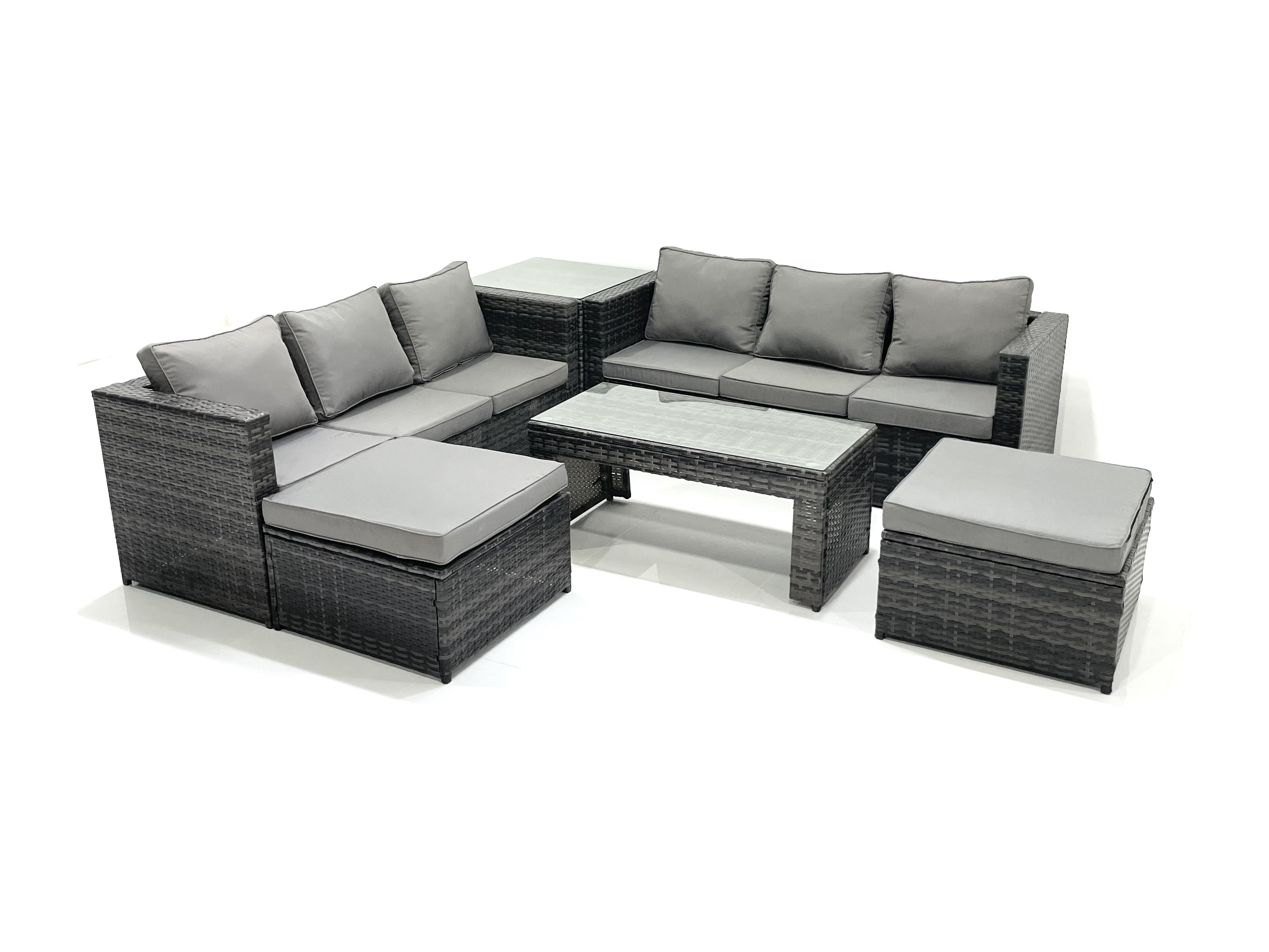 Salon de Jardin Extérieur avec Canapé Table basse 2 Grand tabourets Table d'appoint Gris foncé mixte