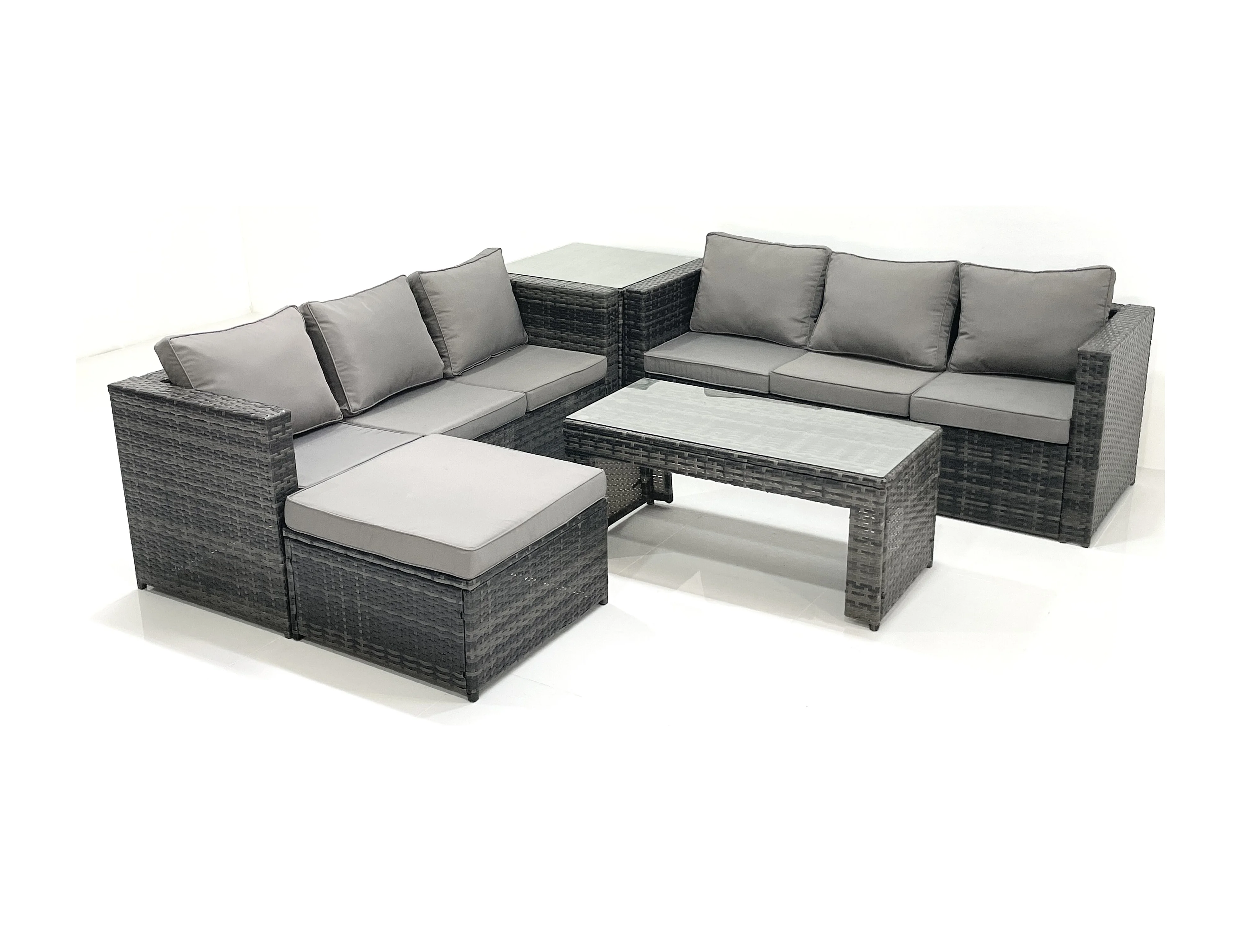 Salon de Jardin Extérieur avec Canapé Table basse Grand tabouret Table d'appoint Gris foncé mixte