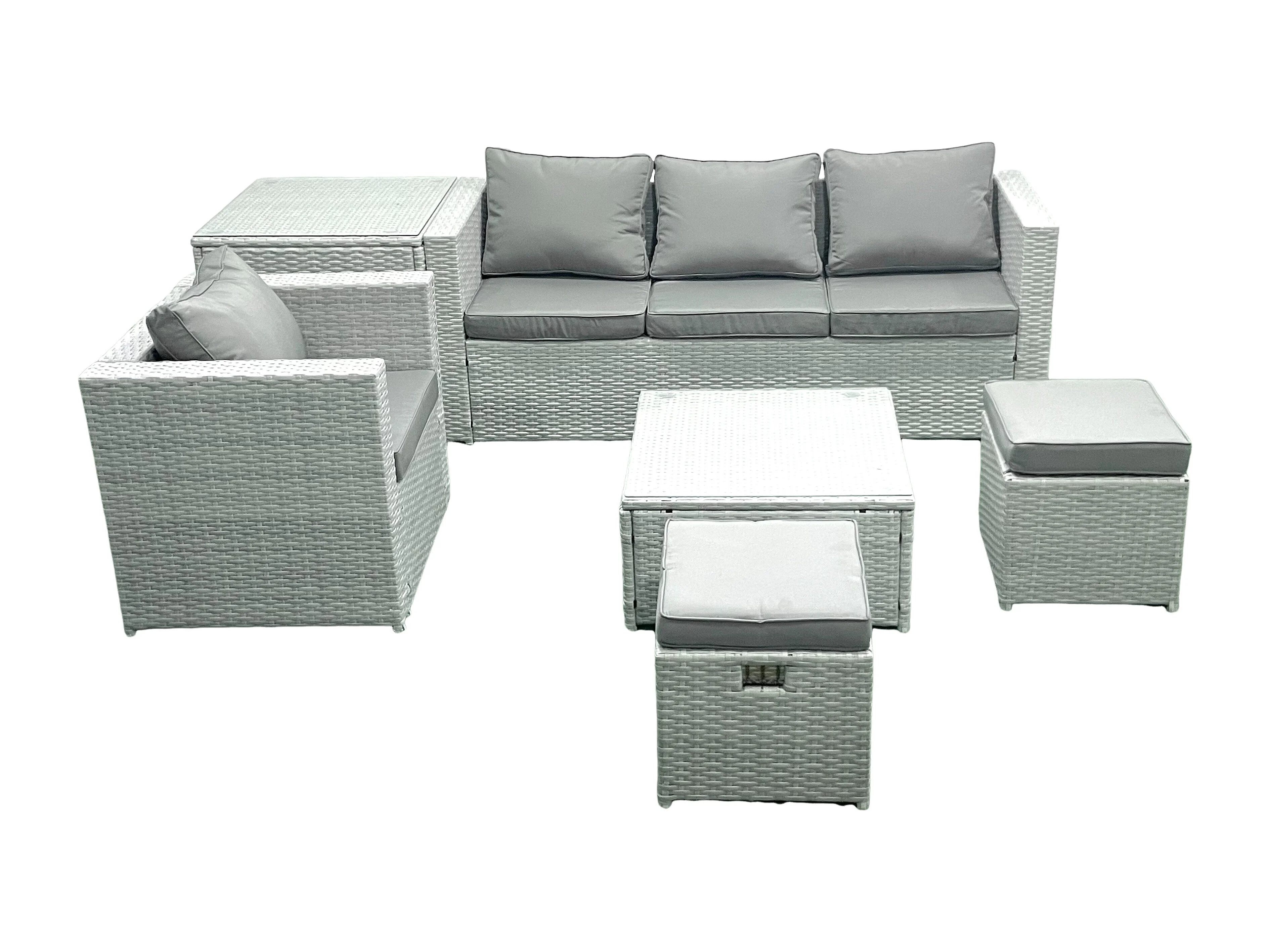 Salon de Jardin Exterieur en Résine 6 places avec Canapé 2 Petits tabourets Fauteuil Table d'appoint Gris clair mixte
