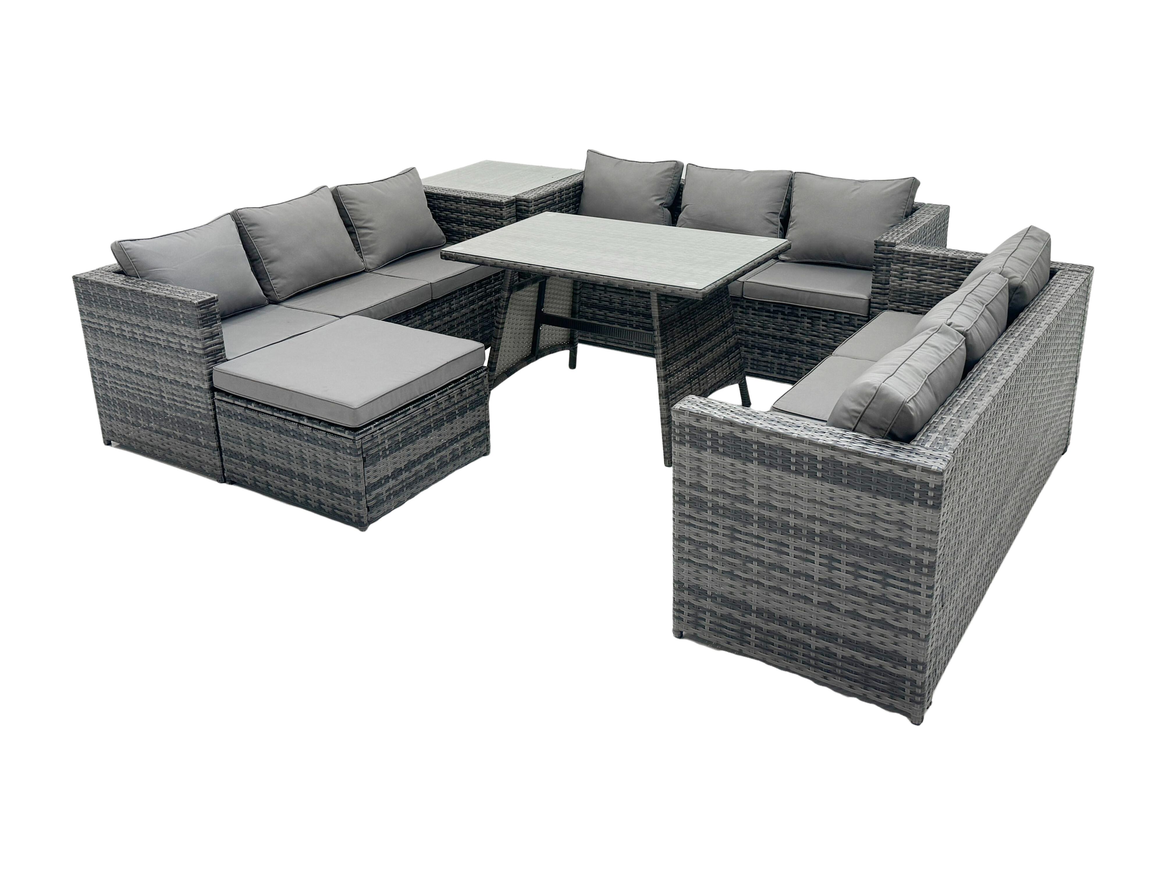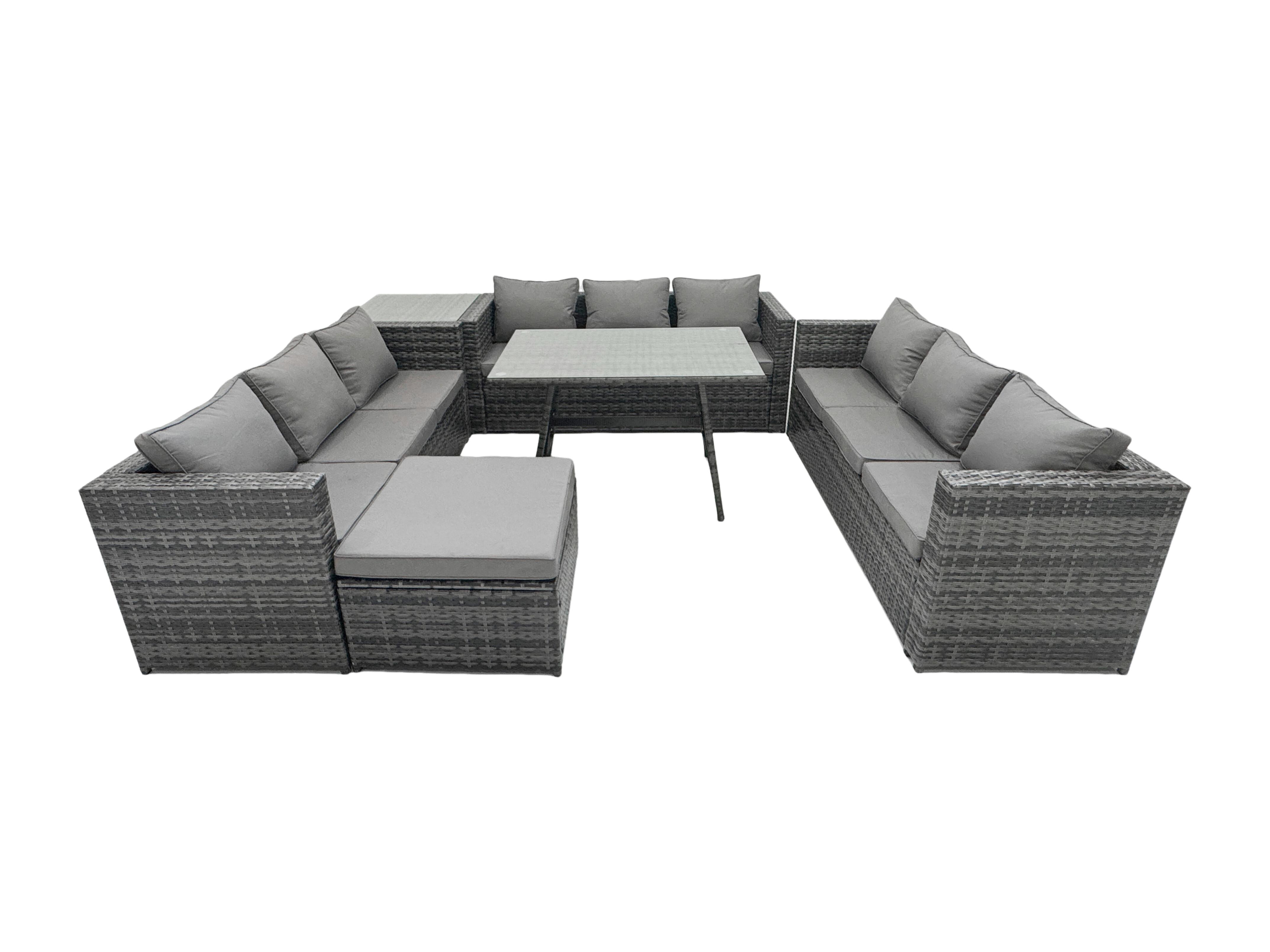 Salon de Jardin Extérieur en Résine avec Table à manger oblongue Table d'appoint et Grand tabouret