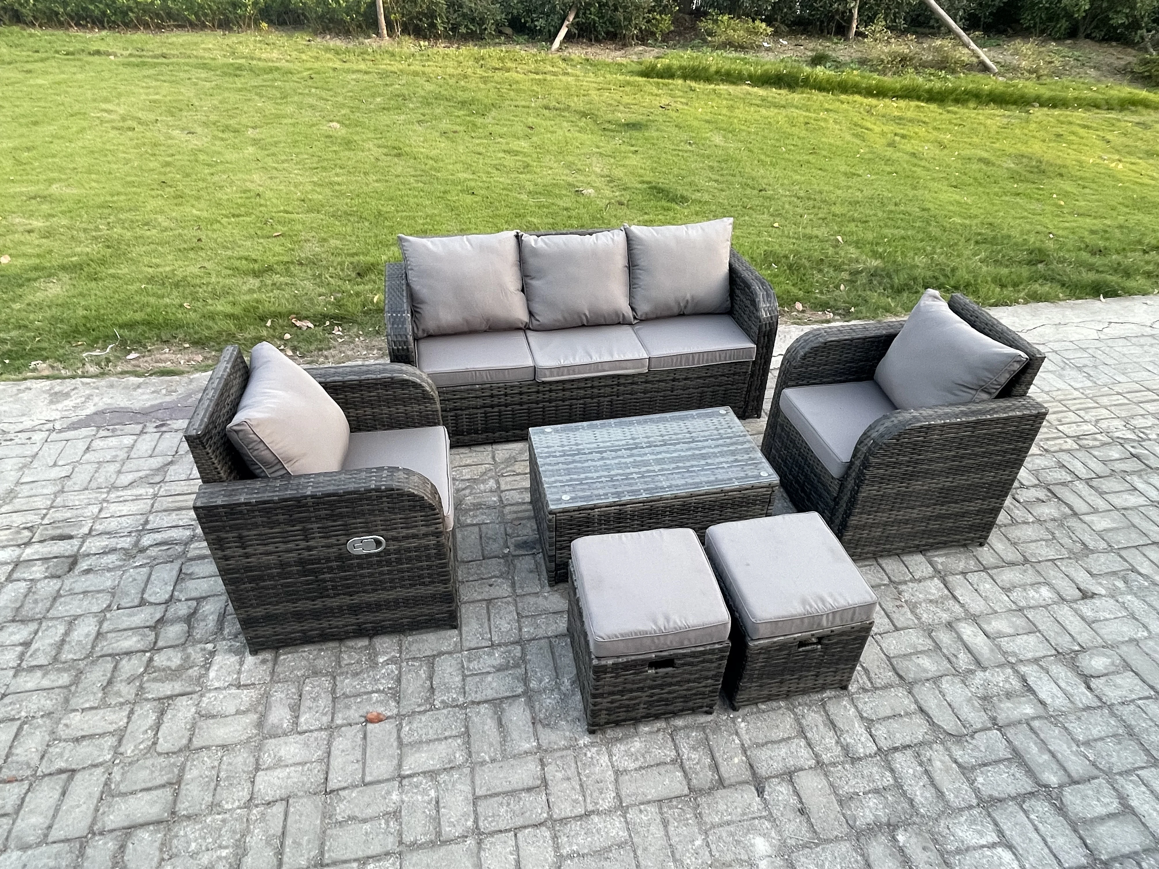 Salon de jardin exterieur Ensemble de canapés en rotin avec Chaise inclinable Table basse rectangulaire 2 Petit pouf Gris foncé mixte